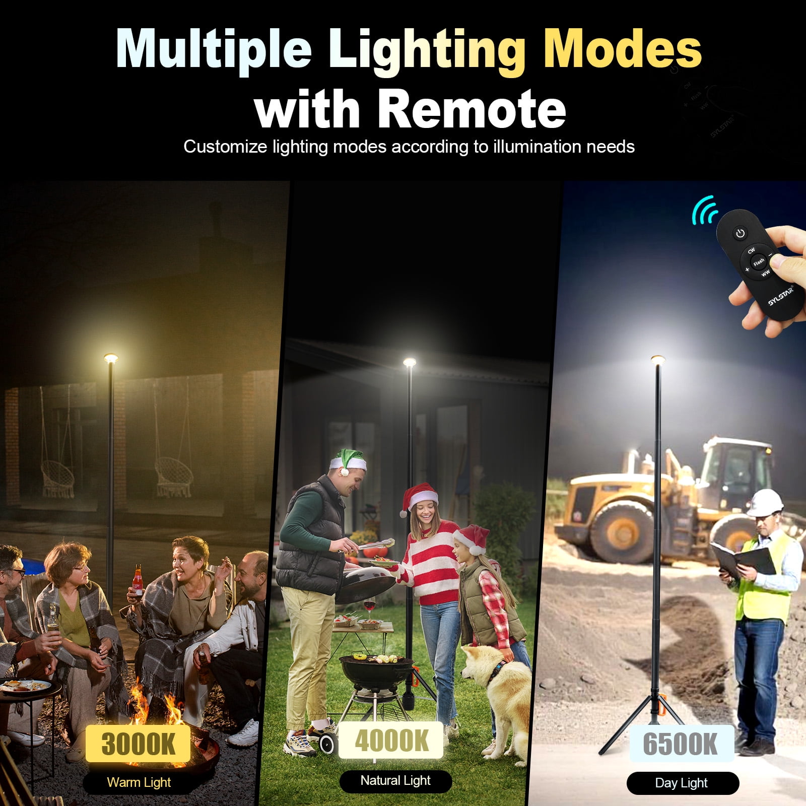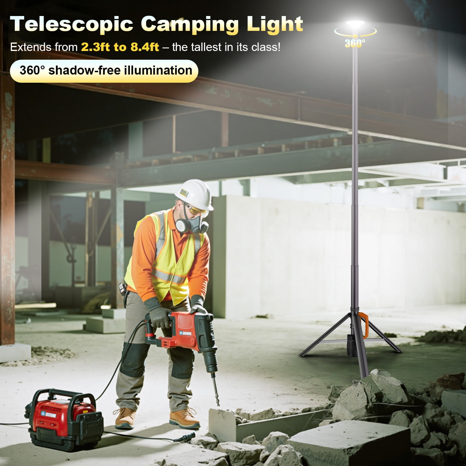 With its telescopic tripod pole, high-capacity battery, and multiple lighting modes, it’s the perfect choice for camping, outdoor sports, work sites, and emergency lighting.