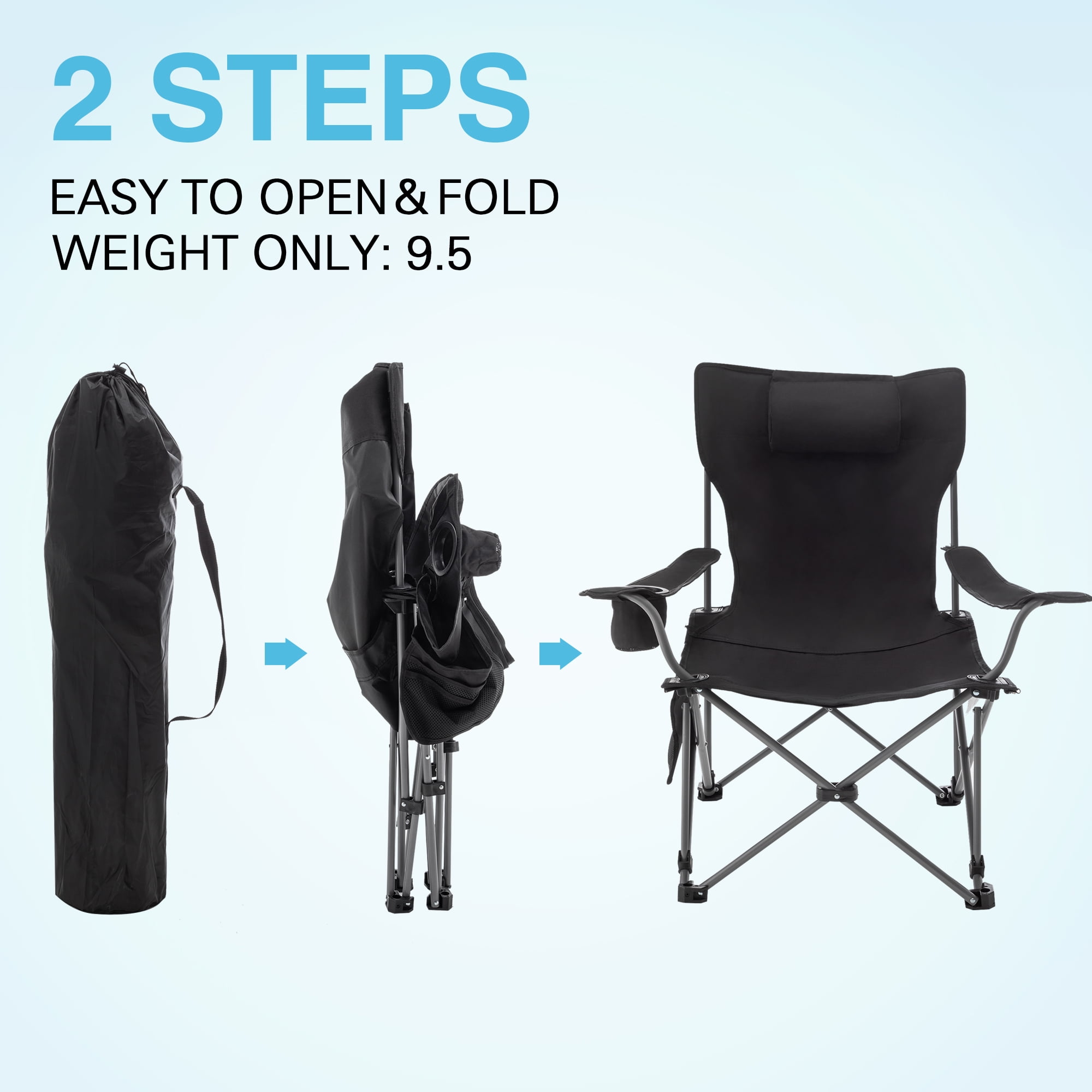 【Sturdy and Durable】The camping chair has a durable stainless steel frame capable of supporting up to 265 pounds, meeting the requirements of most people. It utilizes 600D Oxford fabric, known for its tear resistance, stability, and sturdiness.