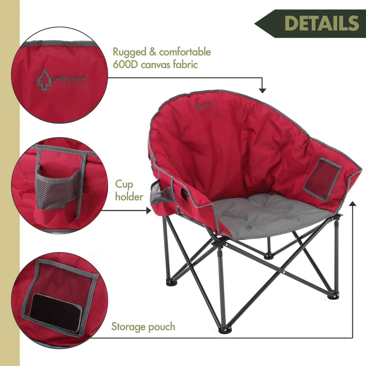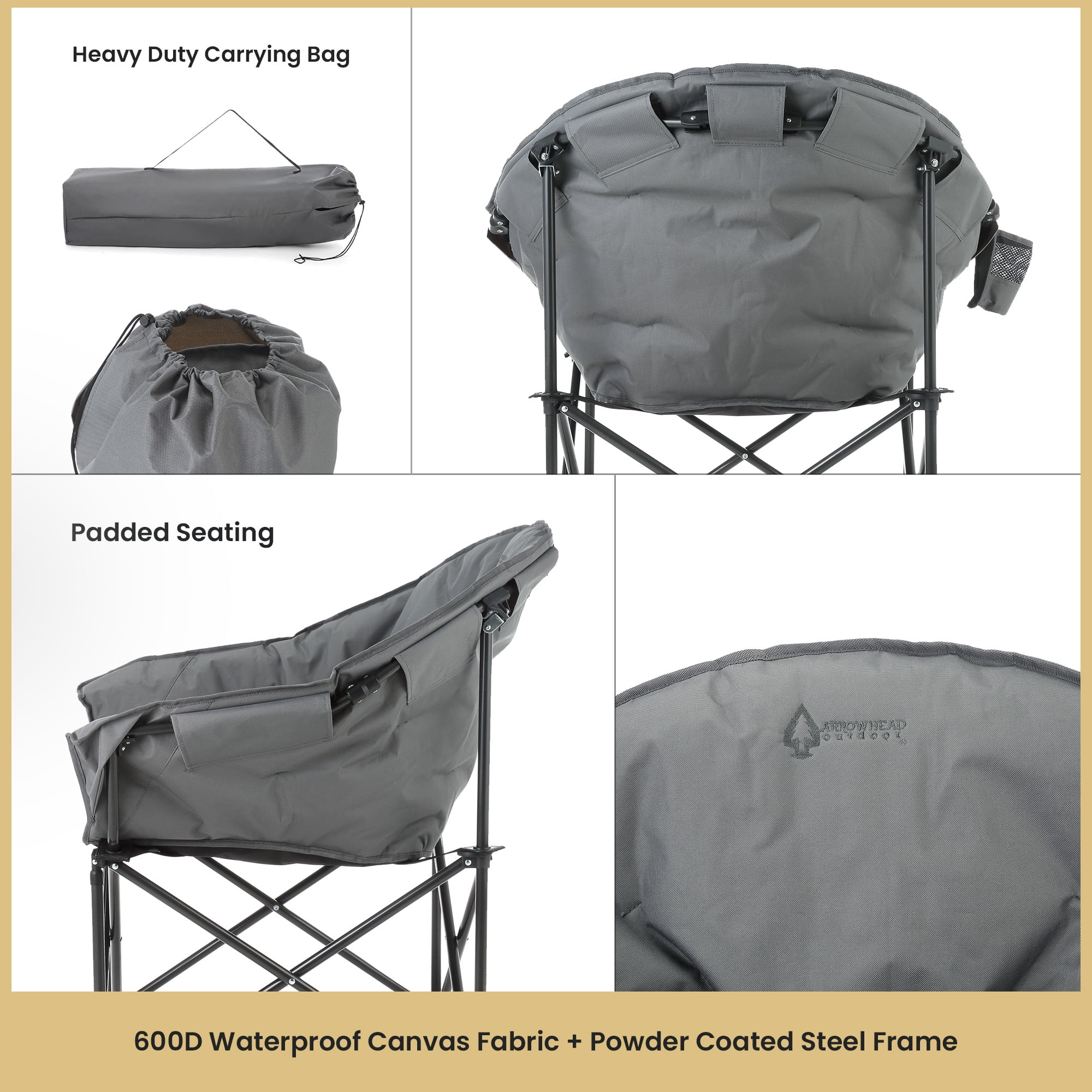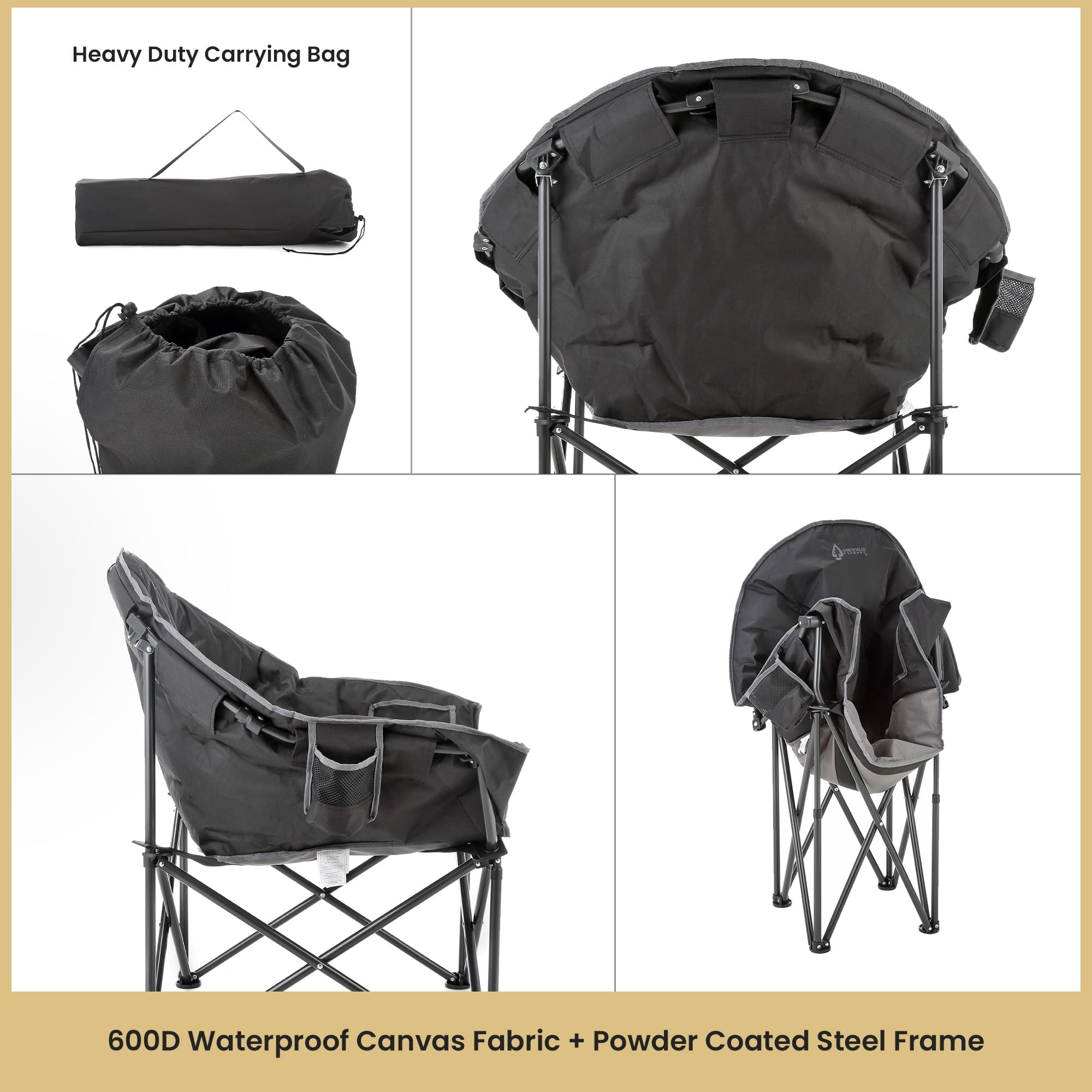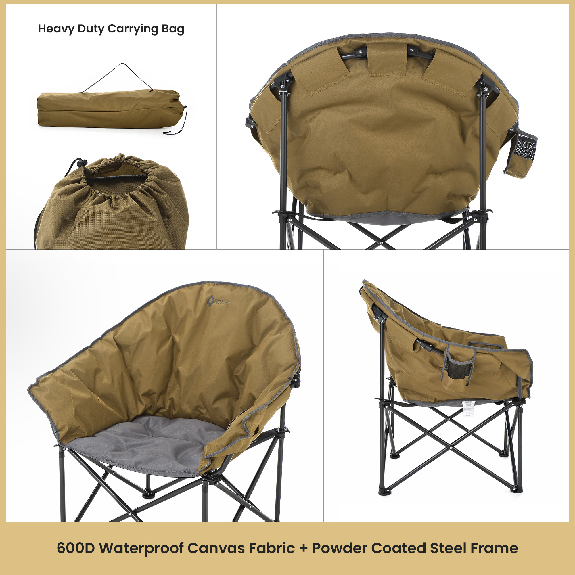 - Sturdy Construction: Built with a sturdy steel frame and rugged 600D canvas fabric.