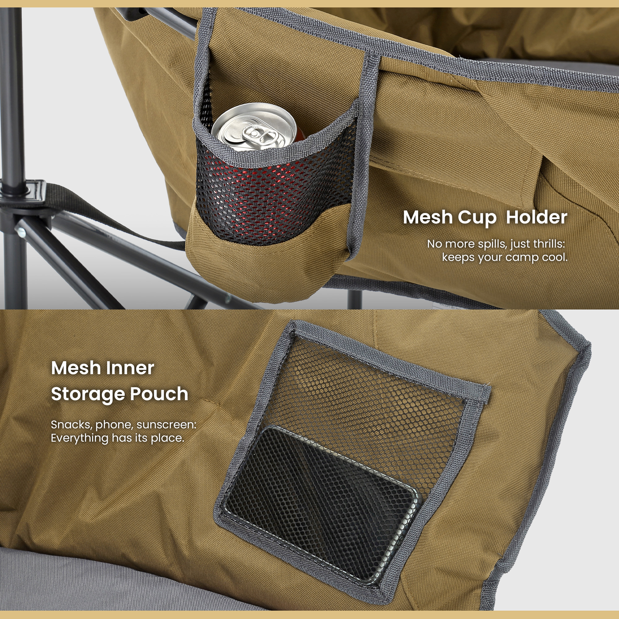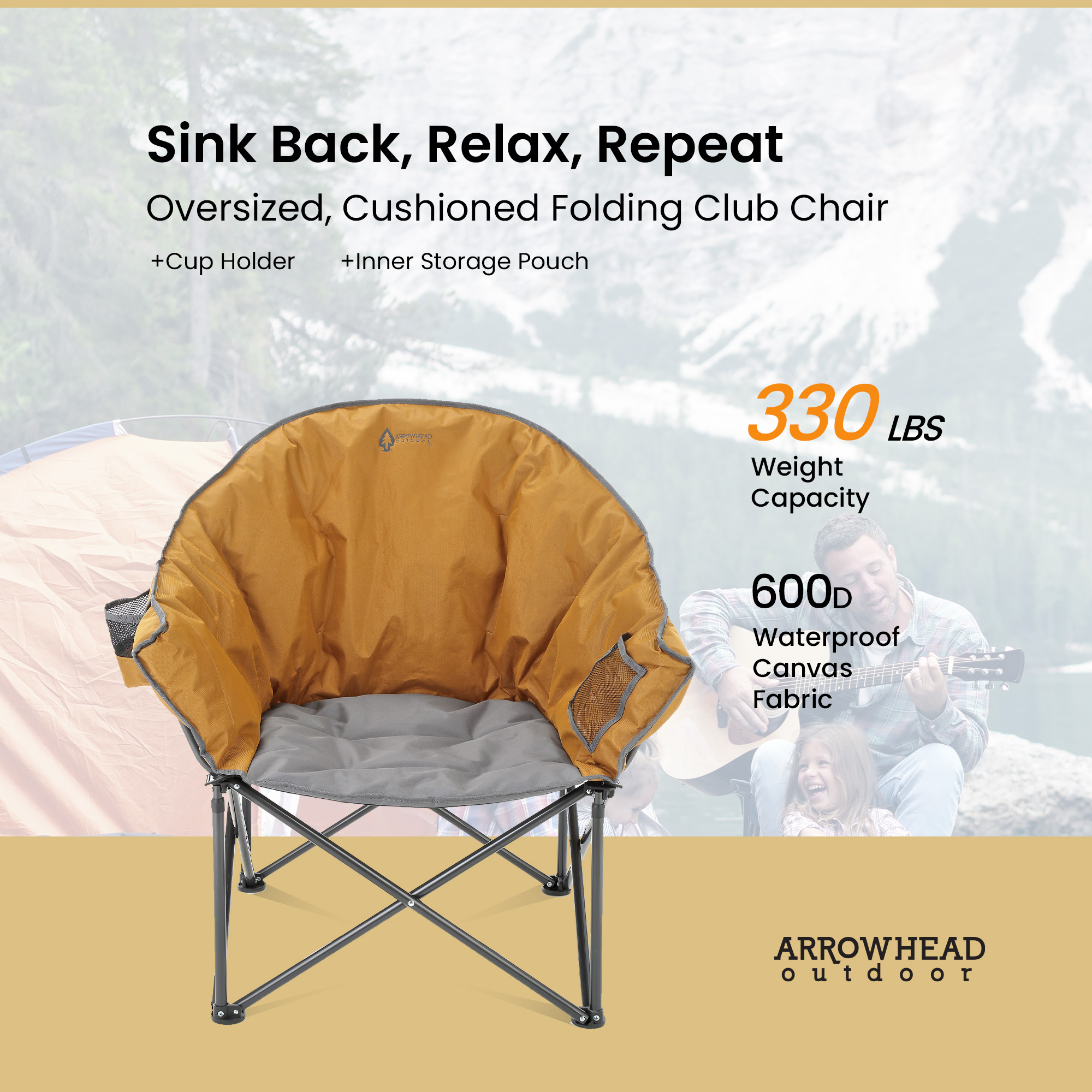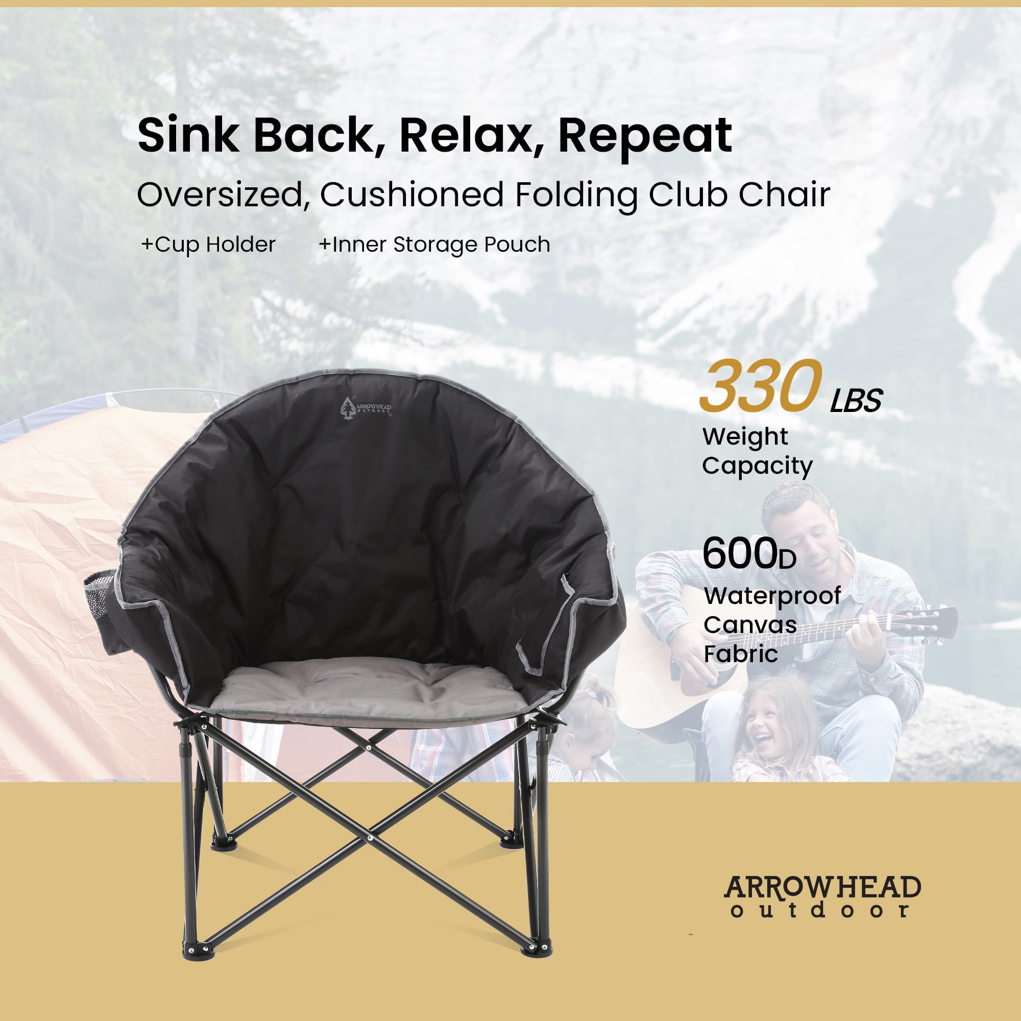 - High Weight Capacity: Supports up to 330lbs, perfect for camping, tailgating, or lounging in the backyard.
