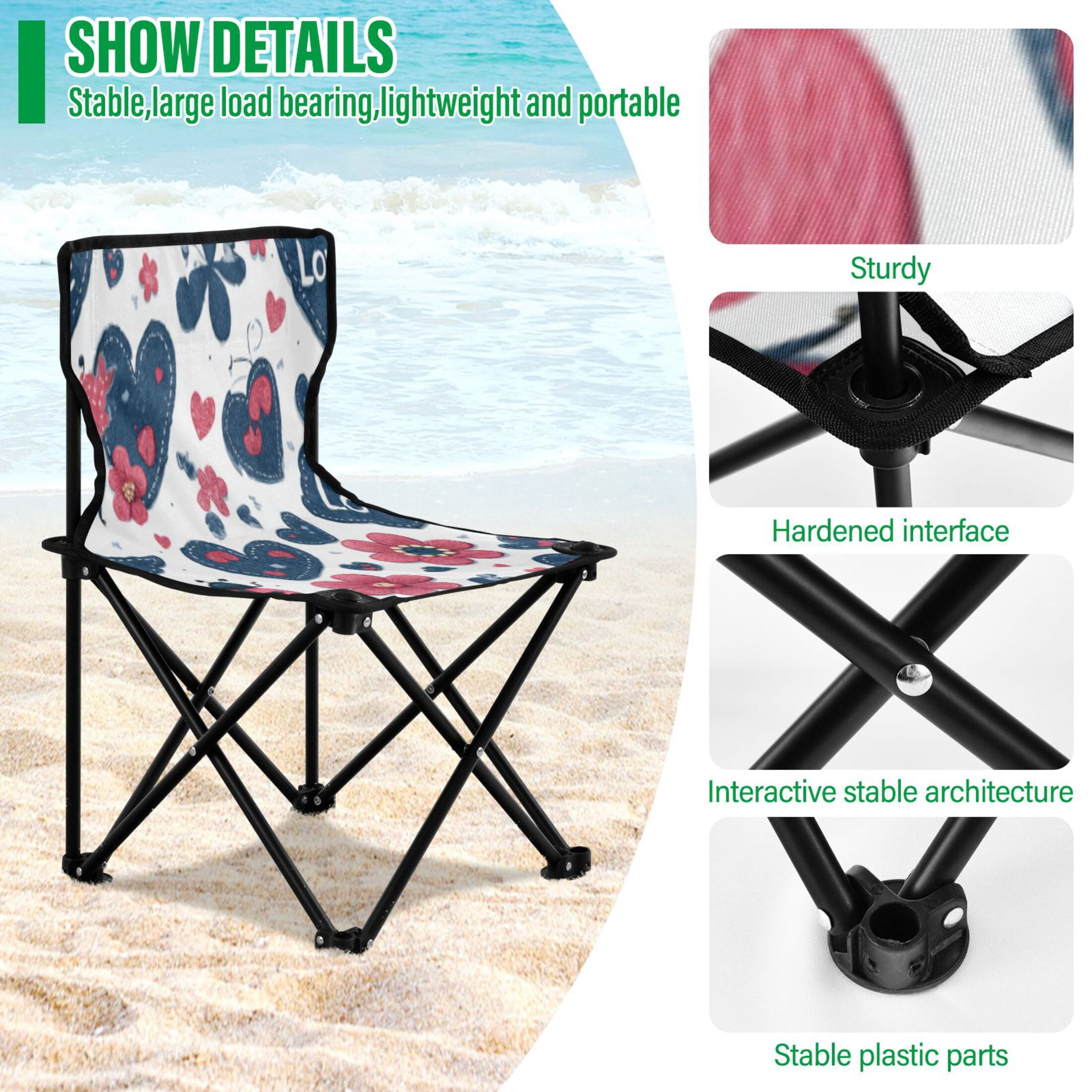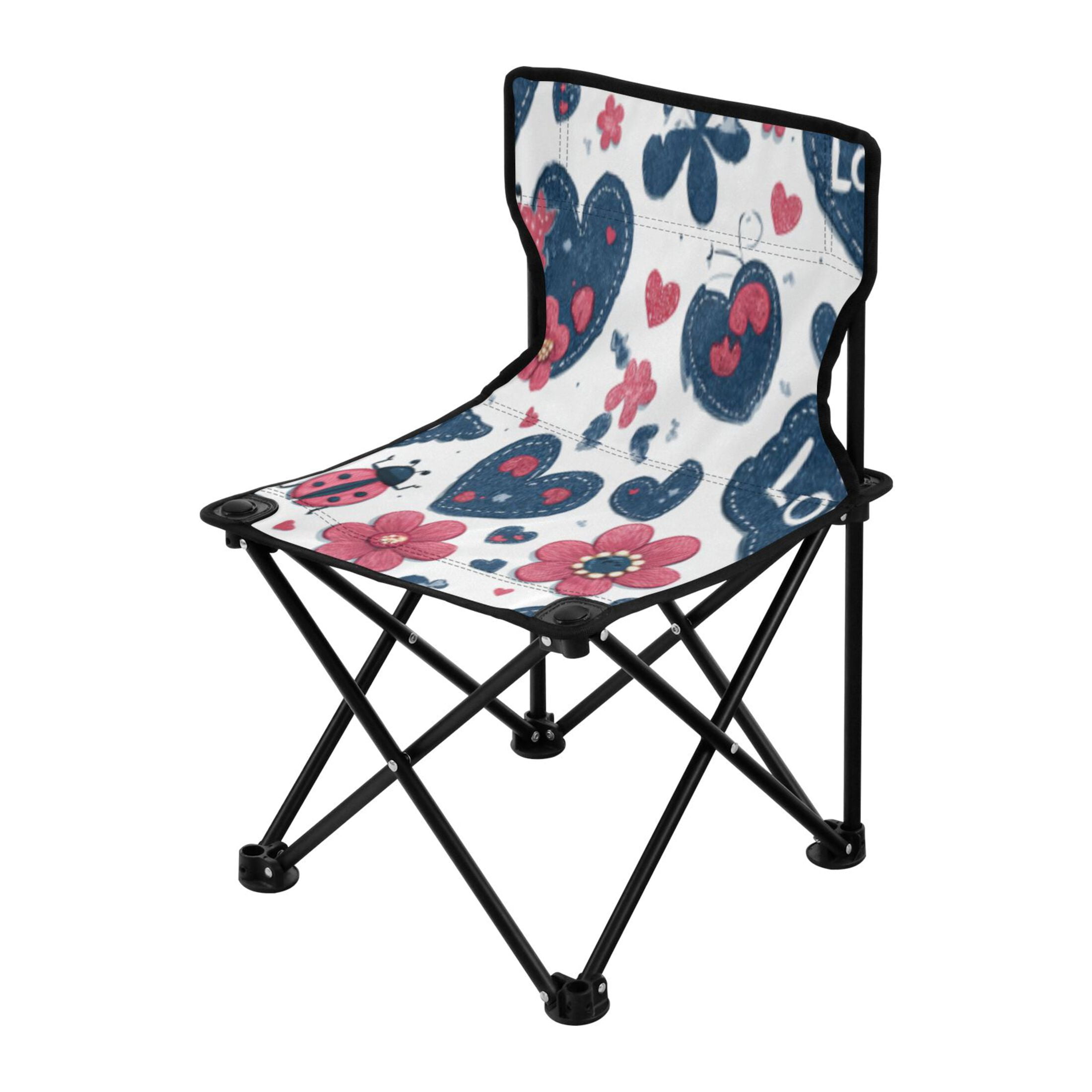 BZSMCE Camping Chairs Modern Folding chair In Denim Love Garden Pattern