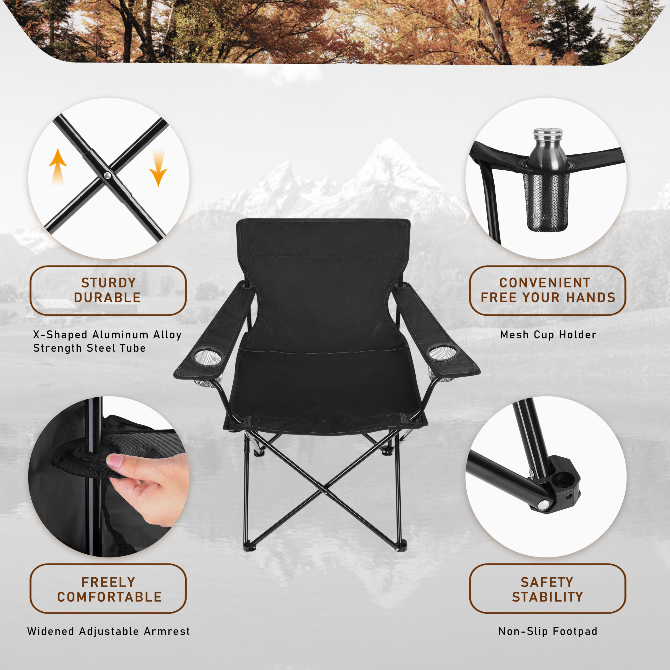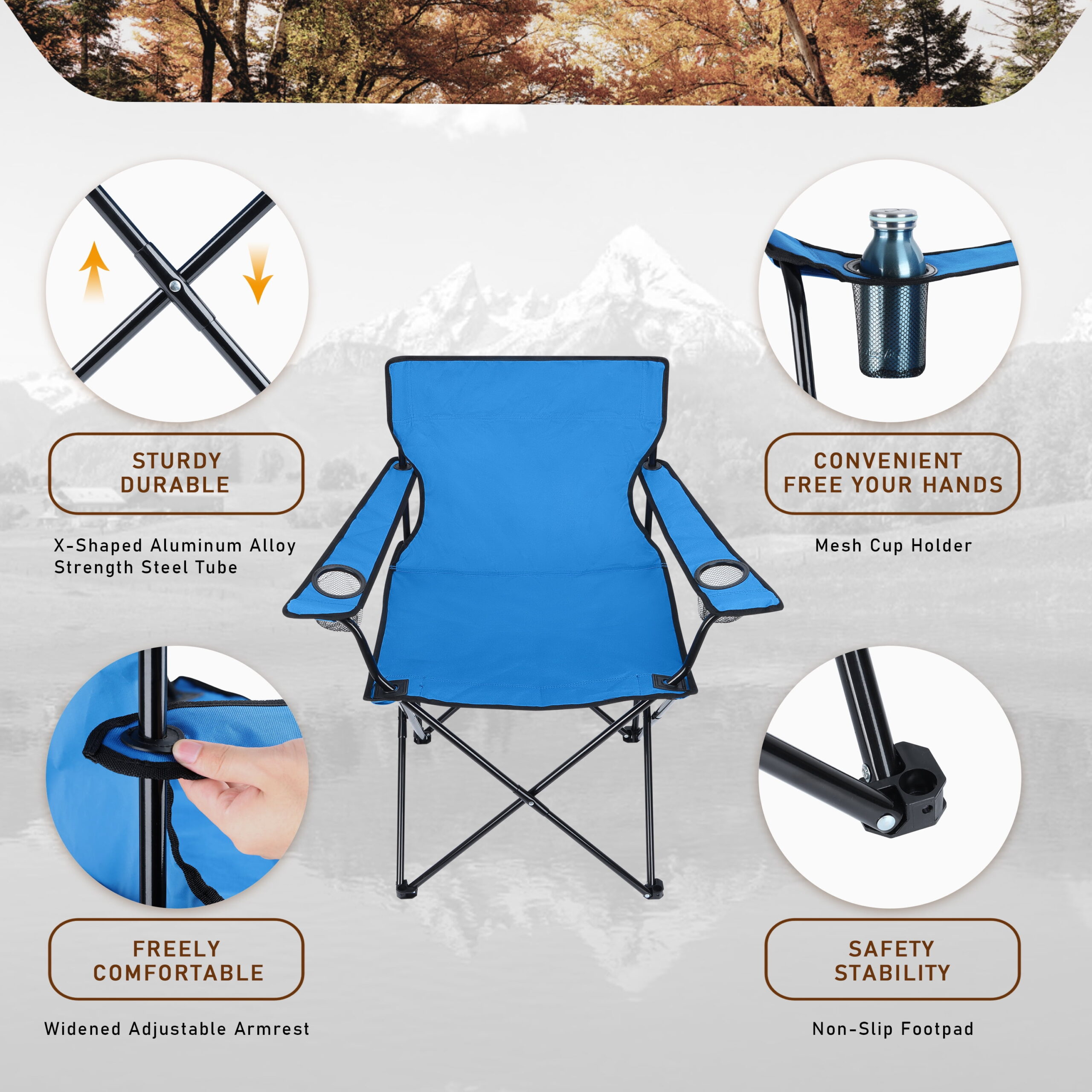 - Convenient Features: Includes two mesh cup holders for extra storage, adjustable armrests for added support, and non-slip mats on the reinforced chair legs for excellent grip and wear resistance.
