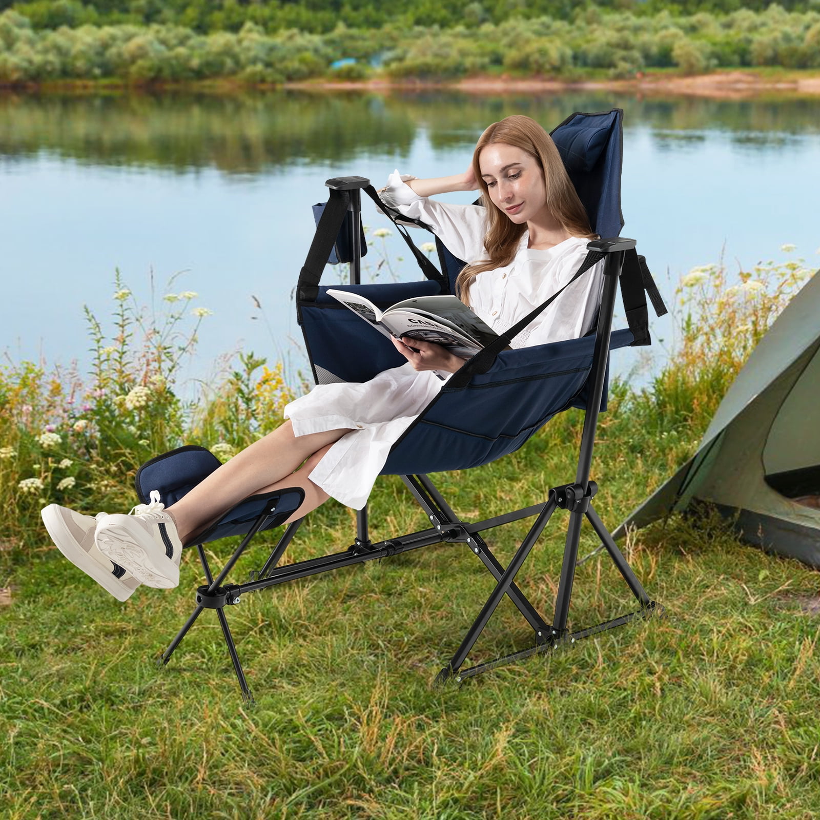 - Simple to Fold and Carry: The foldable structure enables you to set up or fold the swinging camping chair quickly and easily. What’s more, the equipped carry bag with shoulder strap makes it easy for you to carry the camping chair set anywhere you go. Hence, you can sit for relaxation whether at home or outdoors.