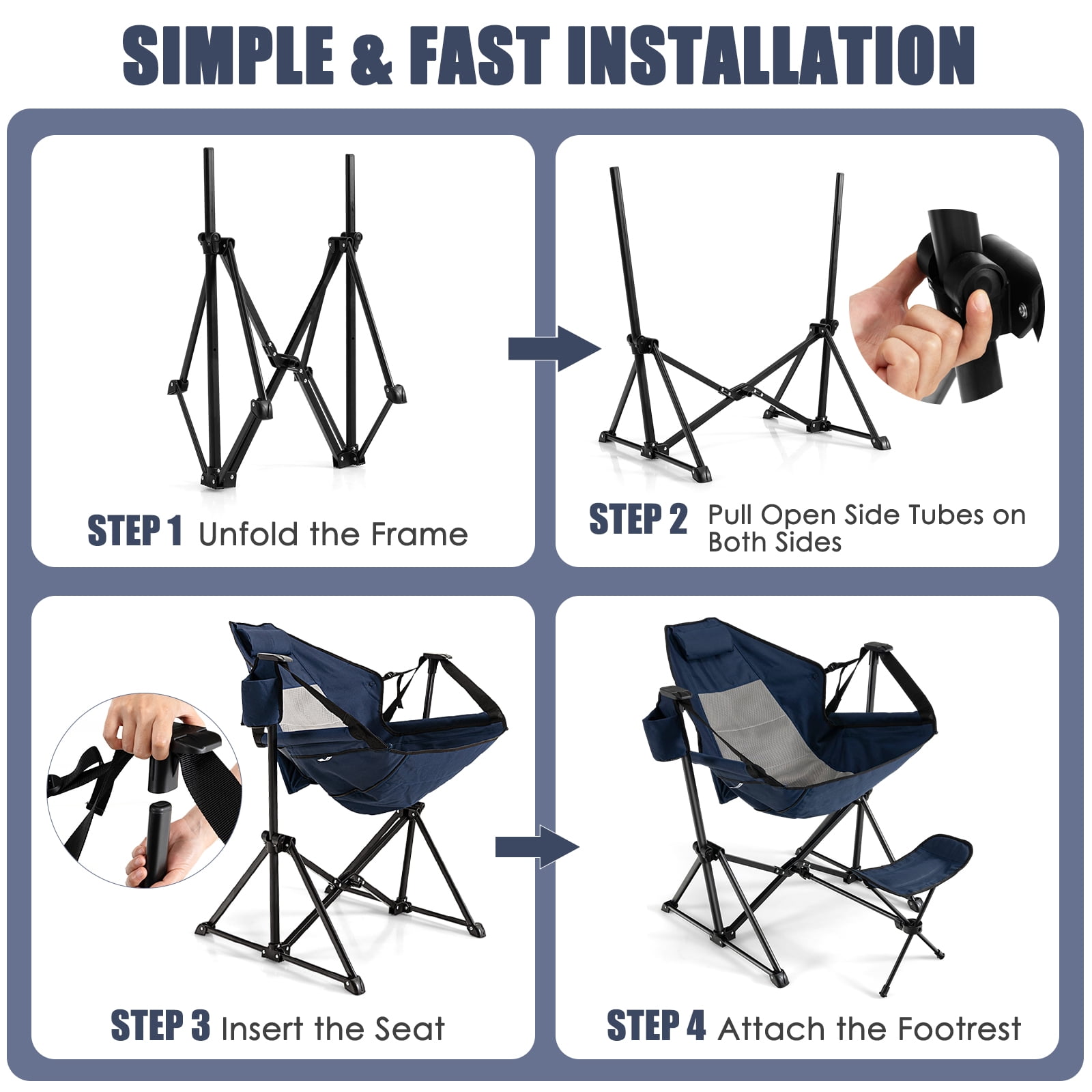 Costway Hammock Camping Chair with Retractable Footrest & Carrying Bag for Camping Picnic Navy