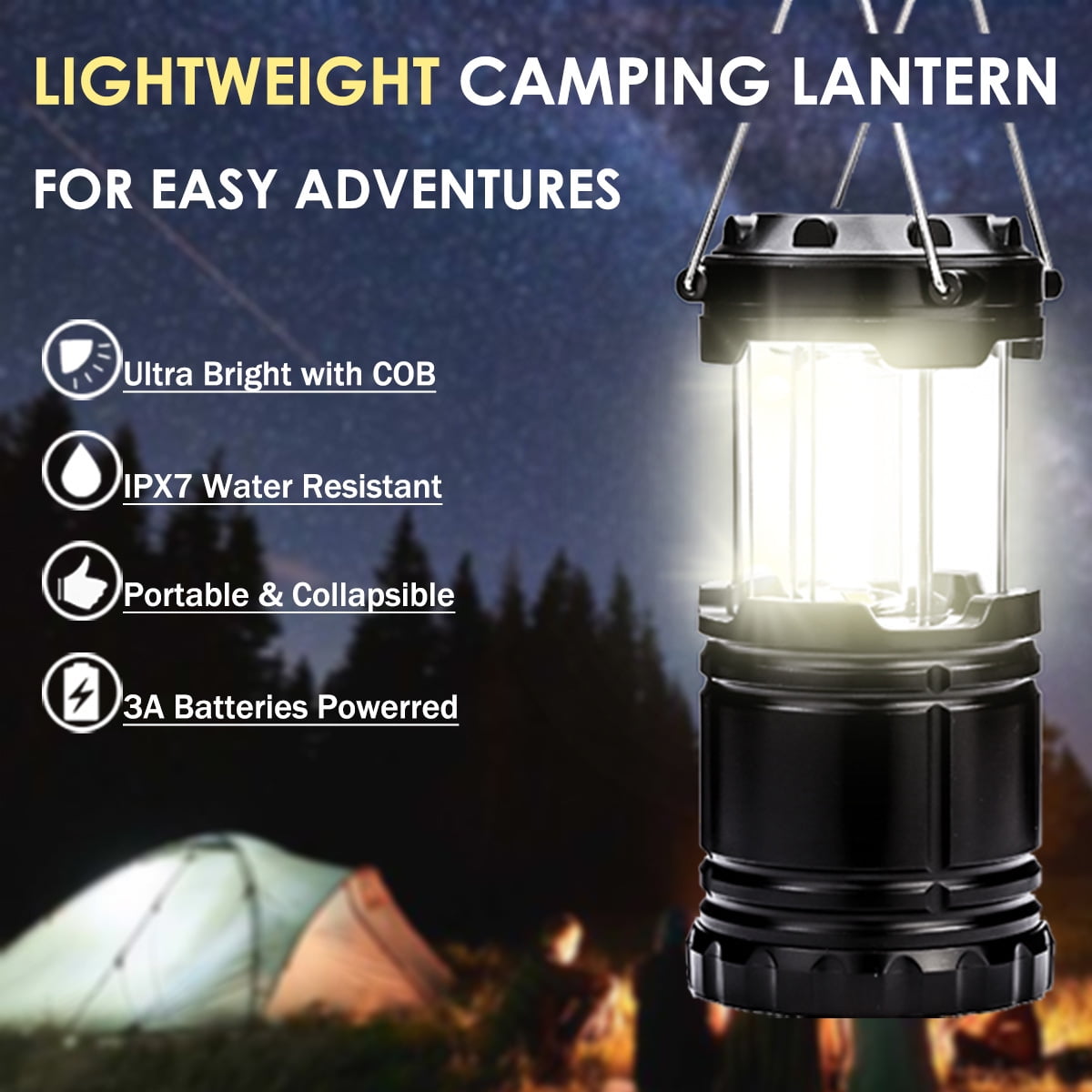 [Portable & Collapsible] Lightweight and compact, this collapsible lantern is perfect for camping and backpacking, providing reliable light without taking up extra space.