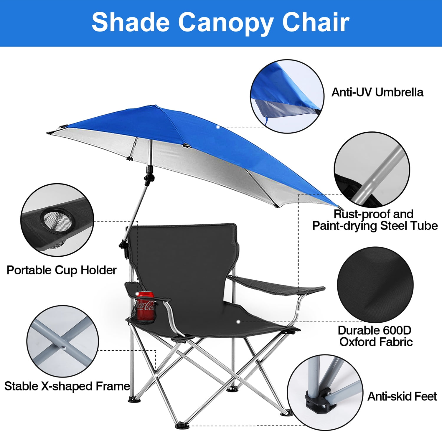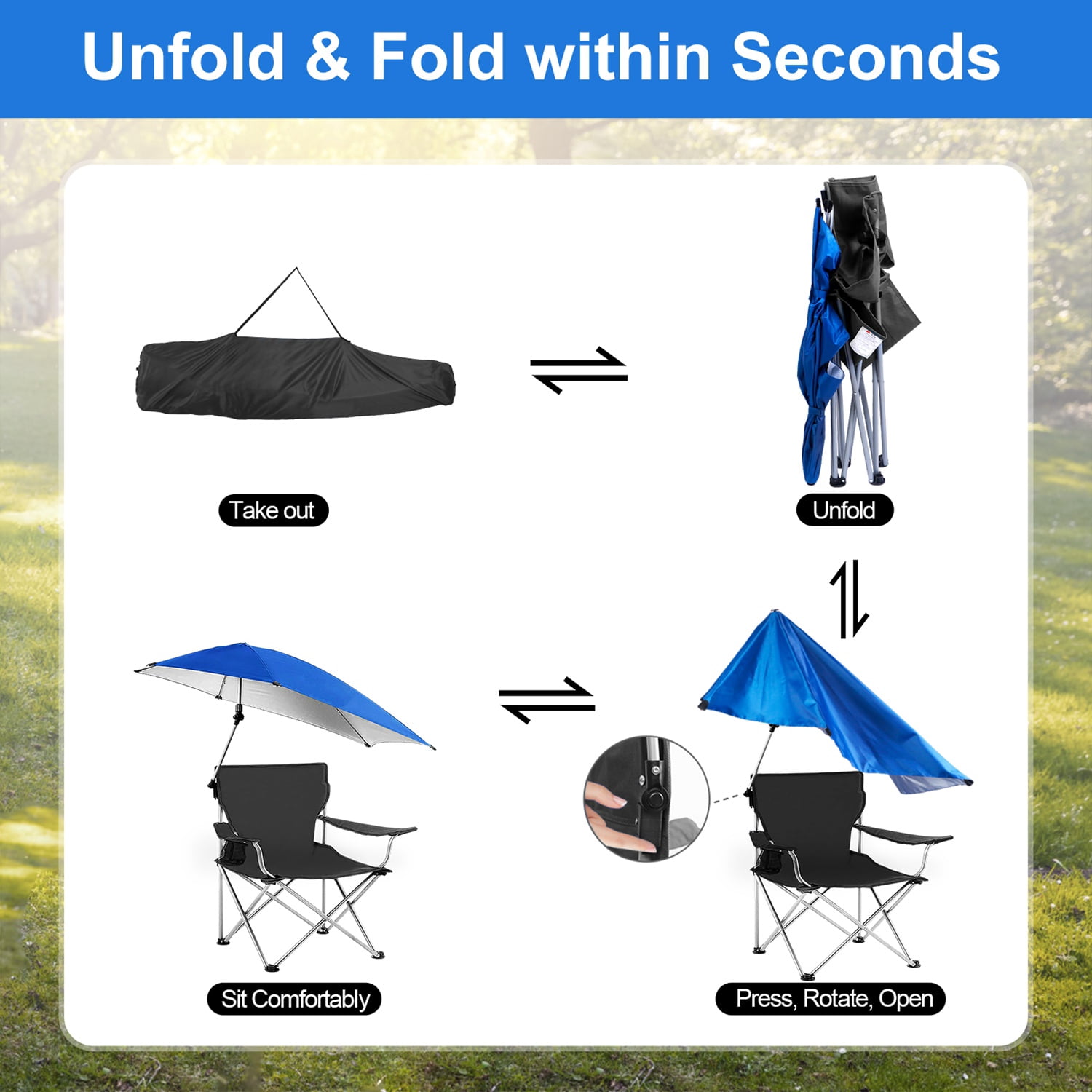 Sun Protection Chair: The umbrella is made of silver-coated oxford fabric, preventing strong UV rays and providing cool shade on hot summer days. Perfect for enjoying the shade and breeze at the park, beach, pool, backyard, campsite, or other outdoor activities