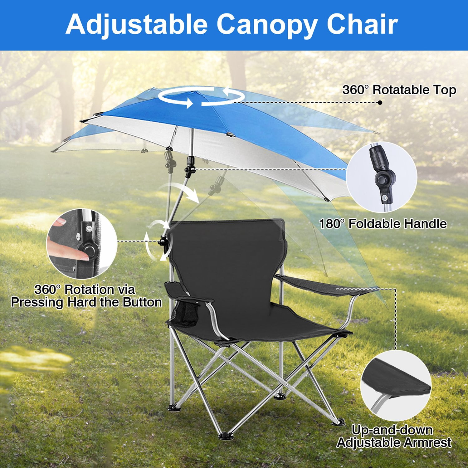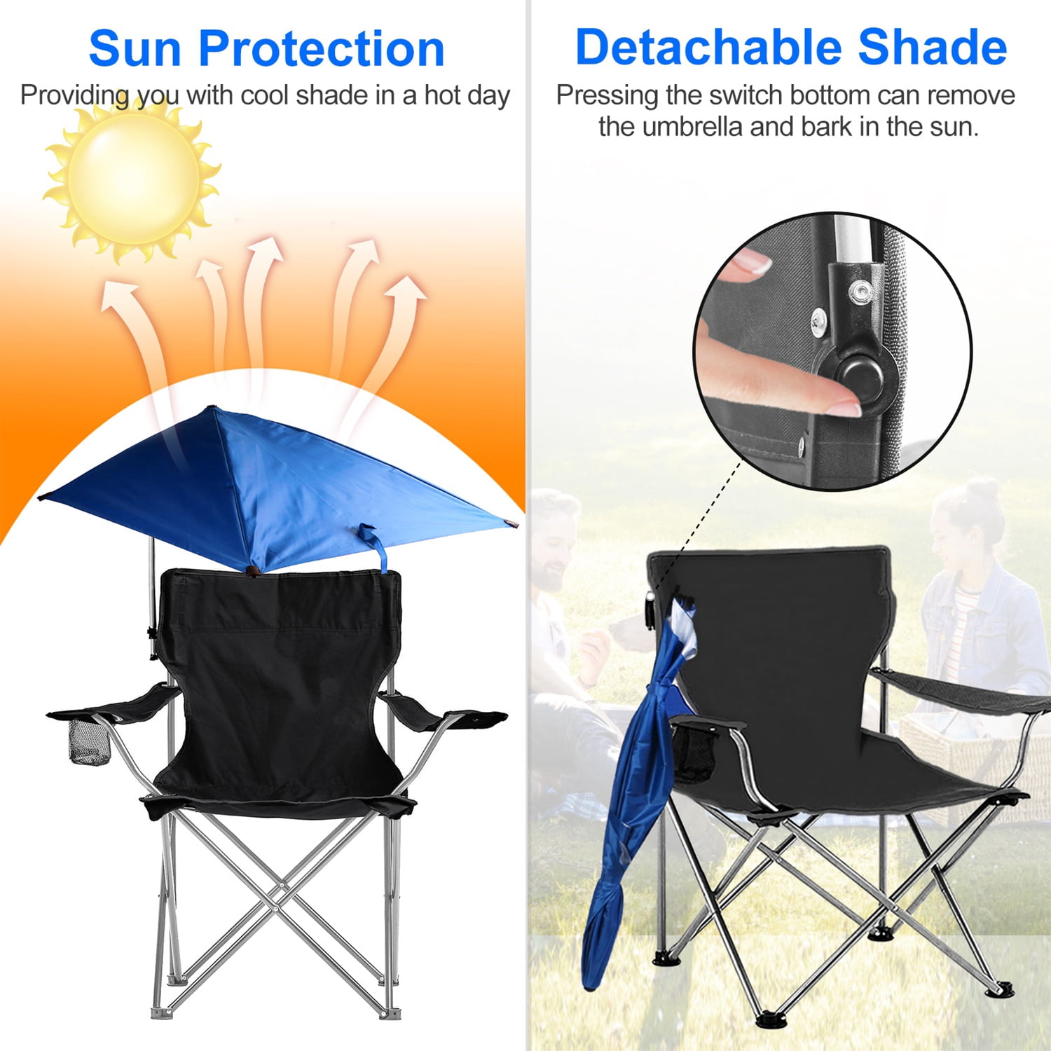 Foldable Camping Chair TeqHome Collapsible Beach Chair Outdoor Folding Chair Support 220.5lbs with Adjustable Arm Cup Holder Detachable Umbrella Black