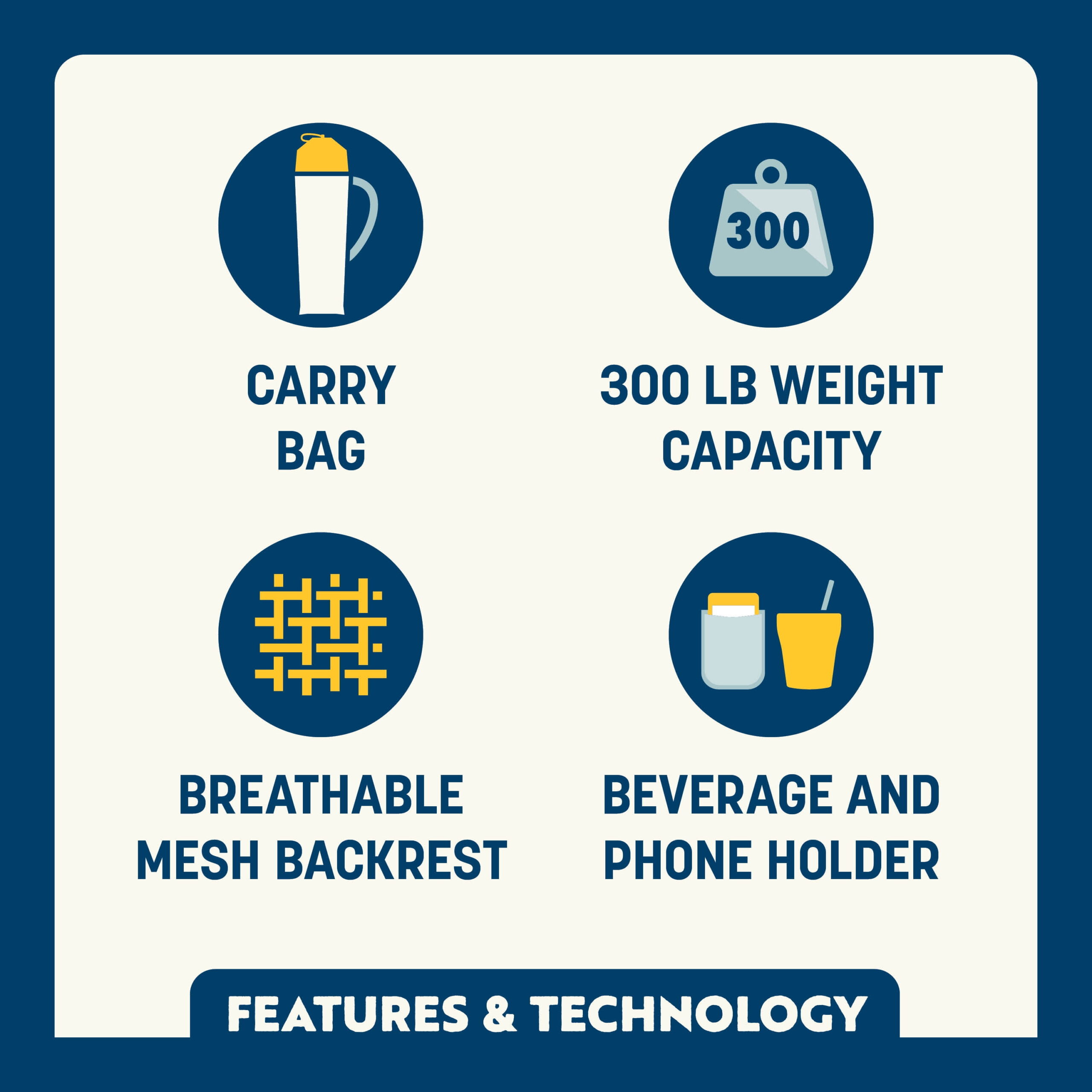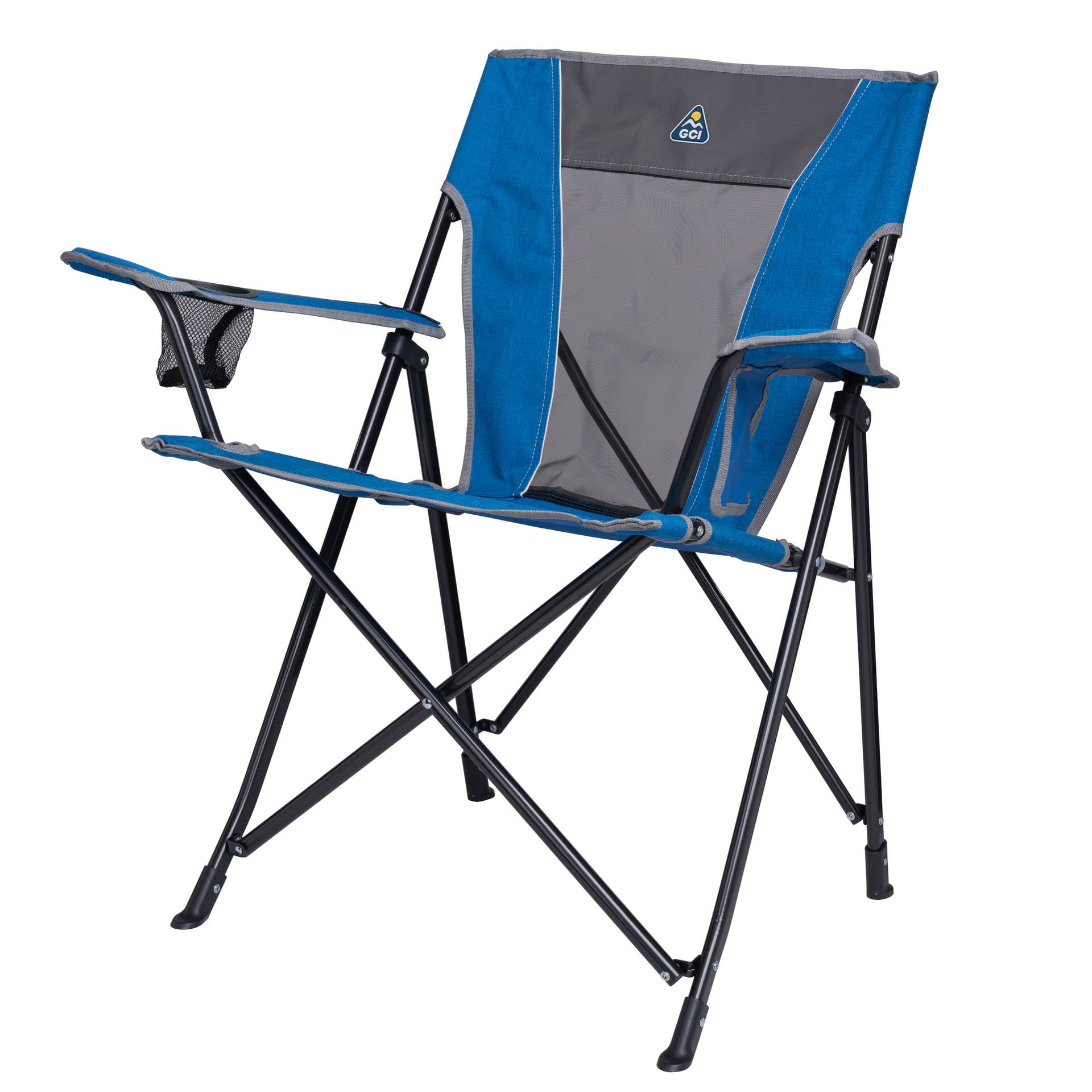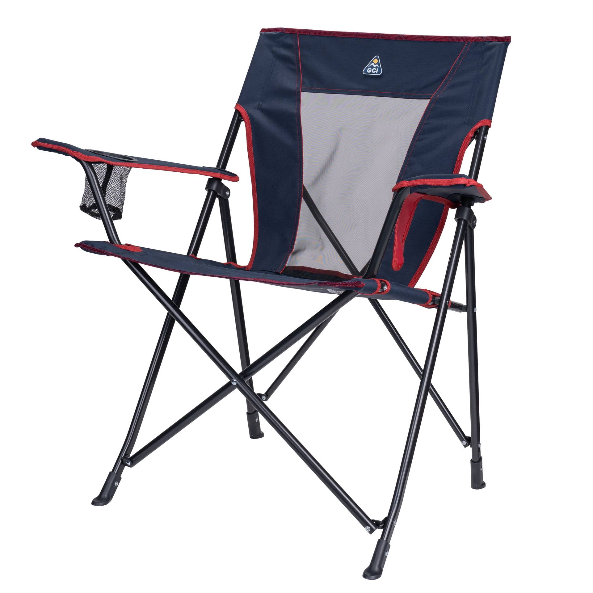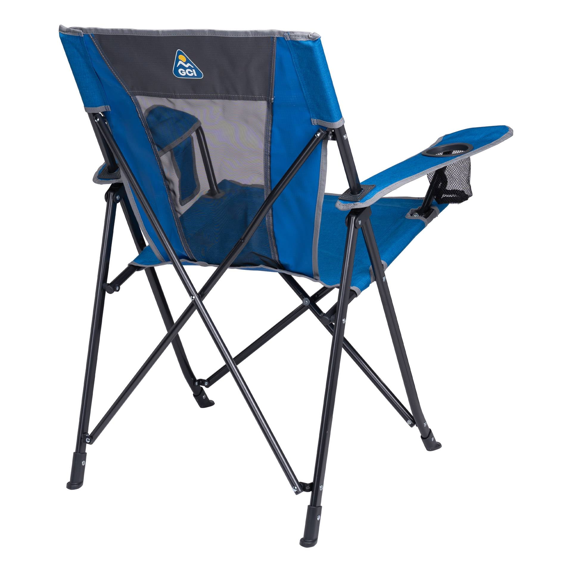 Venture near or far with the lightweight GCI Outdoor Comfort Pro Chair. Designed for everyday comfort and convenience, this chair features a tall, angled backrest for a relaxed seating position and a sturdy steel frame that supports up to 250 lbs. A built-in beverage holder keeps your drink within reach, while the phone pocket provides quick access to calls, playlists, or game scores. On hot summer days, the breathable mesh back panel allows airflow, keeping you cool and dry— making it the perfect seat for sideline cheering, pre-game tailgating, or backyard barbecues. When it’s time to head home, the included carry bag with shoulder strap makes transport easy and hands-free.