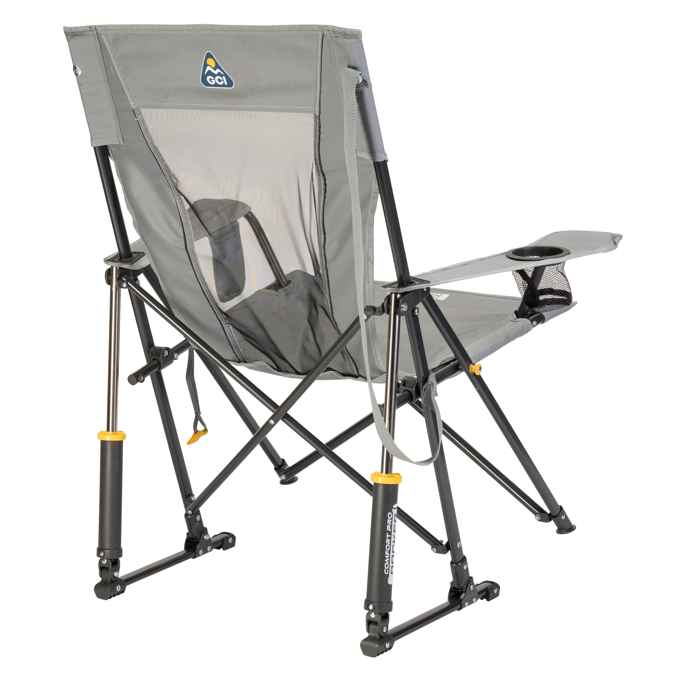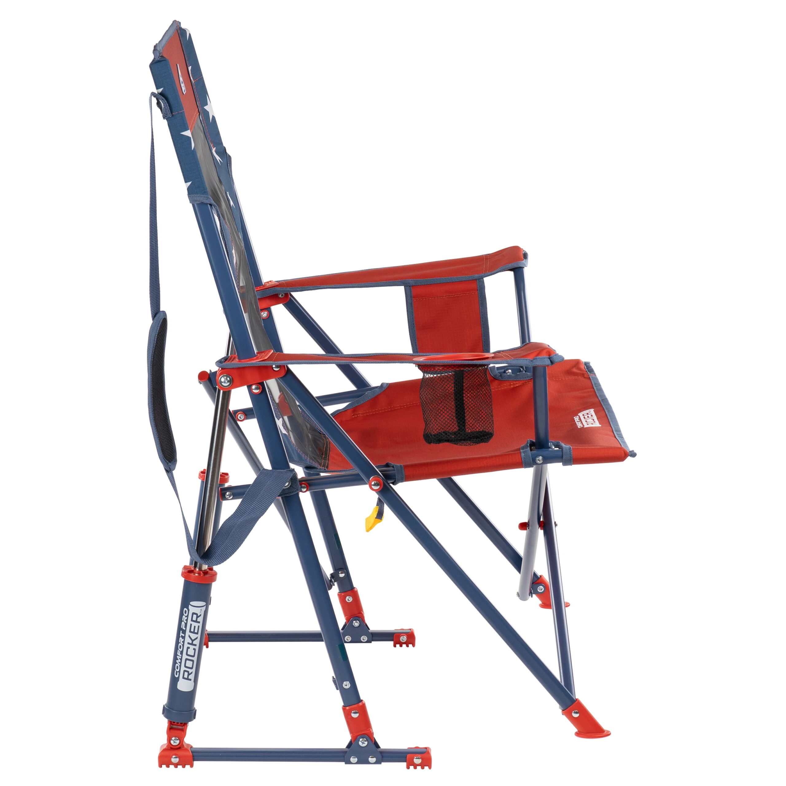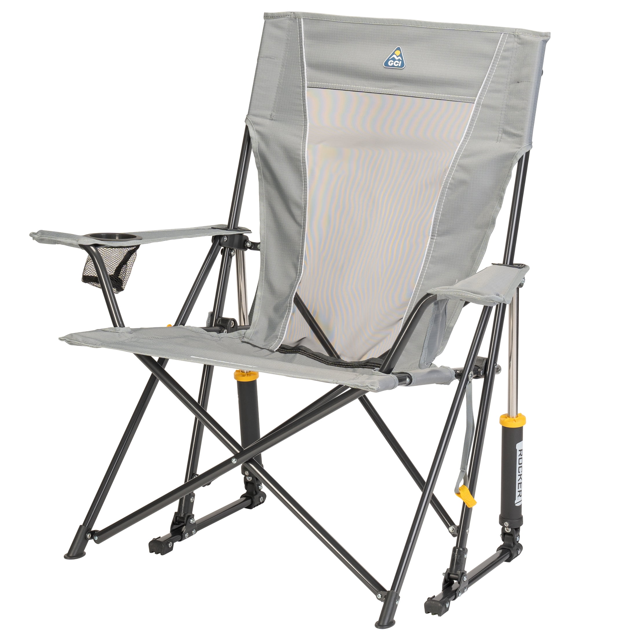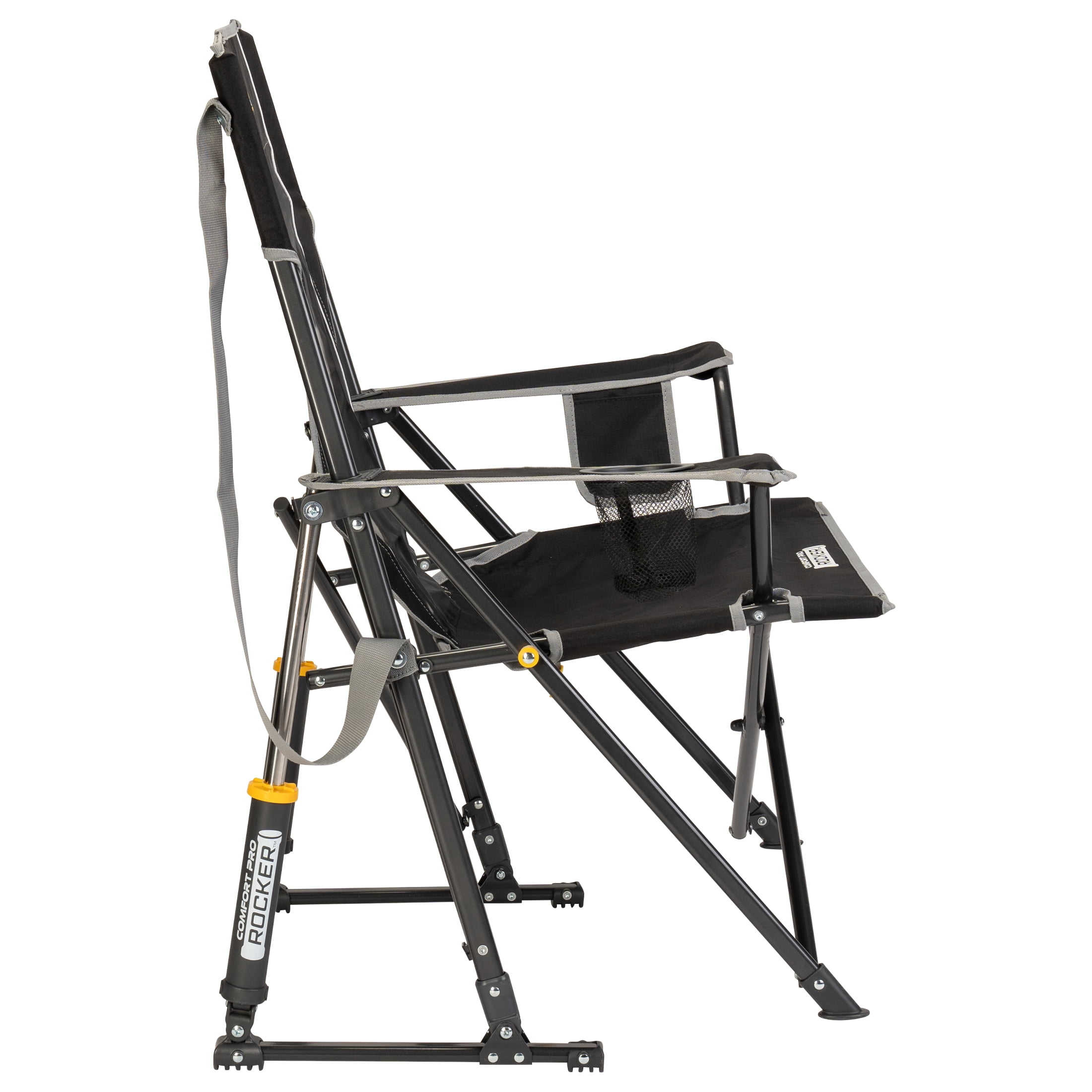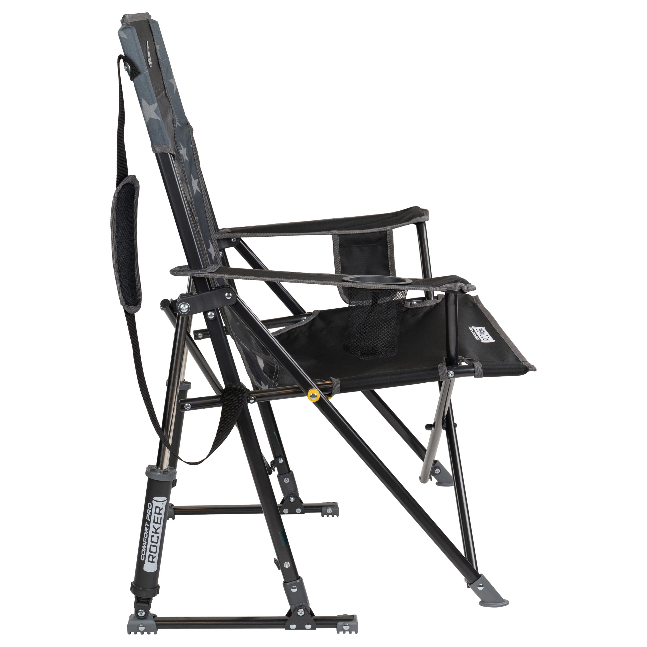 The GCI Outdoor Comfort Pro Rocker is your ticket to ultimate relaxation. Featuring a taller backrest and laid-back seating angle, along with innovative Spring-Action Rocking Technology for a smooth rocking motion, it delivers the kind of comfort that makes you forget you’re outdoors. The sturdy steel frame supports up to 250 lbs. and includes a shoulder carry strap for easy transport wherever adventure leads you. A built-in beverage holder for your favorite drink and a side pocket for quick access to photos, playlists or checking the score make it the perfect seat for sideline cheering, pre-game tailgating, or backyard barbecuing. When it’s time to head home, collapse the chair and secure it in a folded position with the attached closure tab for quick and simple pack up.