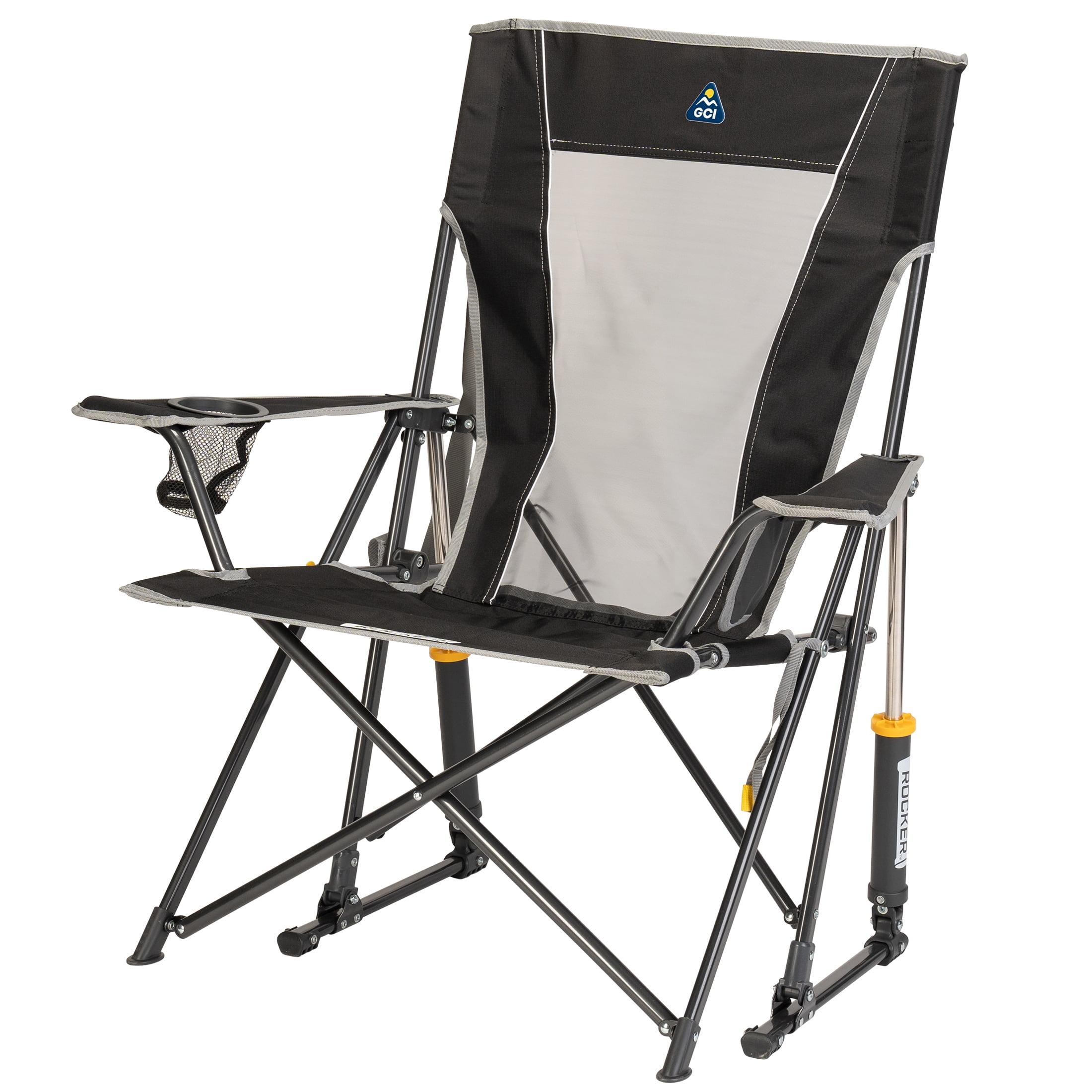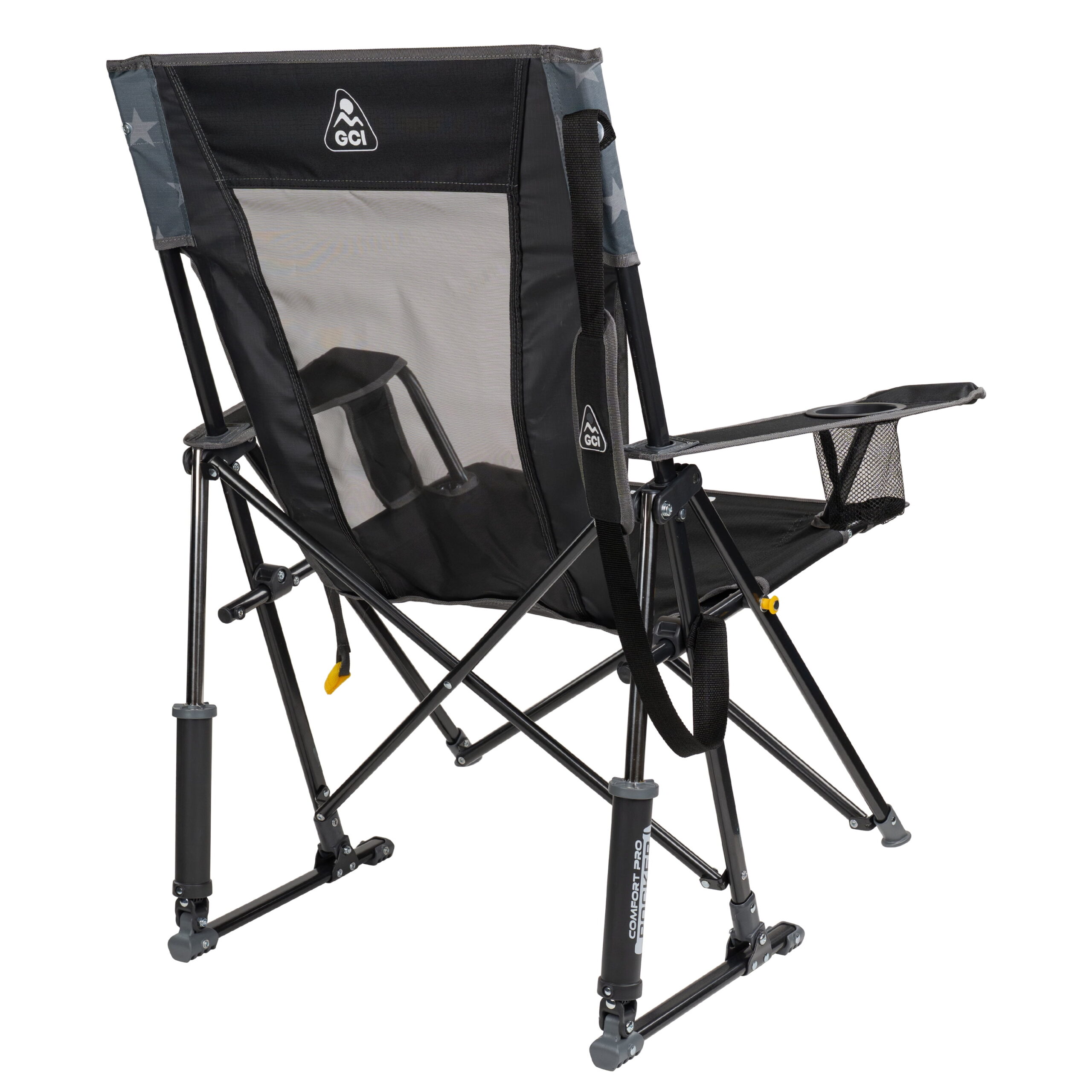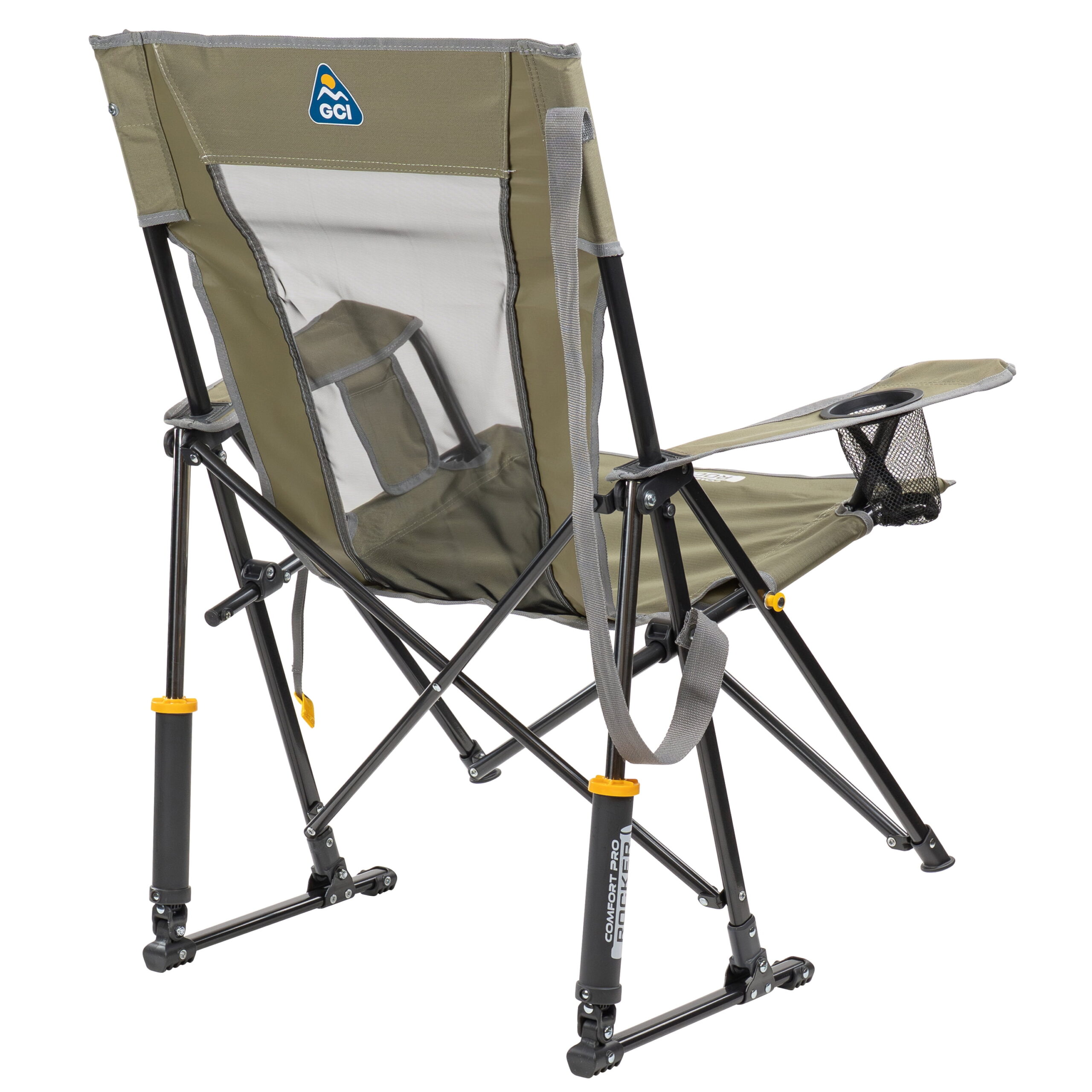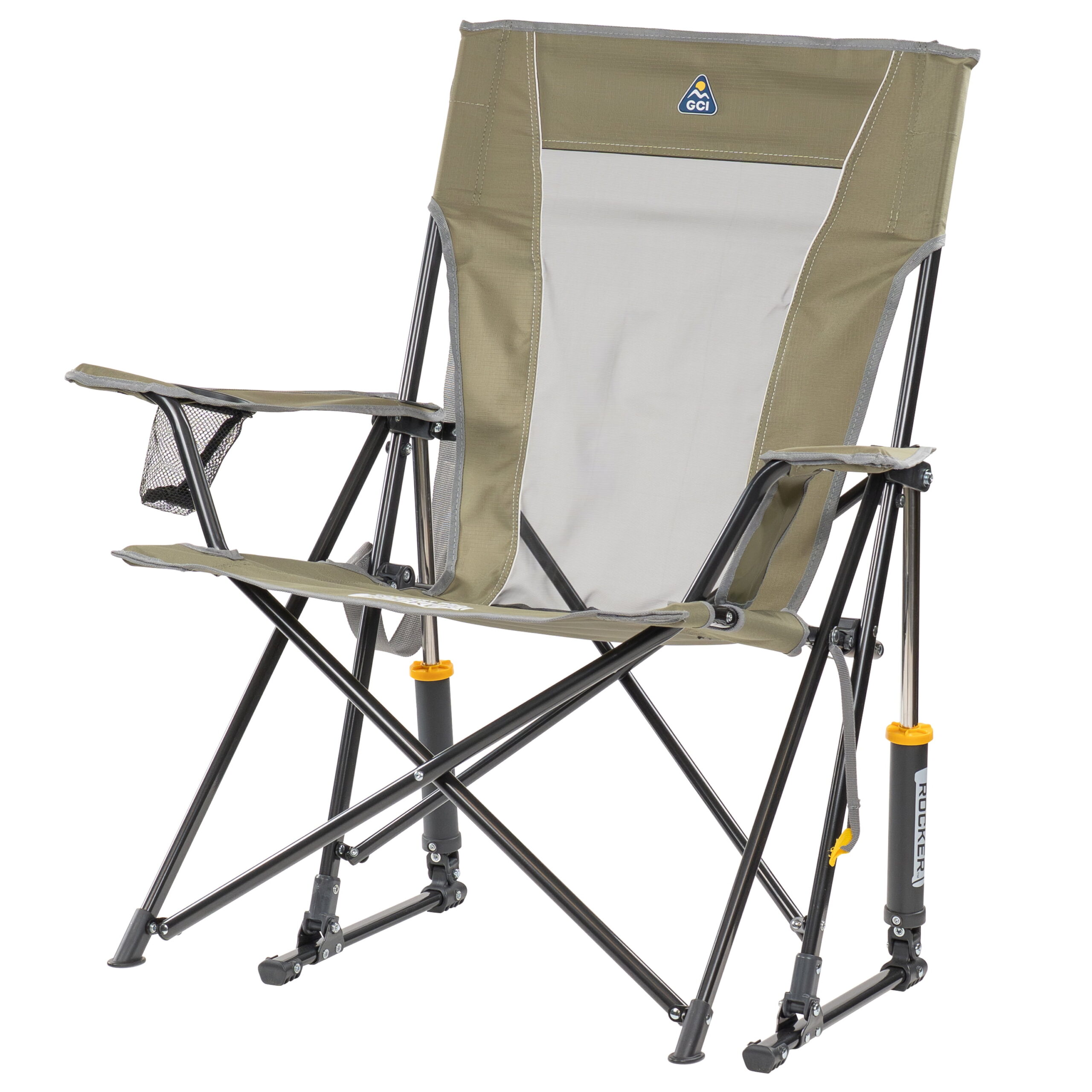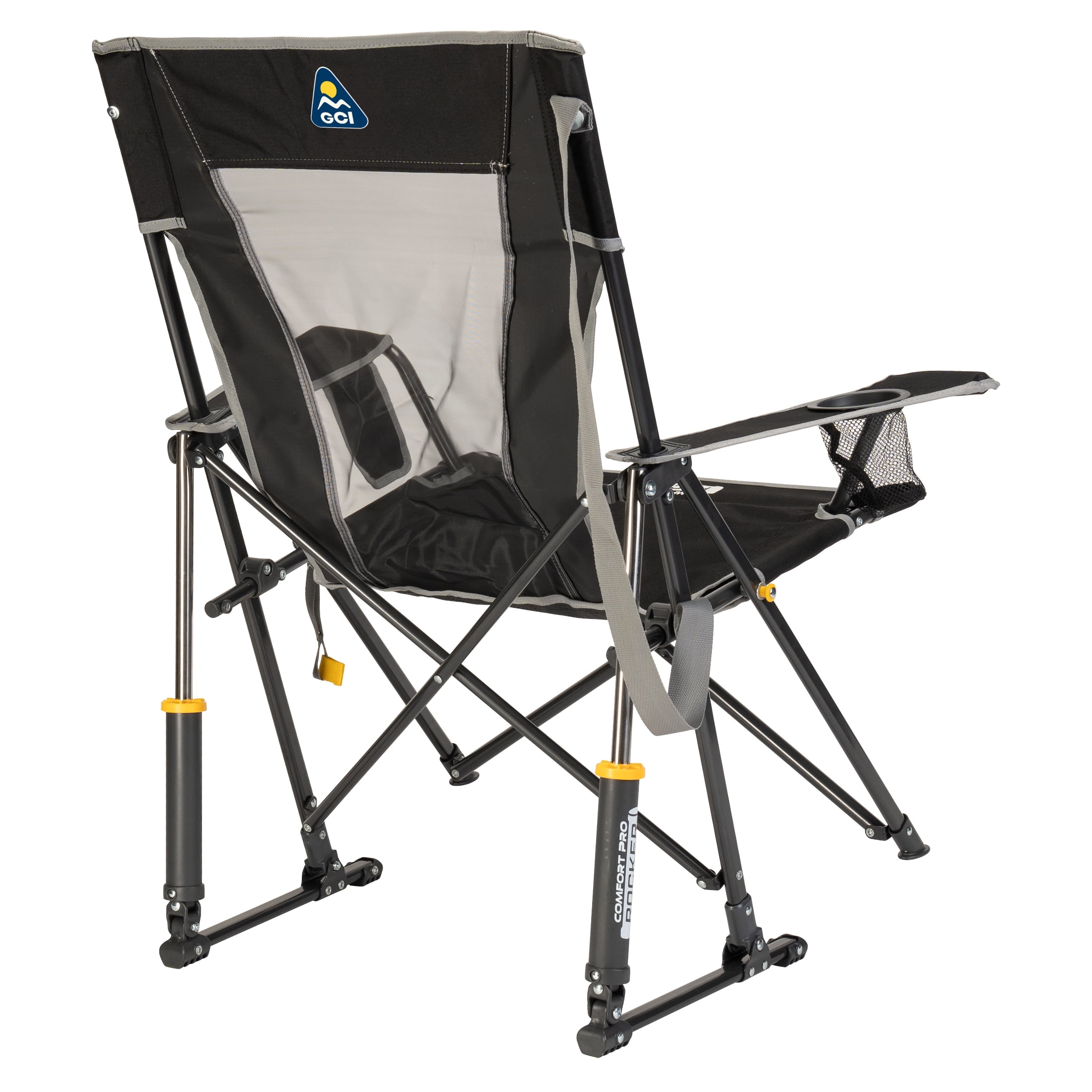 The GCI Outdoor Comfort Pro Rocker is your ticket to ultimate relaxation. Featuring a taller backrest and laid-back seating angle, along with innovative Spring-Action Rocking Technology for a smooth rocking motion, it delivers the kind of comfort that makes you forget you’re outdoors. The sturdy steel frame supports up to 250 lbs. and includes a shoulder carry strap for easy transport wherever adventure leads you. A built-in beverage holder for your favorite drink and a side pocket for quick access to photos, playlists or checking the score make it the perfect seat for sideline cheering, pre-game tailgating, or backyard barbecuing. When it’s time to head home, collapse the chair and secure it in a folded position with the attached closure tab for quick and simple pack up.