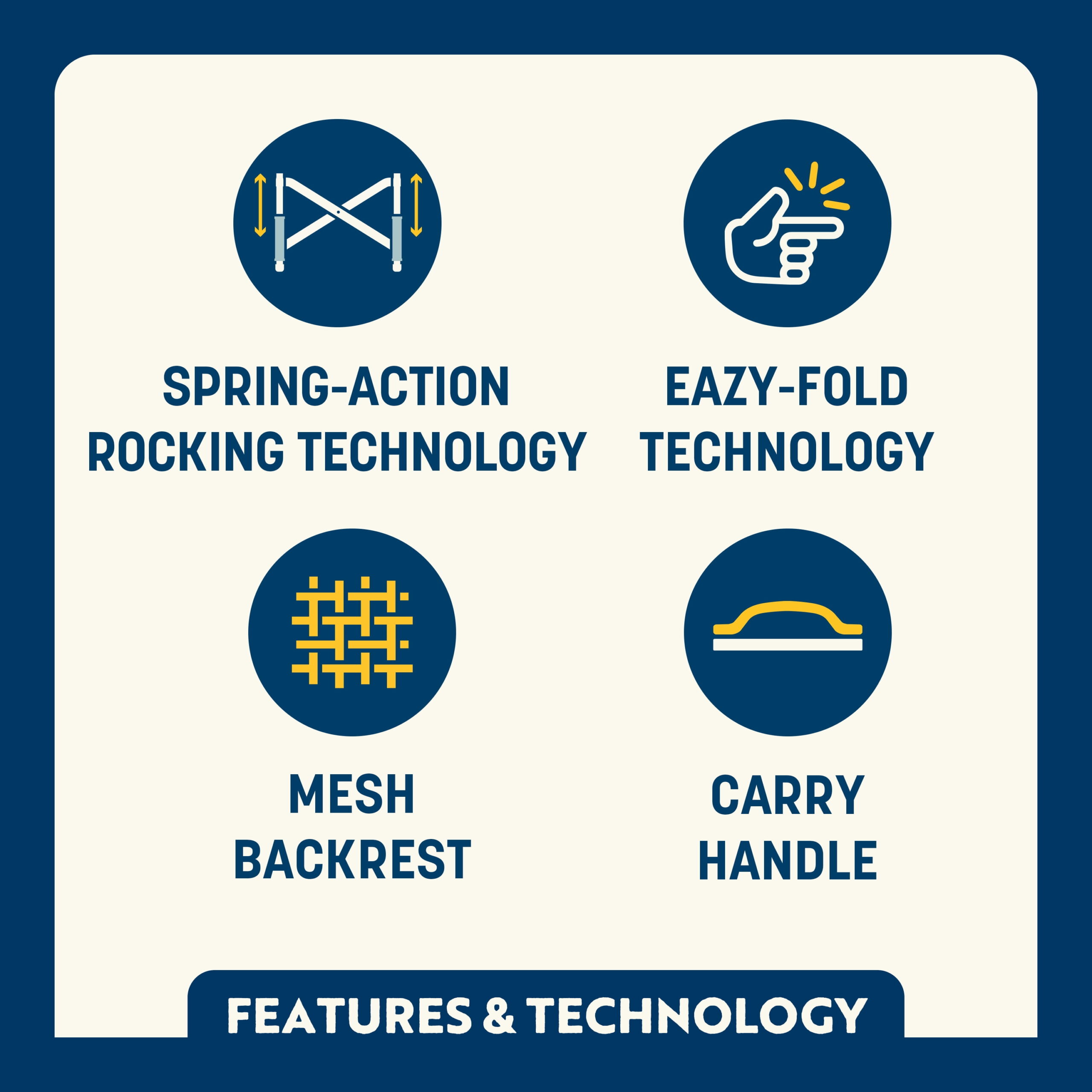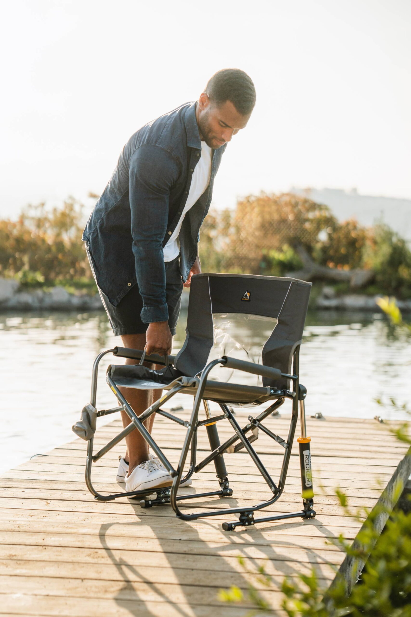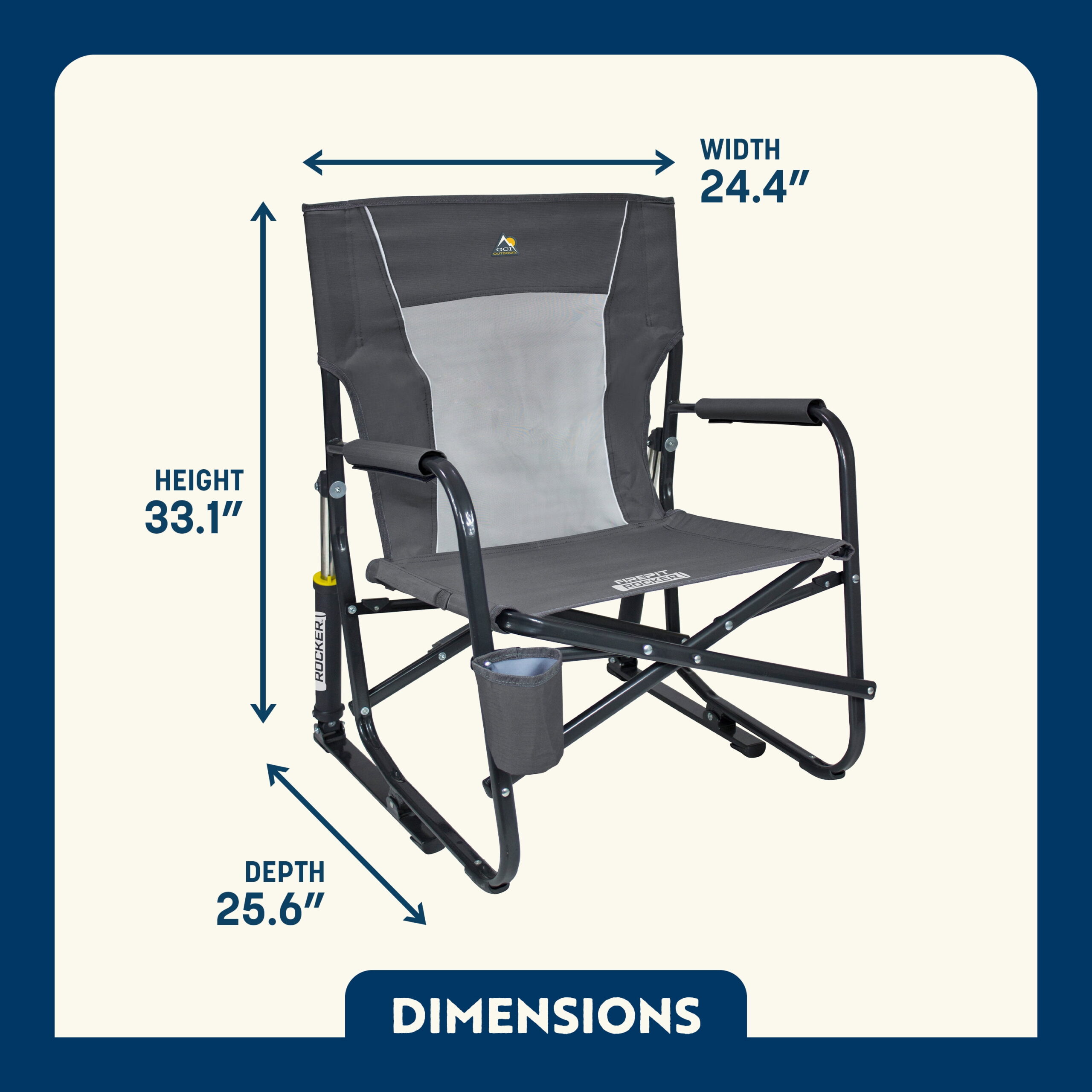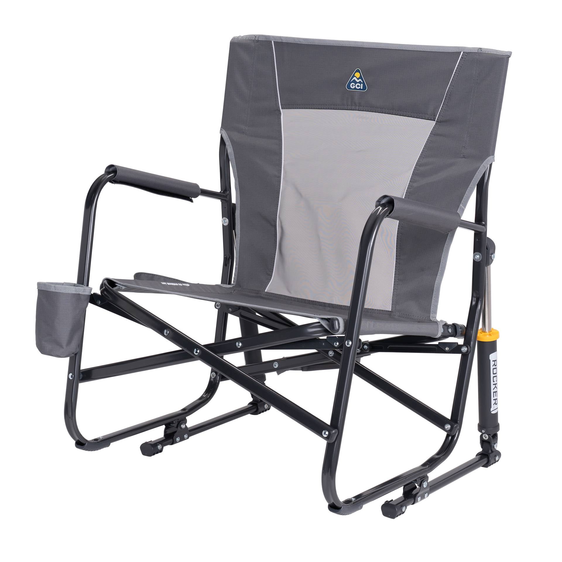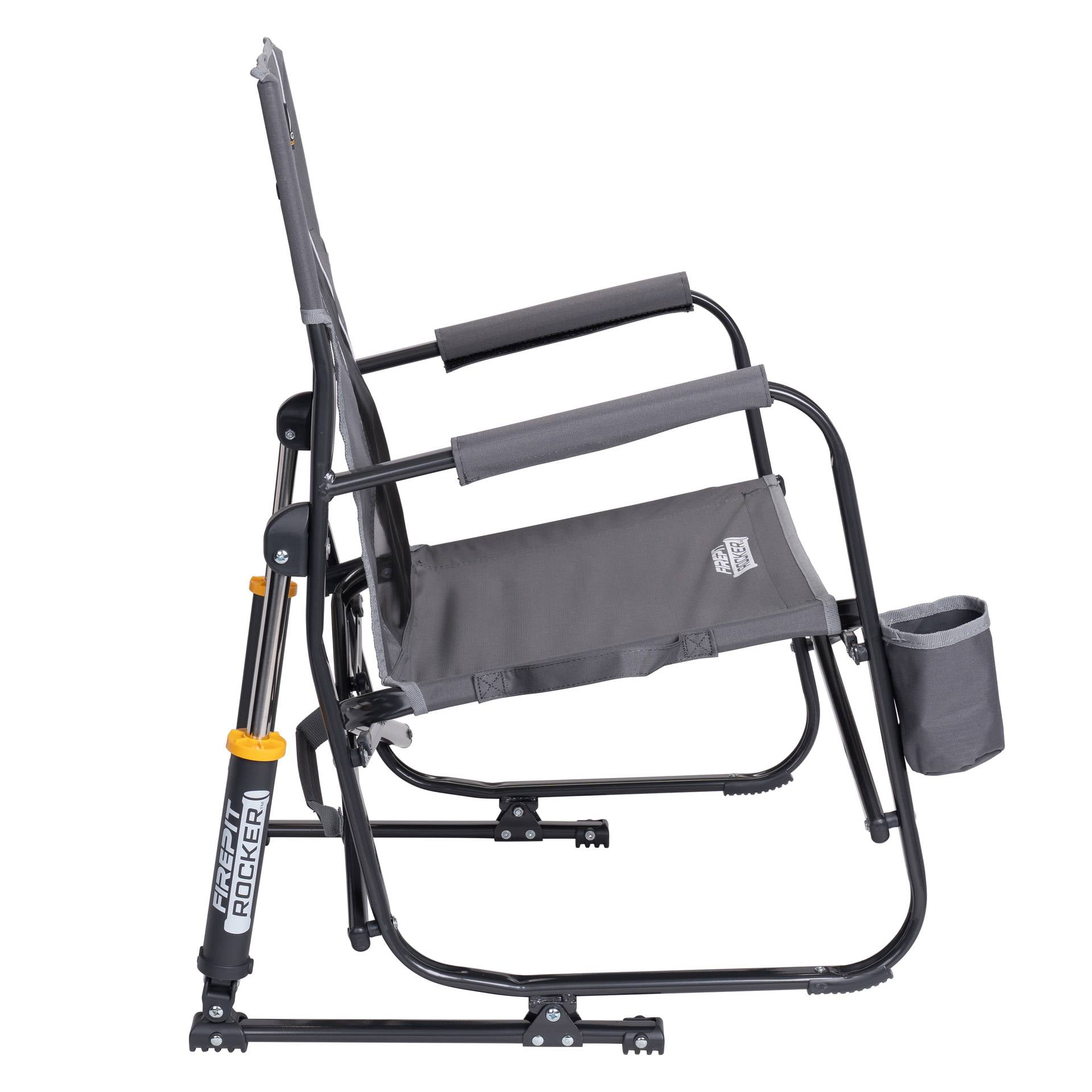 Feel the warmth, hear the crackle, and settle into the comfort of the GCI Outdoor FirePit Rocker. With its low-profile design and patented Spring-Action Rocking Technology, this chair provides a smooth rocking motion and a relaxing fireside experience. Designed with Eazy-Fold Technology for quick setup and storage, you’ll be toasting marshmallows in no time. Padded armrests provide extra comfort and support, making it easier to sit and stand, while the breathable mesh backrest allows for refreshing airflow on warm summer nights. Keep your favorite drink within reach with the convenient beverage holder, perfectly placed for sipping as you sway. Crafted from stainless steel, the durable frame supports up to 250 lbs and is built to withstand years of outdoor adventures. When it’s time to pack up, the easy-to-grip carry handle makes transport a breeze—so you can take comfort wherever you go.