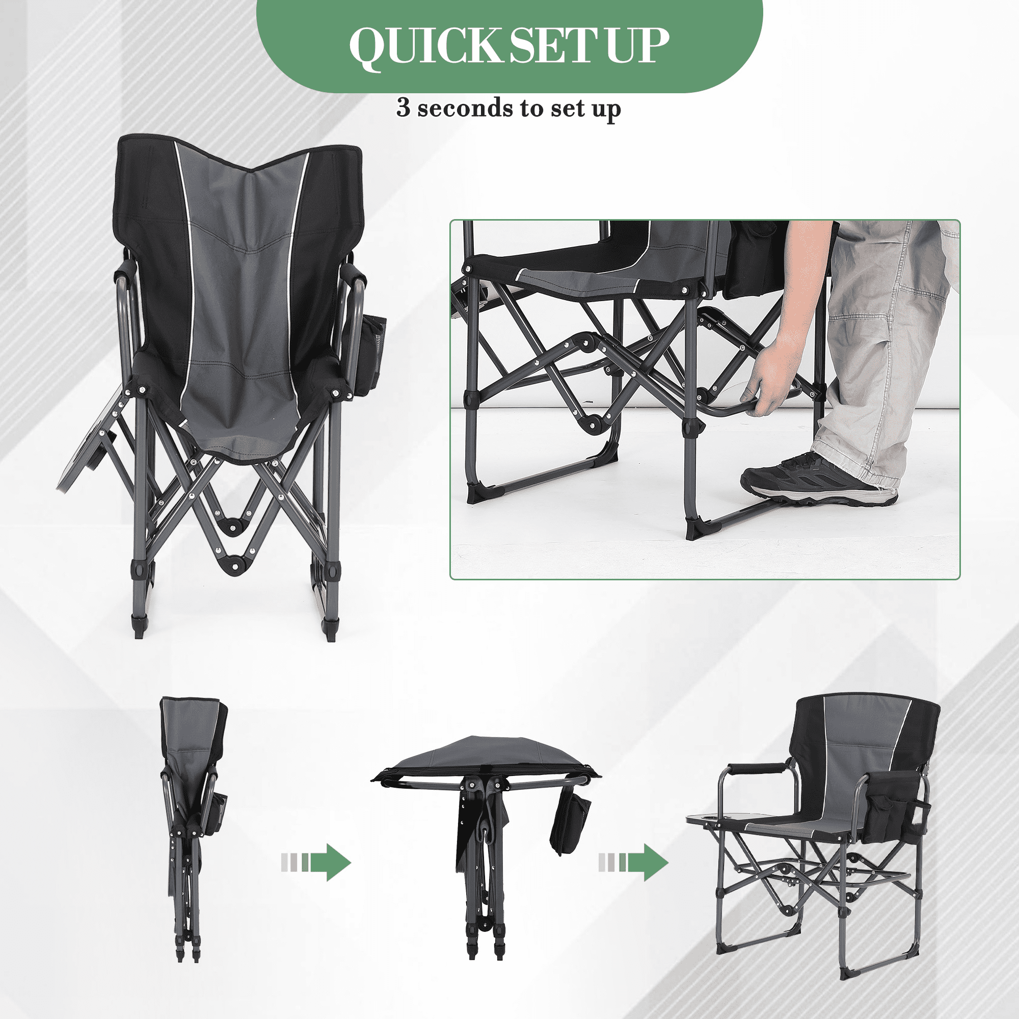 - Robust Construction: Features a reinforced aluminum and steel frame supporting up to 400 lbs, with tear-resistant 600D Oxford fabric for reliable performance.