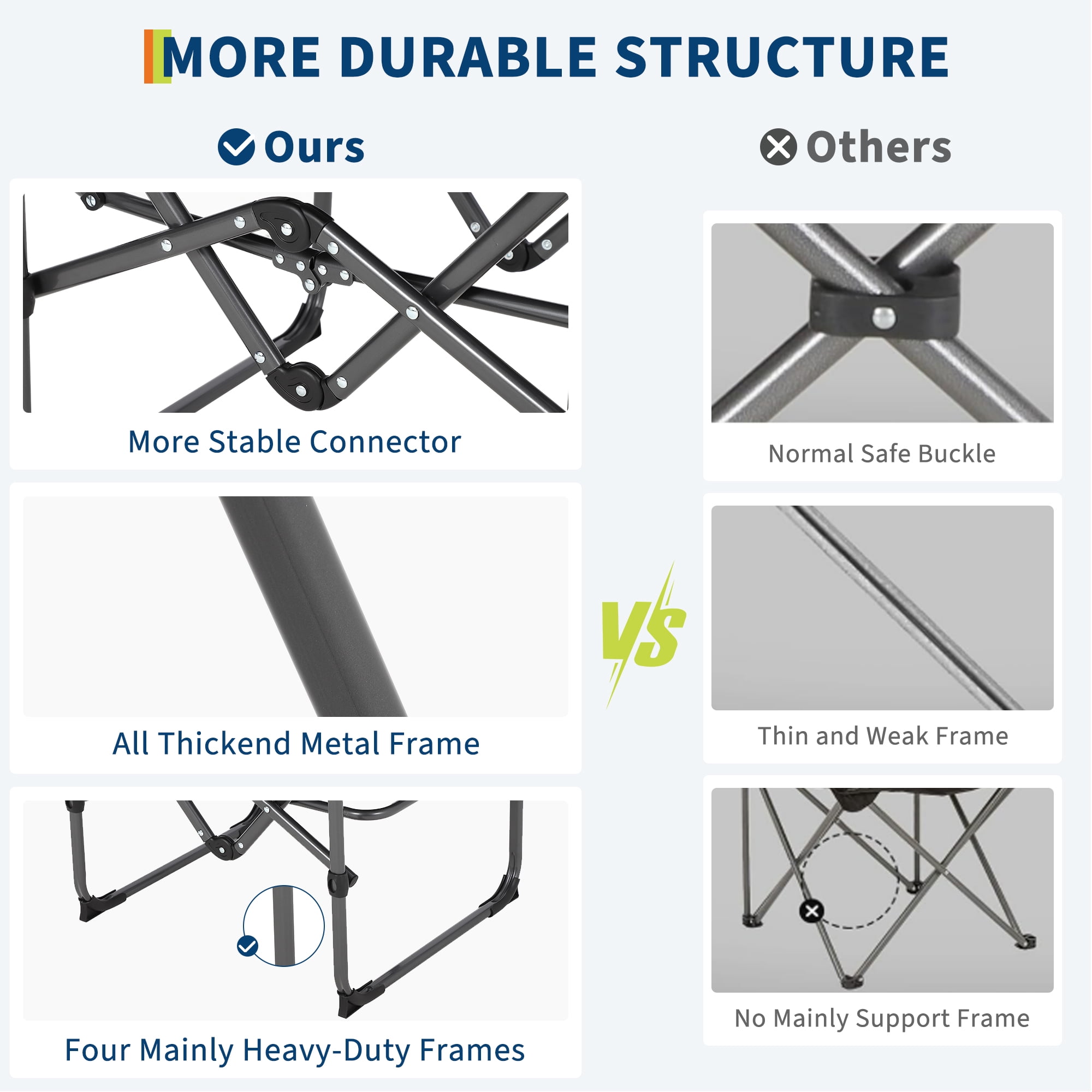 - Weather-Ready: Constructed with waterproof fabric that dries fast and rust-proof legs for durability in diverse weather conditions.