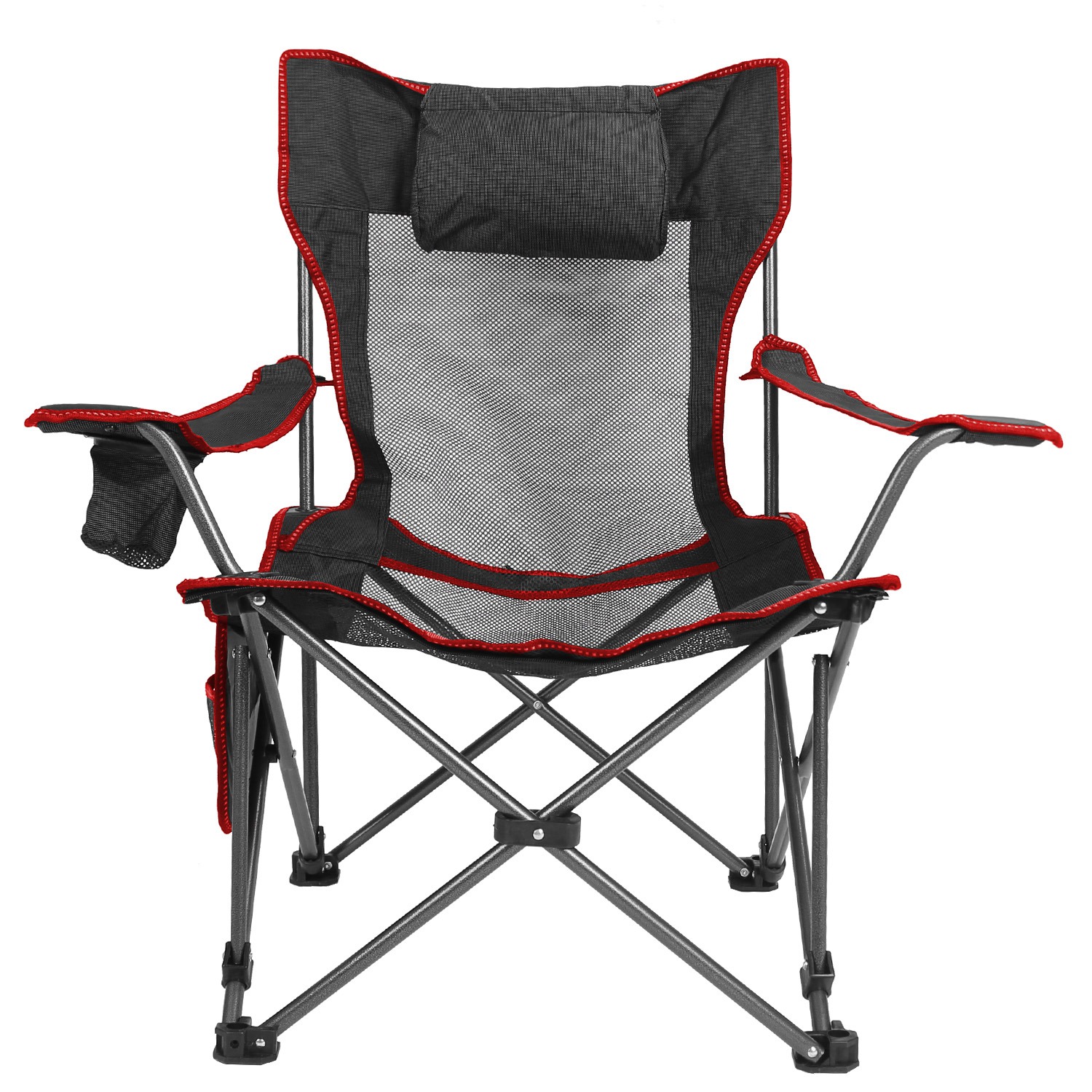 iMounTEK Mesh Backrest chair features a spacious seat area of 22.4 x 22.8 inches, offering ample room to relax. It includes an adjustable backrest and armrests for maximum comfort, complemented by a provided pillow. Designed with a thickened 16mm steel frame, reinforced connections, and durable 600D Oxford fabric, this foldable chair supports up to 330 lbs. Ideal for various activities such as camping, picnics, sports events, BBQs, hiking, tailgating, beach outings, or simply relaxing in your backyard or office, the chair also includes a mesh cup holder and side pocket for convenience. When not in use, it folds down to 7.9 x 6 x 35 inches and fits into the included carry bag, making it easy to store and transport.