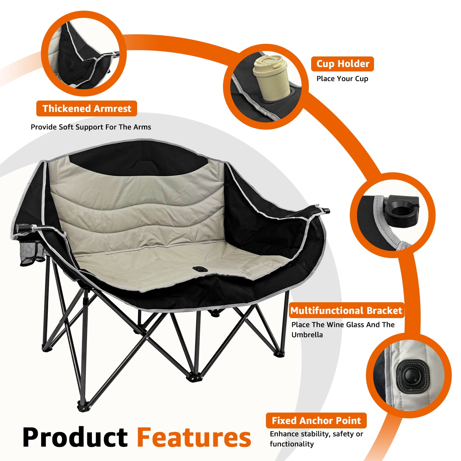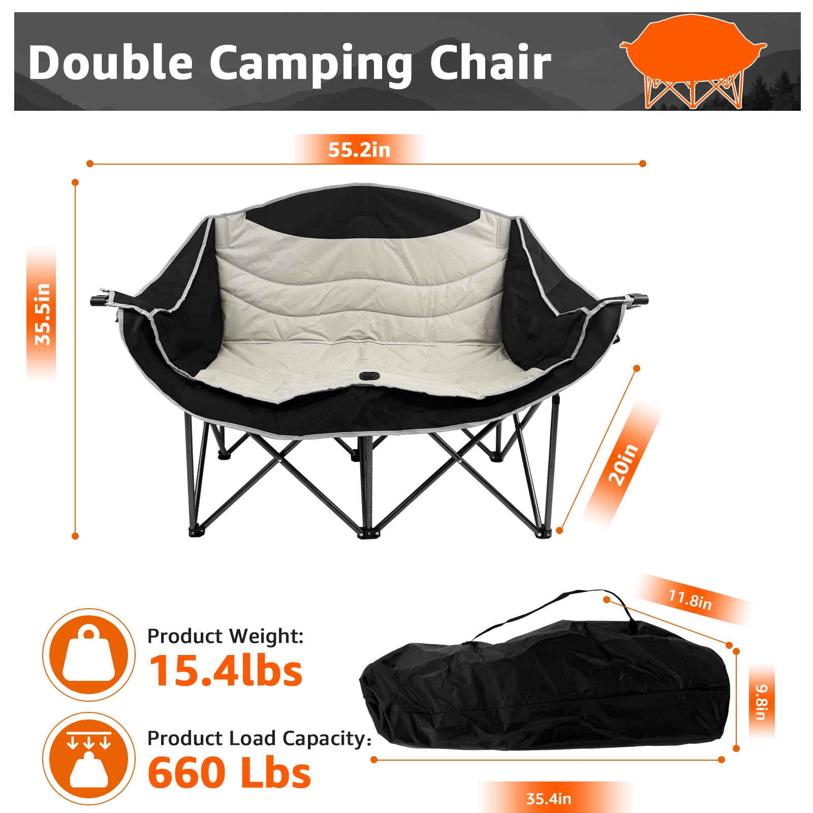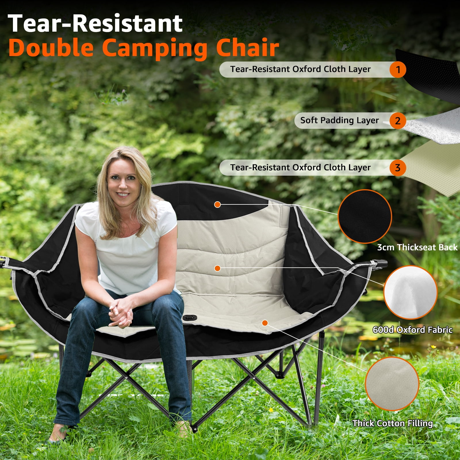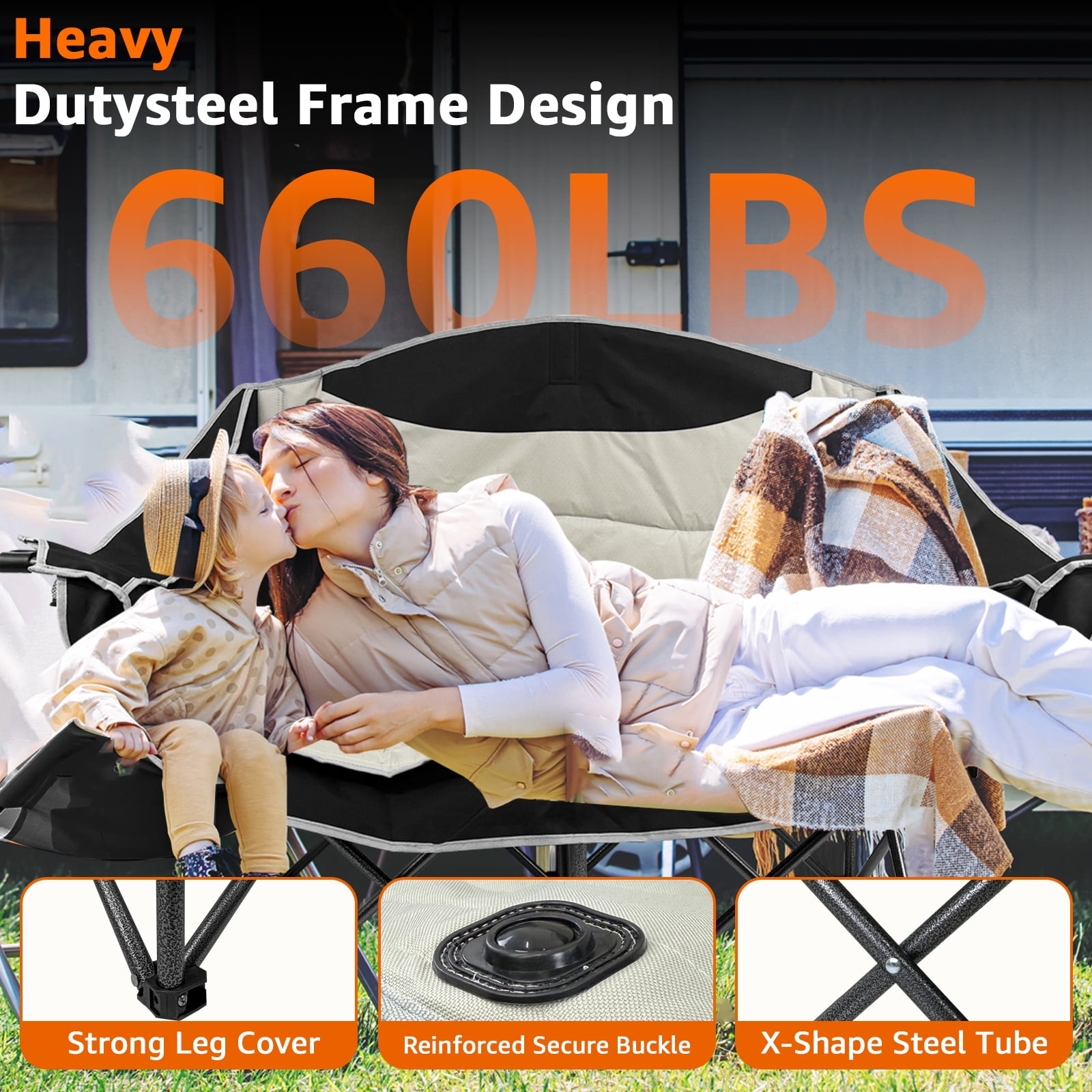 - Robust Capacity: Features a thickened X-shaped steel frame and triangular construction with reinforced safety buckles, supporting up to 660 lbs for two adults.