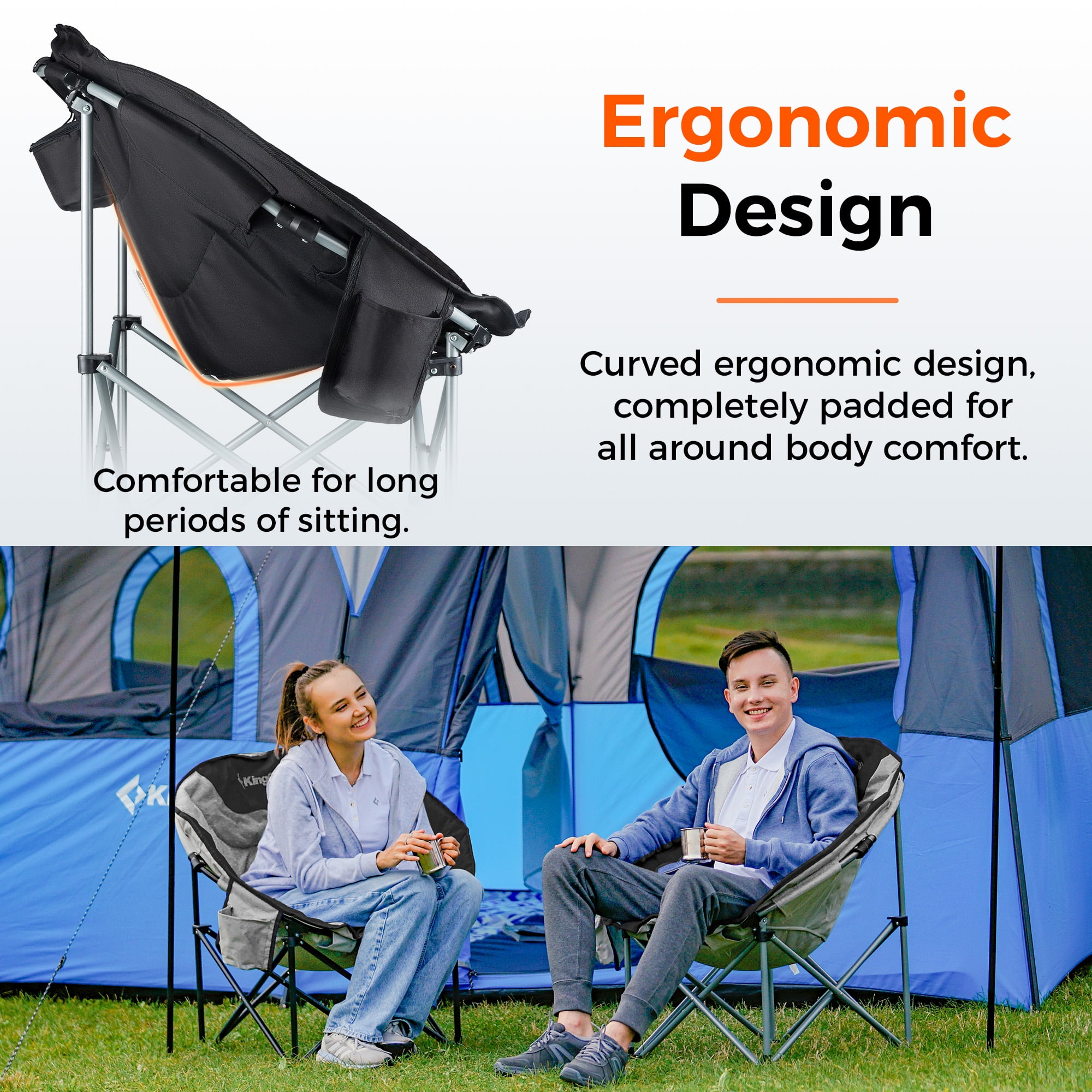 The KingCamp Indoor and Outdoor Folding Chair is the greatly oversized chair, designed to deliver unmatched comfort and durability for both indoor lounging and outdoor adventures. This saucer round chair features a spacious, ergonomic design with fully padded seats and sides, offering all-around body support, making it perfect for big people and adults seeking a cozy retreat. Crafted with a sturdy steel tube frame and premium 600D Oxford fabric, this round folding chair ensures long-lasting stability and comfort, whether you’re relaxing at home or exploring the outdoors. This saucer camp chair includes a side cup holder and back cooler bag to keep your essentials handy, making it ideal for camping, picnics, or backyard gatherings. As a fold chair, it’s incredibly easy to set up and pack away, folding into a compact size that fits into the included carrying bag for hassle-free transport, this versatile outdoor chair is built to enhance your relaxation wherever you go. Backed by a 12-month warranty, the KingCamp Chair is the perfect blend of comfort, convenience, and durability for all your indoor and outdoor needs.