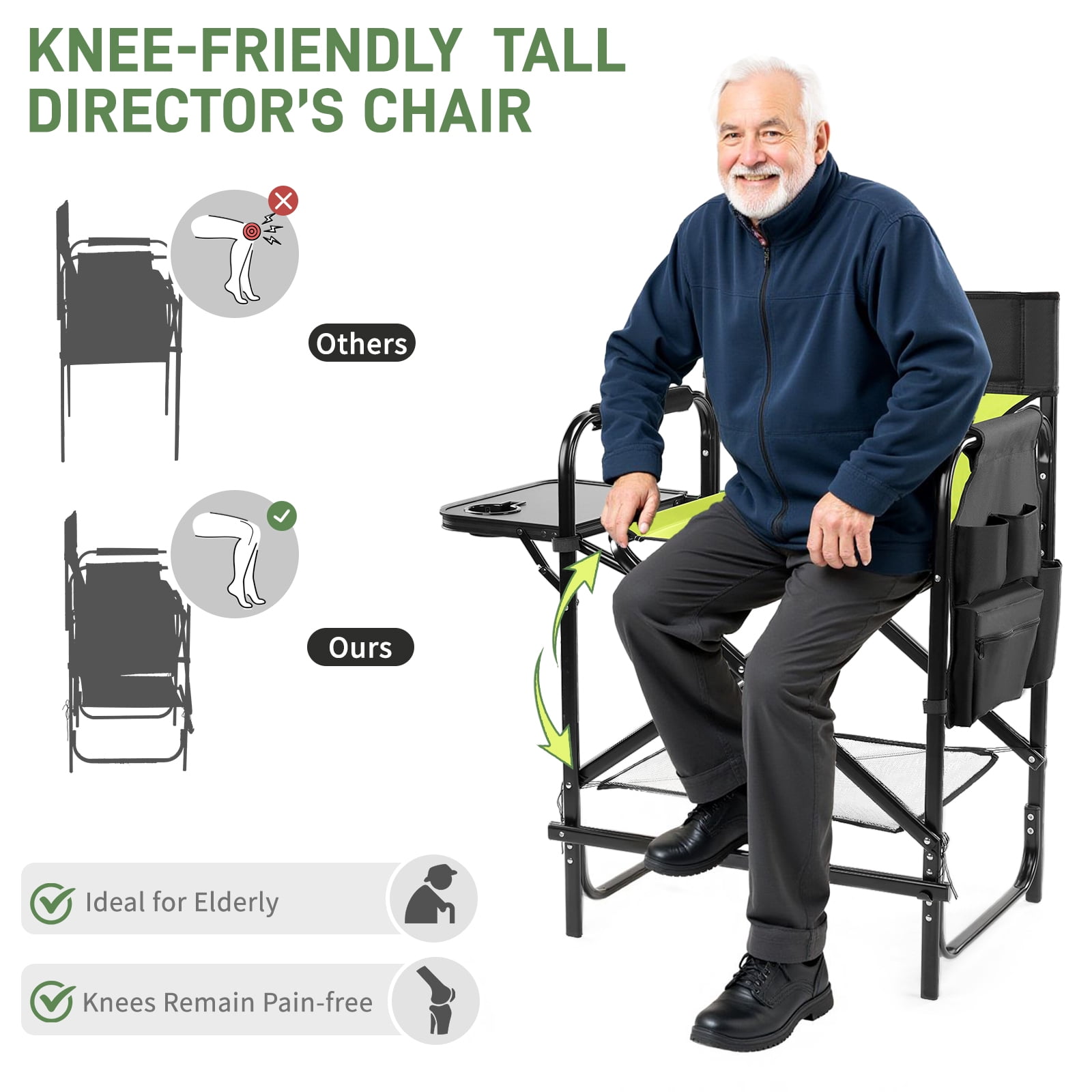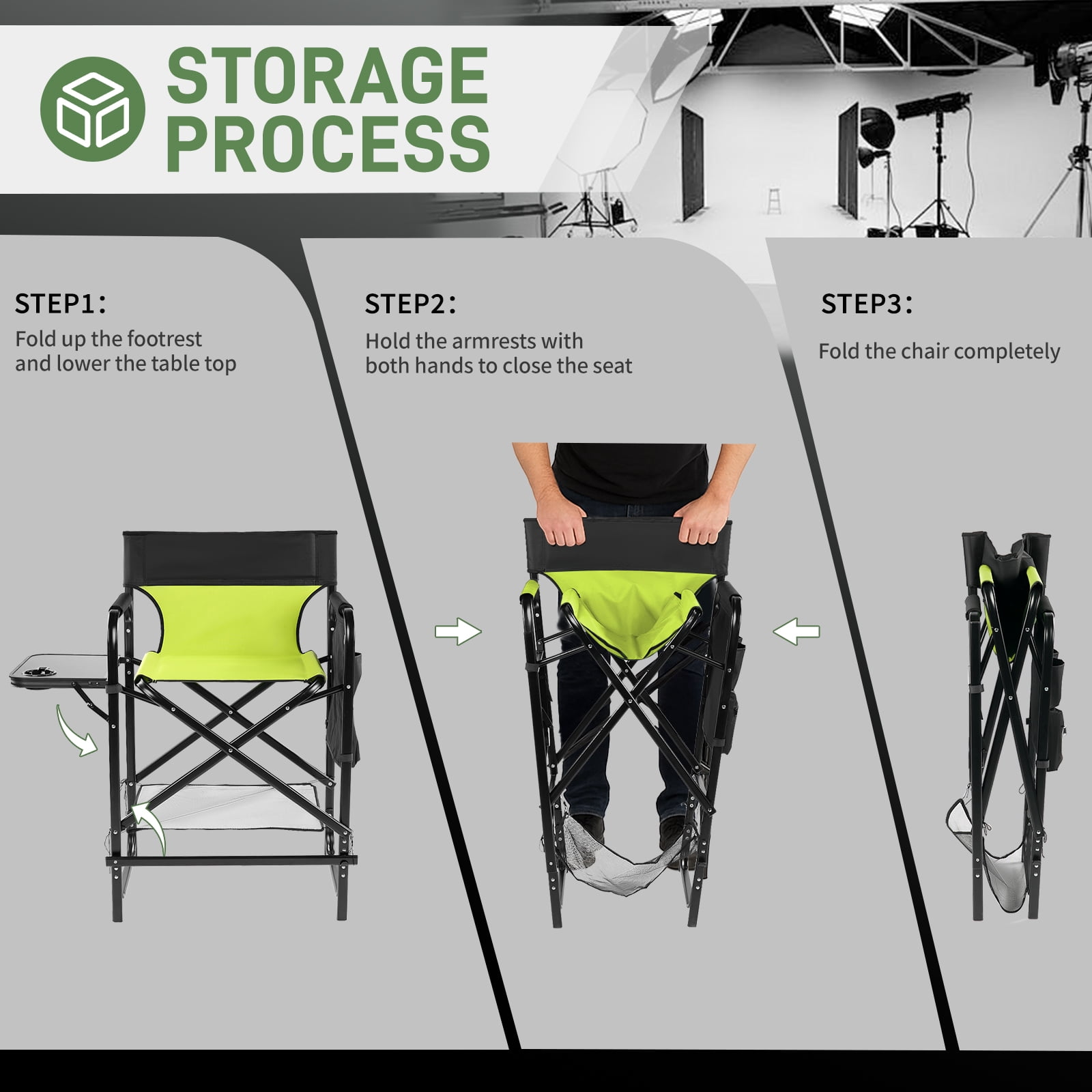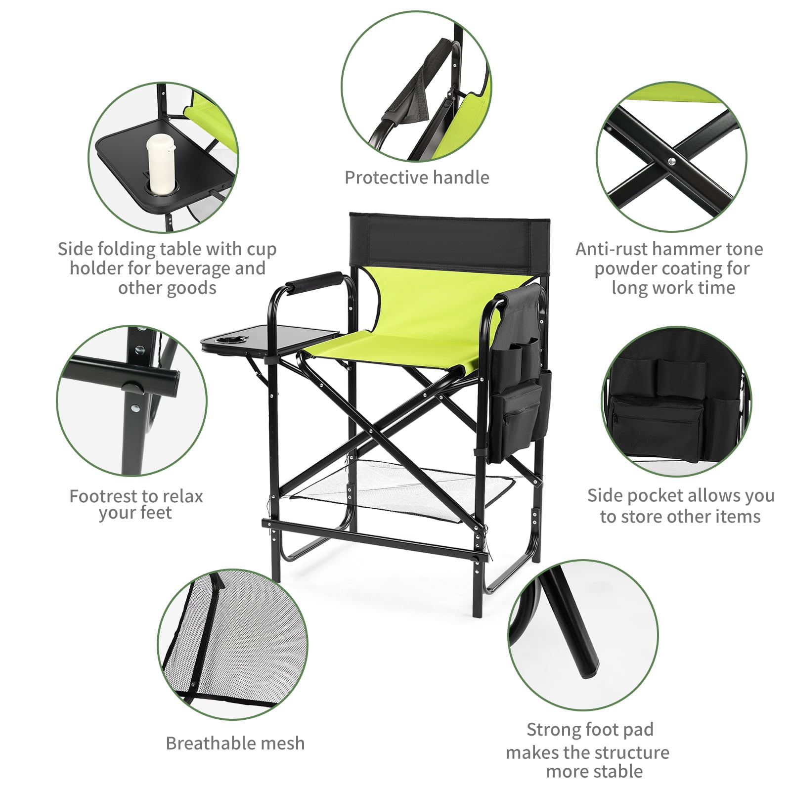 - Elevated Comfort: Features a 26-inch seat height and a detachable footrest, designed for easy sitting and standing, ideal for makeup artists or outdoor events.