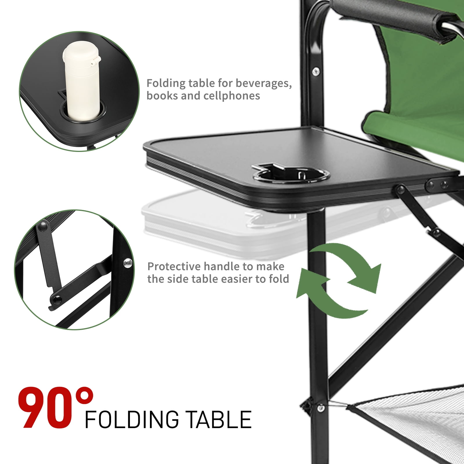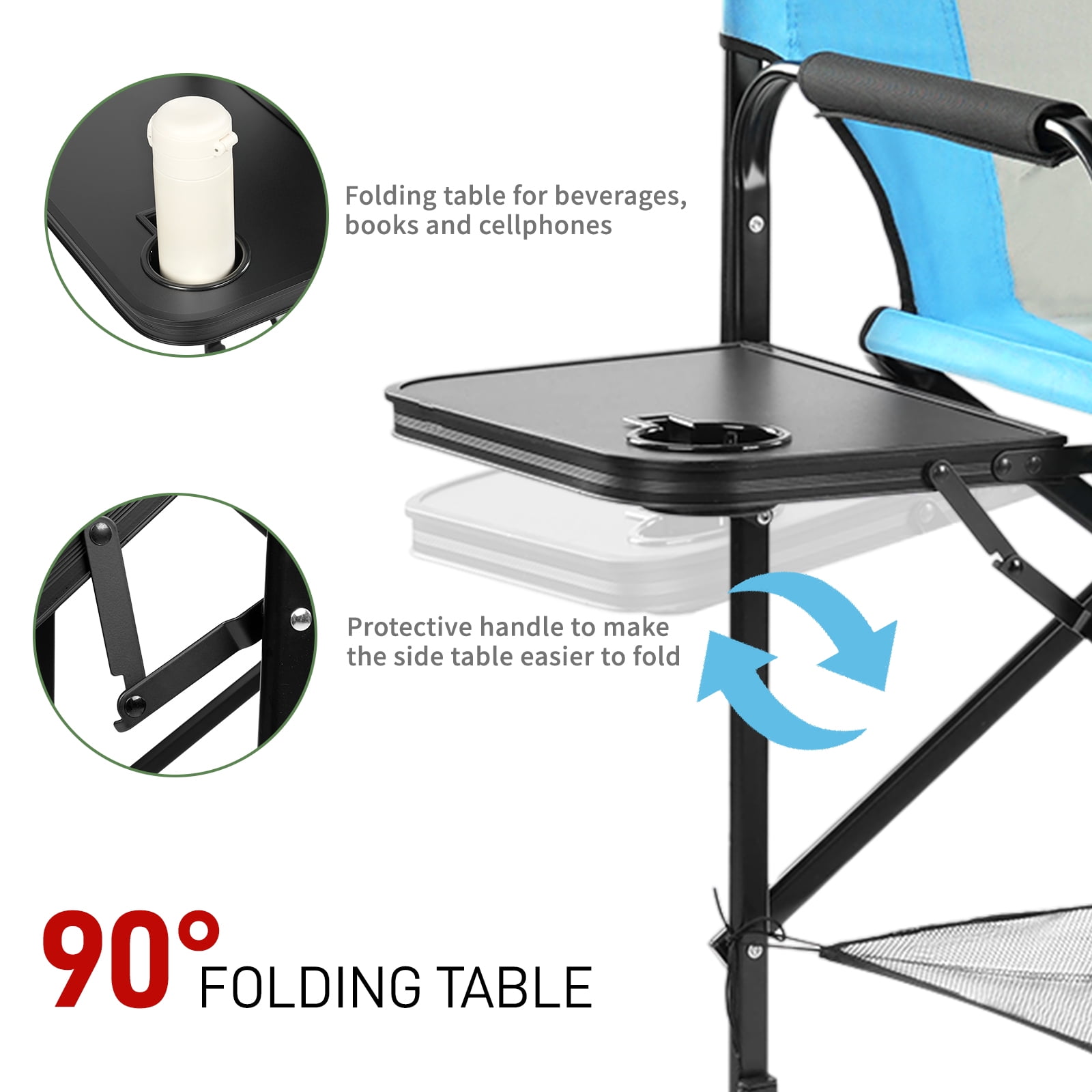 - Integrated Storage: Includes a side table with a built-in cup holder and a multi-pocket storage pouch for convenient access to essentials.