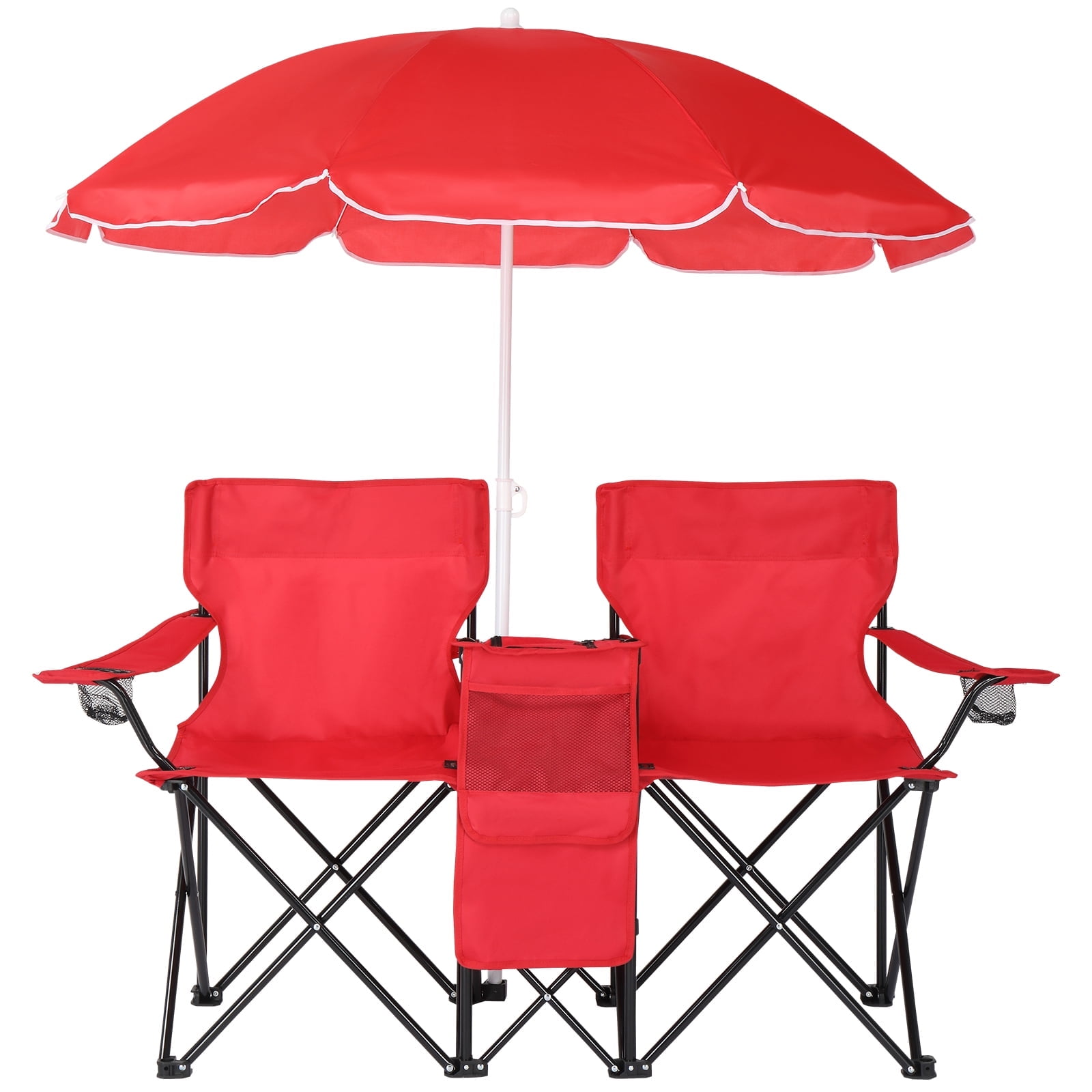 Ktaxon Camping Loveseat Chair, Folding Double Outdoor Chair with Removable Sun Umbrella & Carrying Bag, Double Chairs with Cooler Bag for Lawn Fishing Outdoor, Coconut Tree