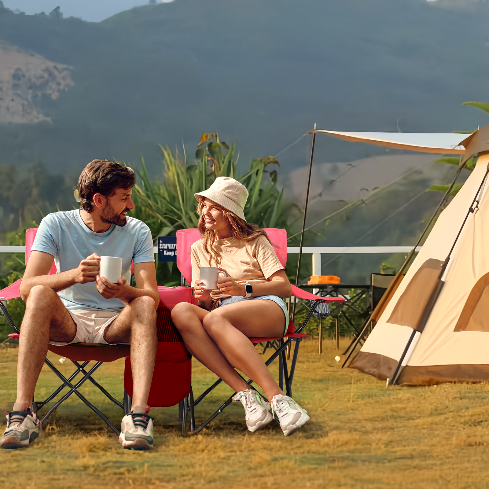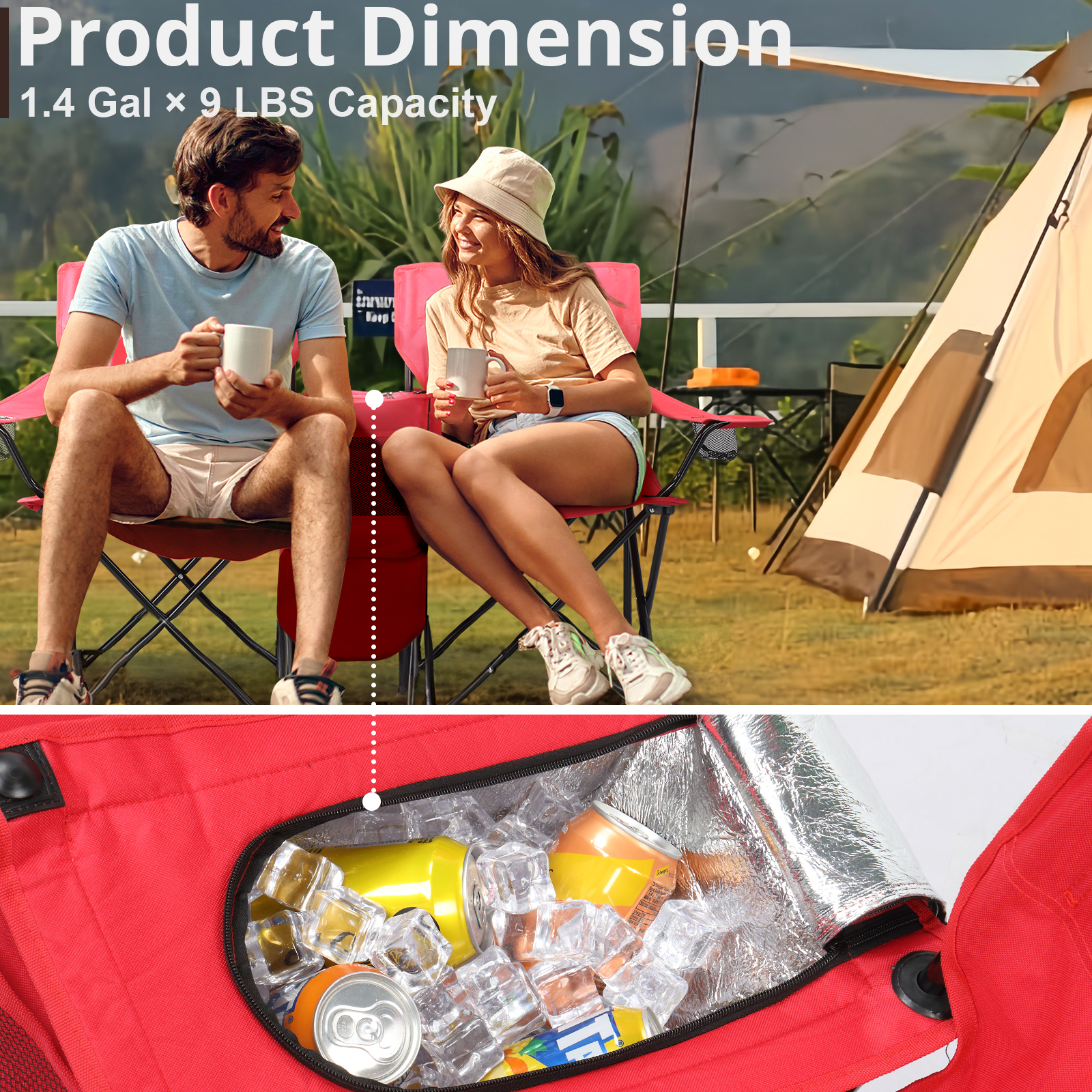 FOLDING DESIGN WITH COOLER BAG – Our folding double outdoor chair features 2 seats and an insulated cooler bag between them, perfect for keeping ice and drinks cool during summer outings.