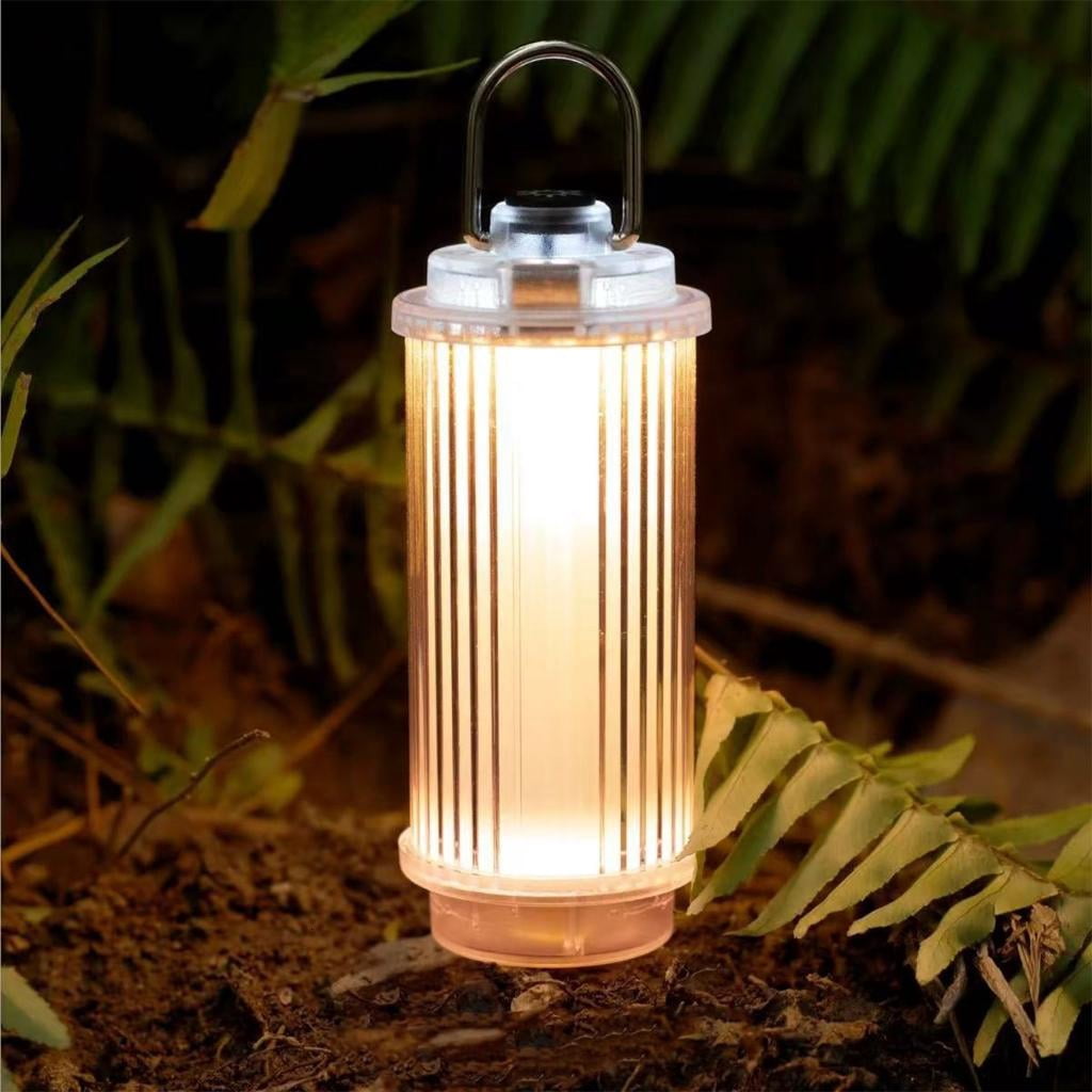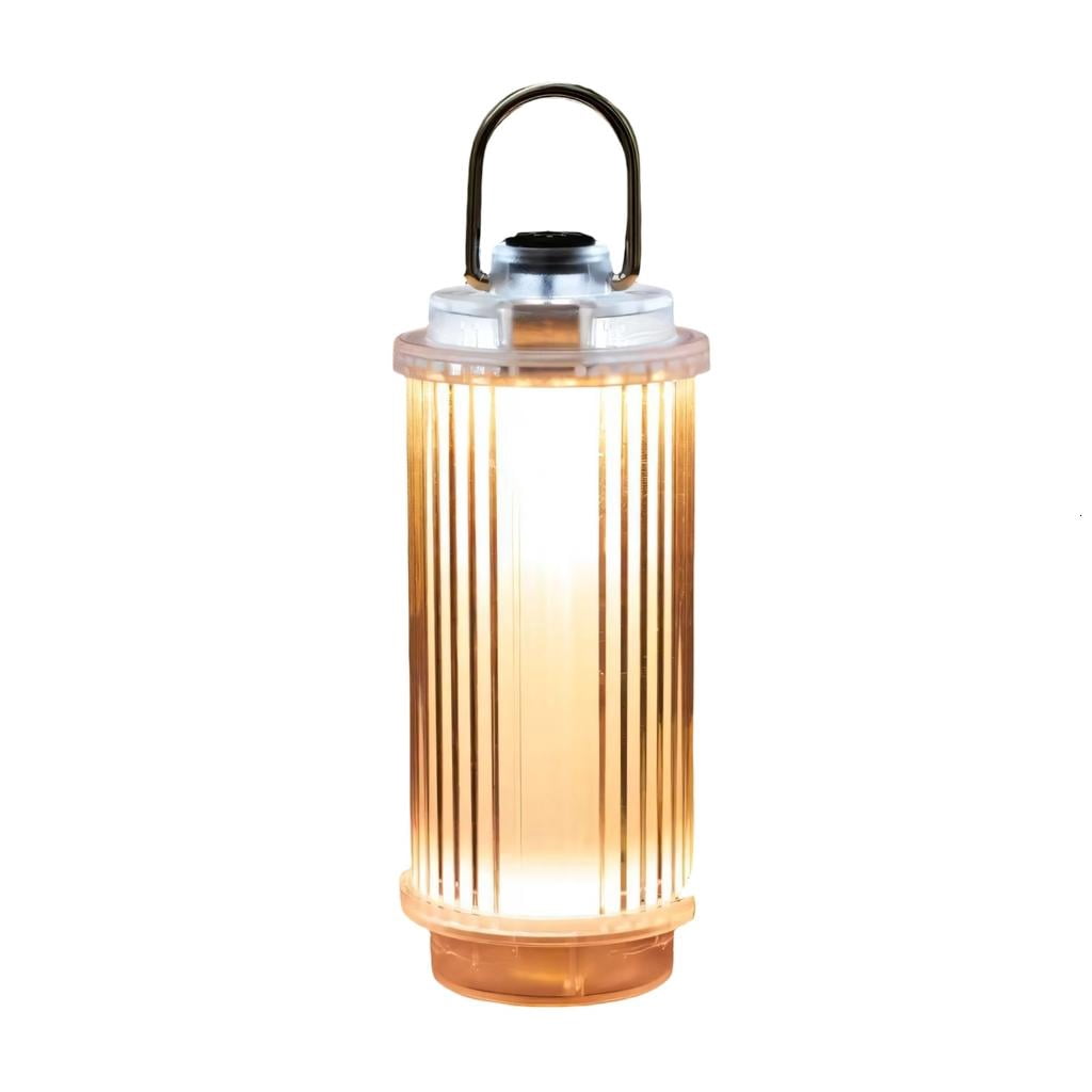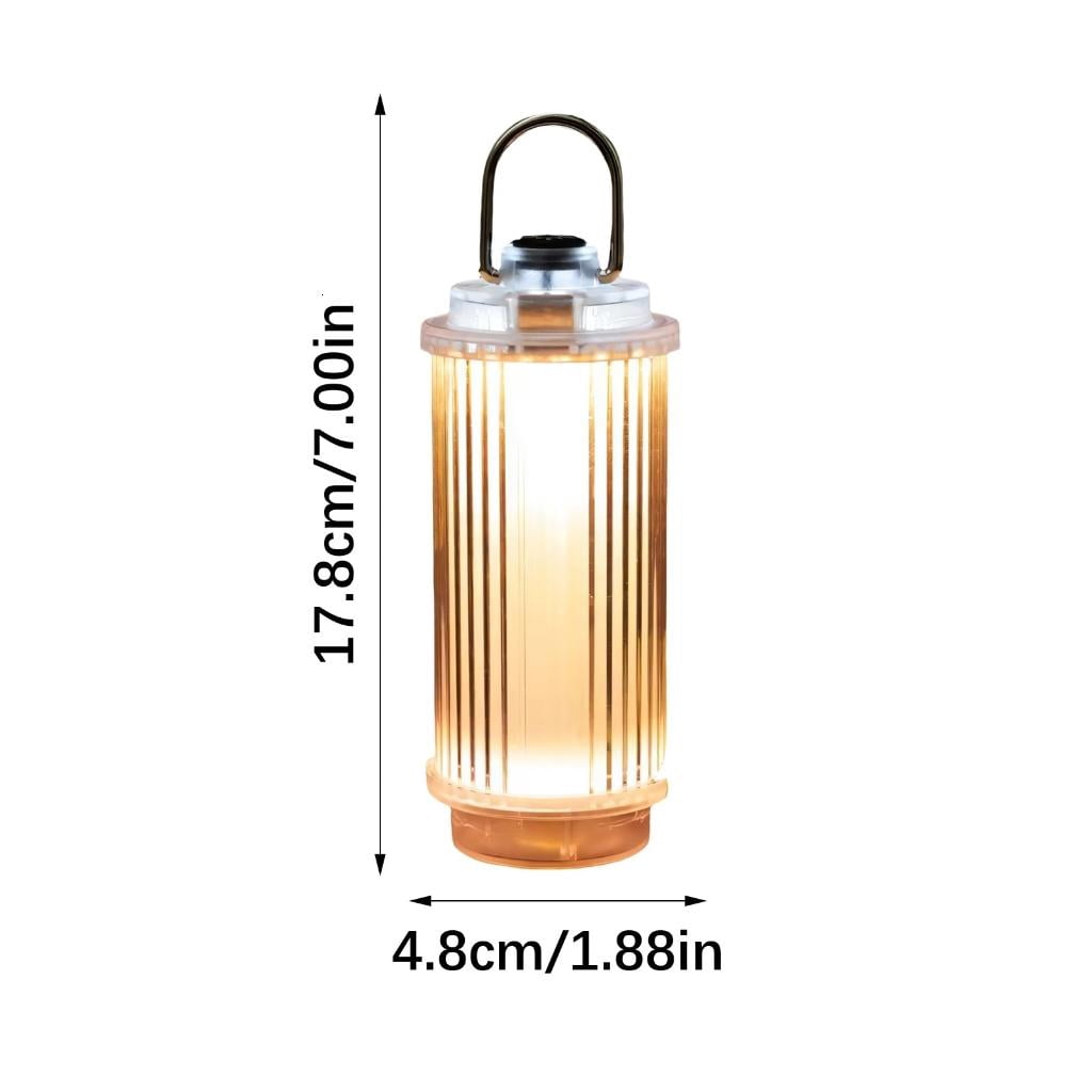 - Retro Design : Features a clear casing with vertical stripe texture, combining vintage camping lamp aesthetics with modern LED lighting for enhanced ambiances.