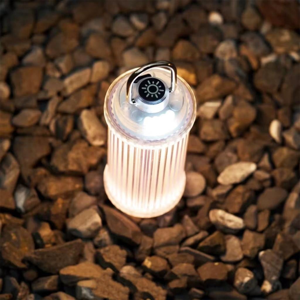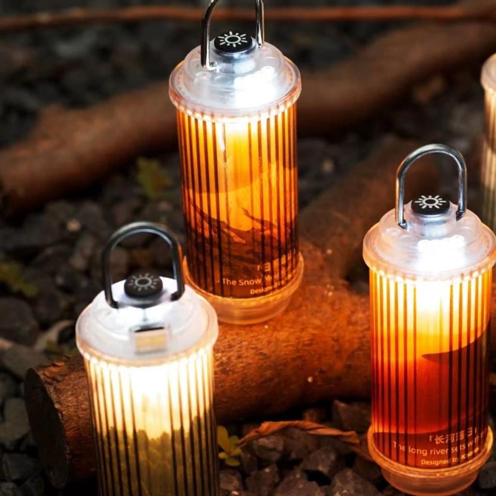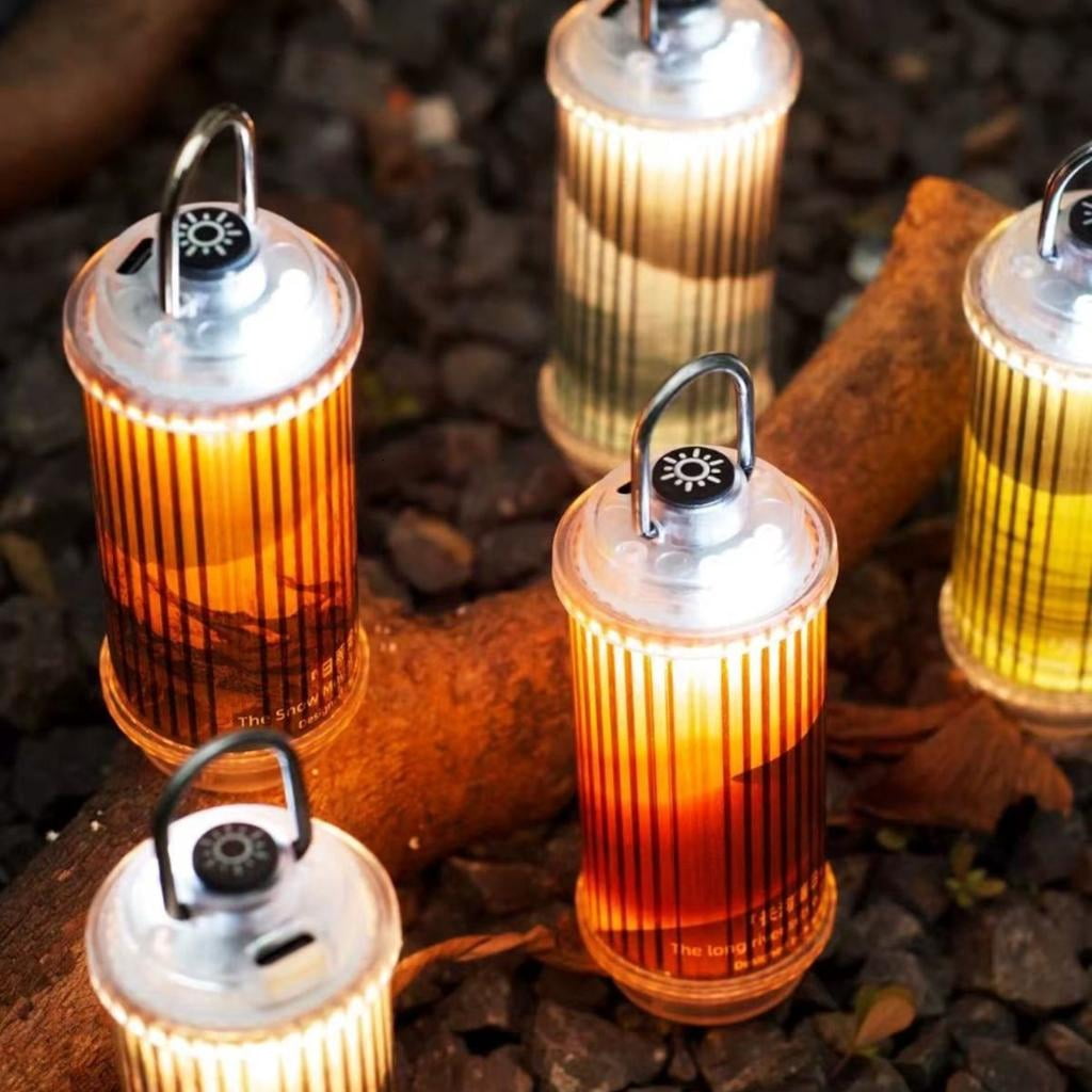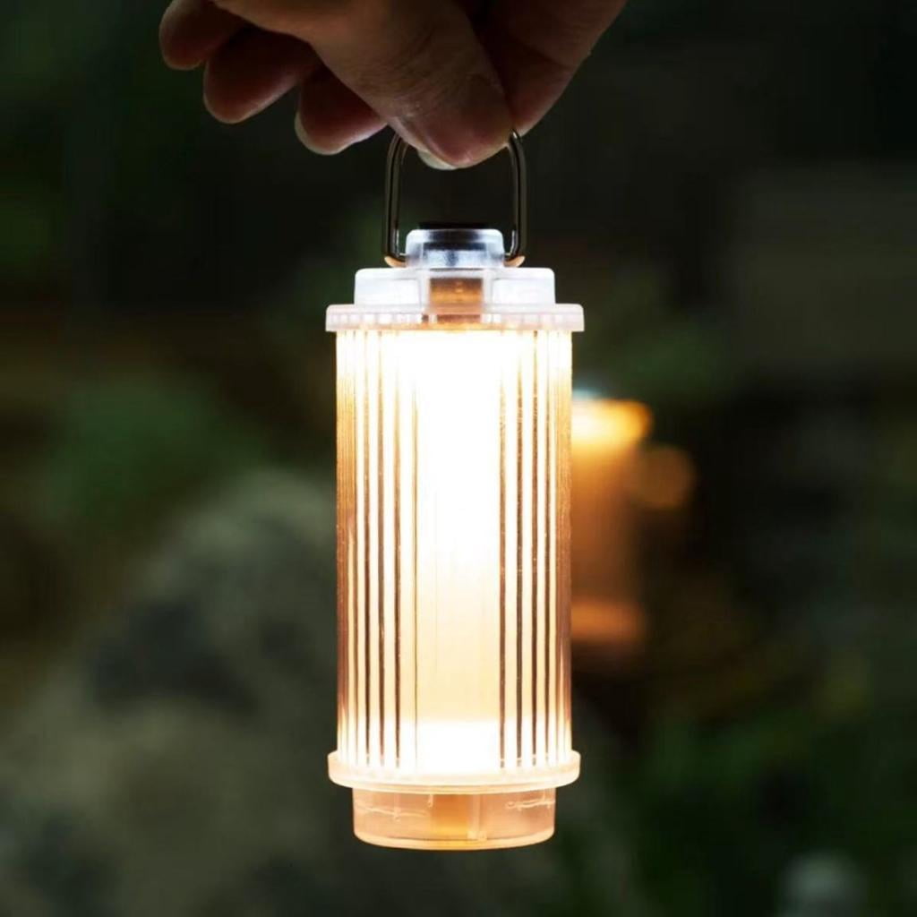 - Retro Design : Features a clear casing with vertical stripe texture, combining vintage camping lamp aesthetics with modern LED lighting for enhanced ambiances.