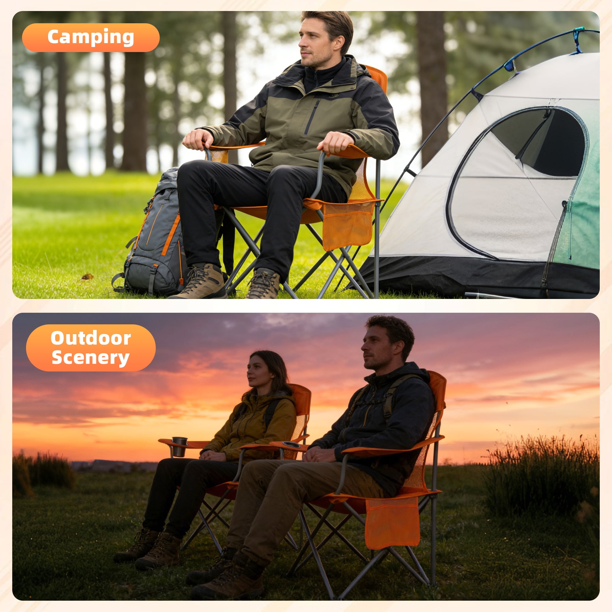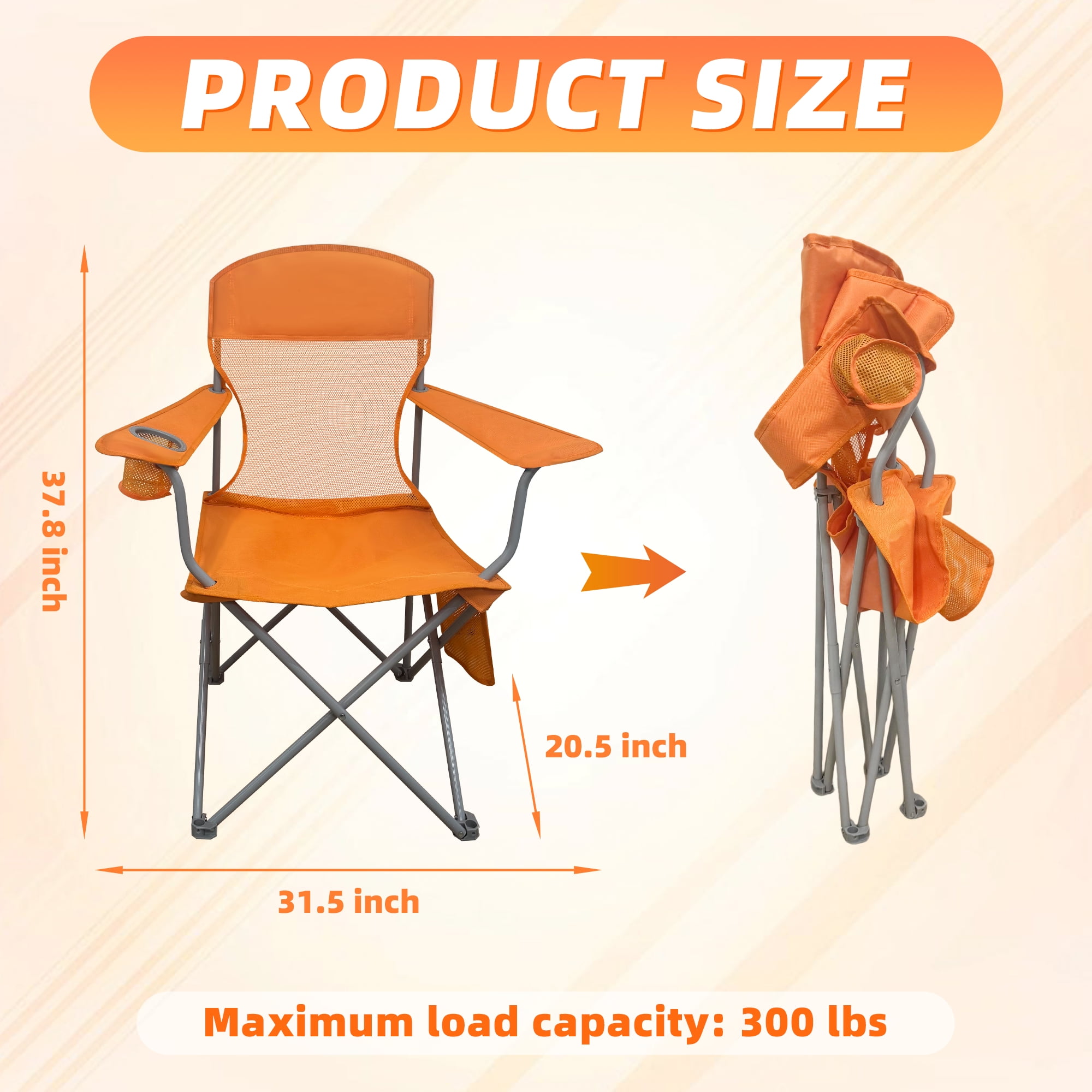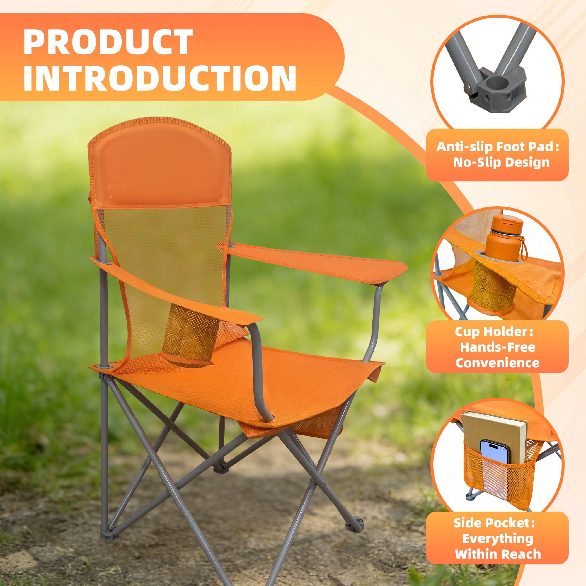 LIFERECORD Portable Camping Chair with Cup Holder & Side Pocket, Lightweight Folding Outdoor Chair for Beach, Fishing, Picnic, Heavy Duty 225LBS Capacity, Orange