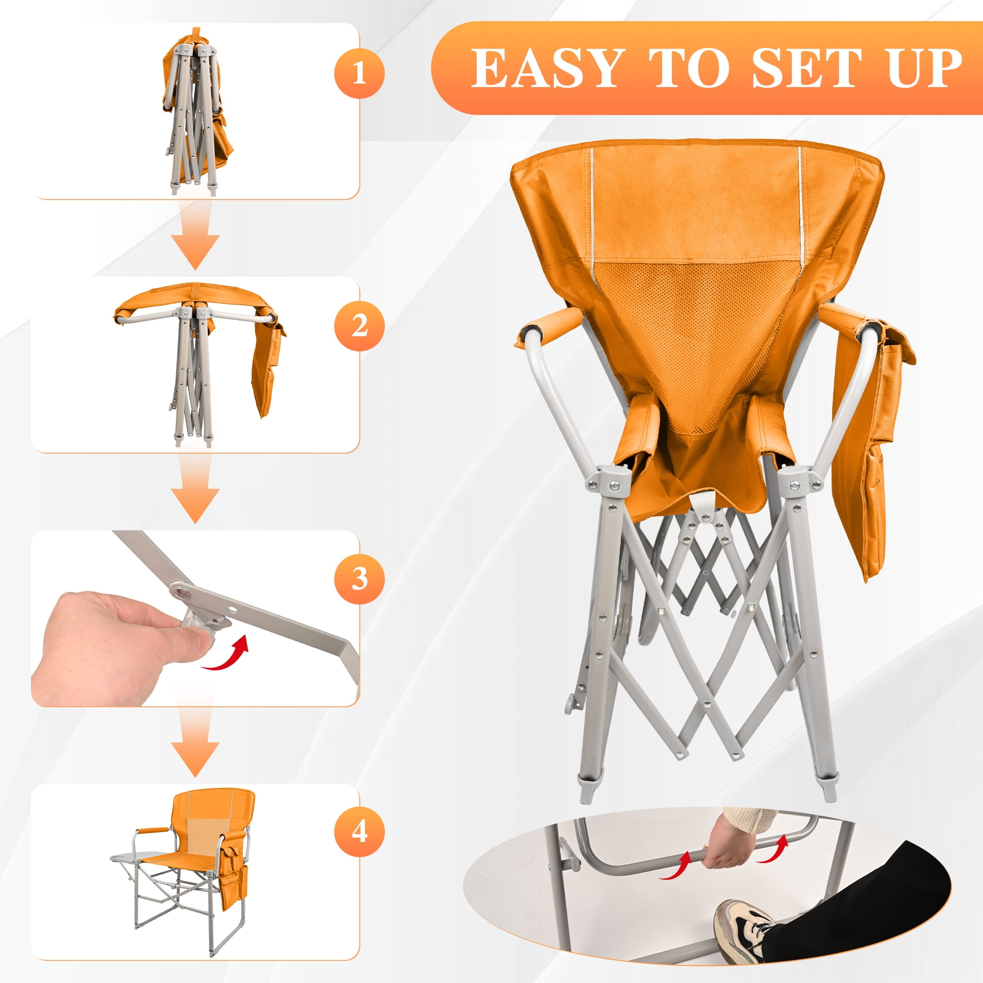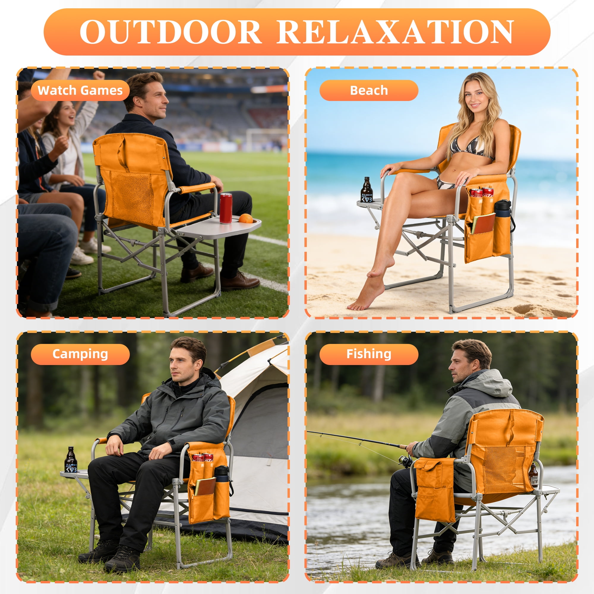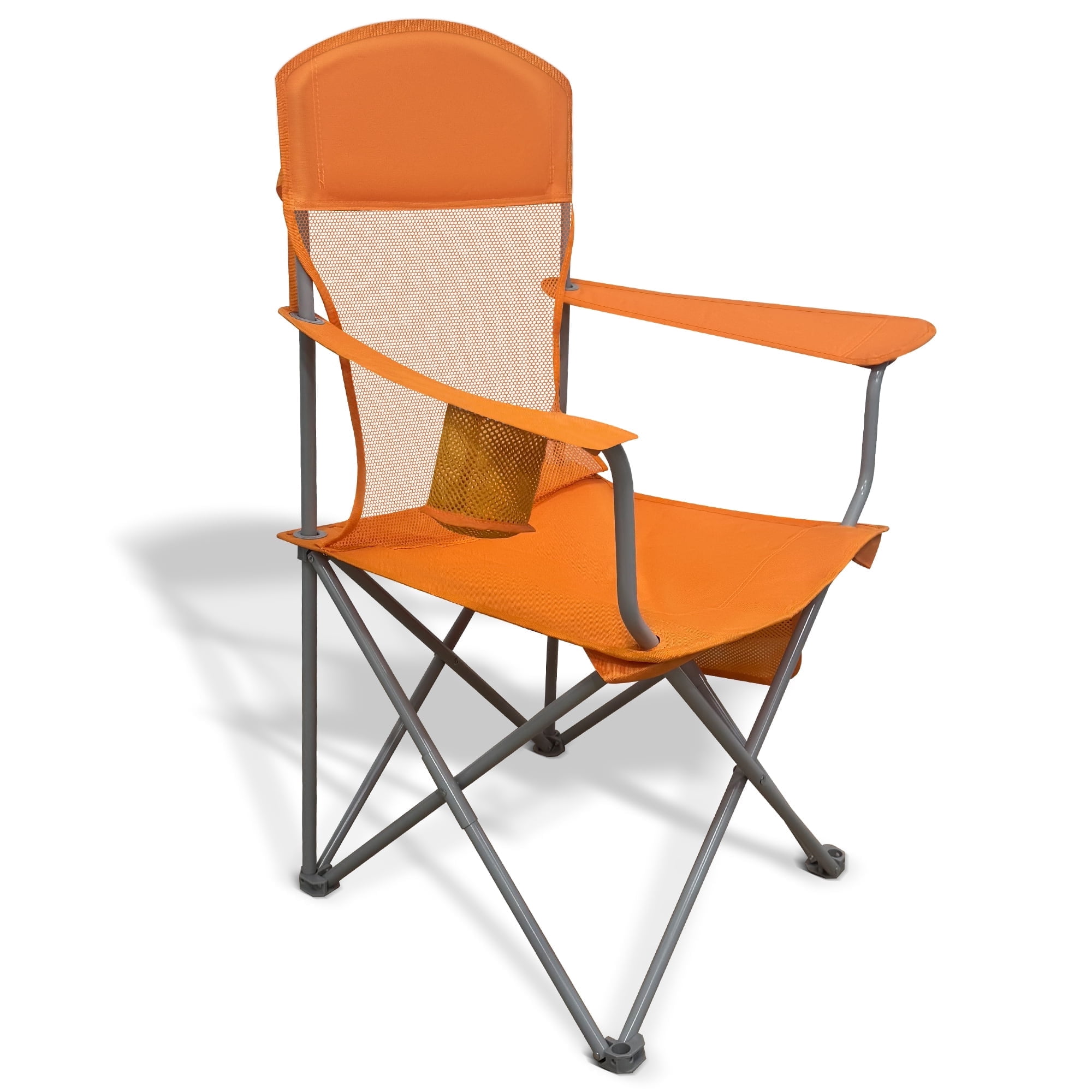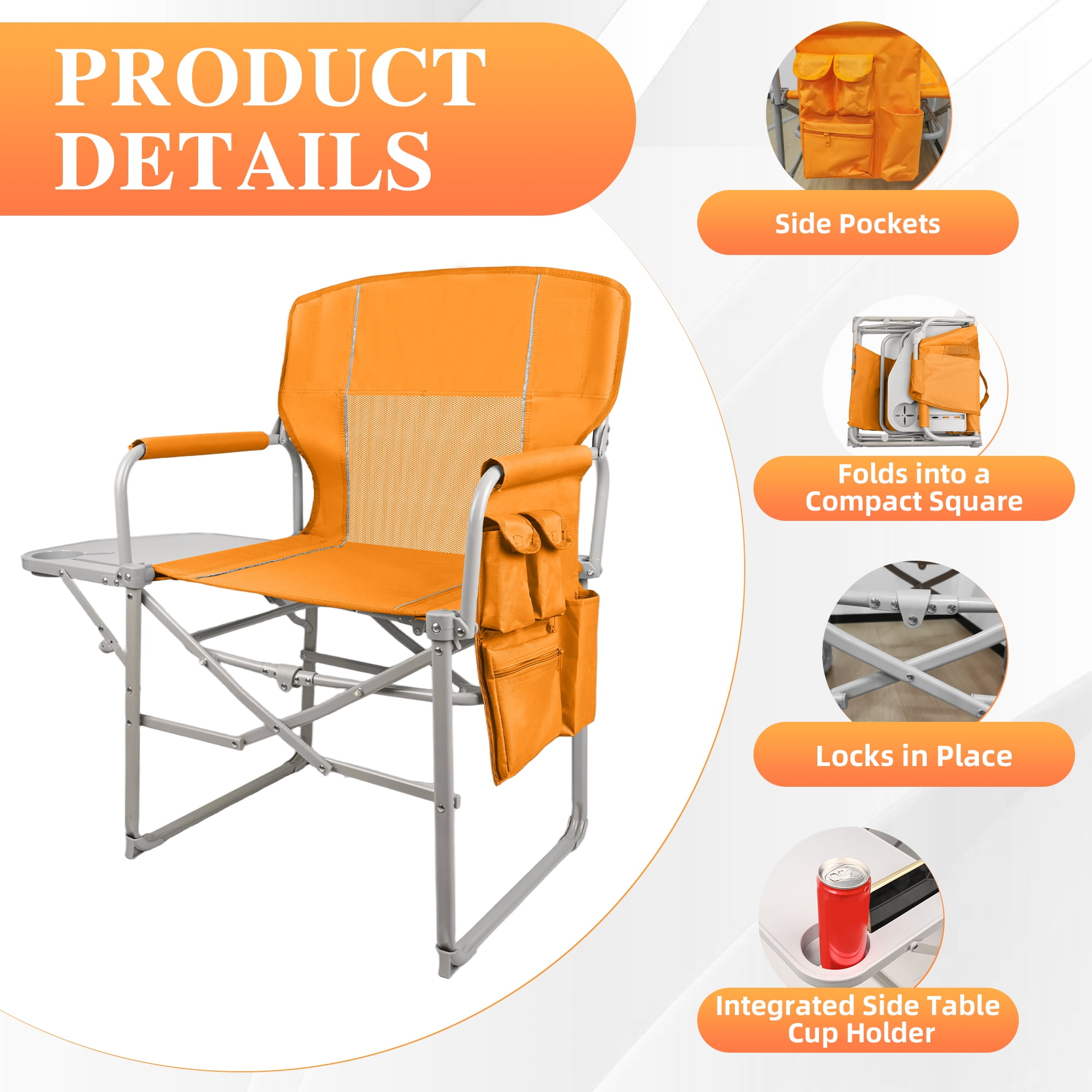 LIFERECORD Portable Camping Chair with Cup Holder & Side Pocket, Lightweight Folding Outdoor Chair for Beach, Fishing, Picnic, Heavy Duty 225LBS Capacity, Orange