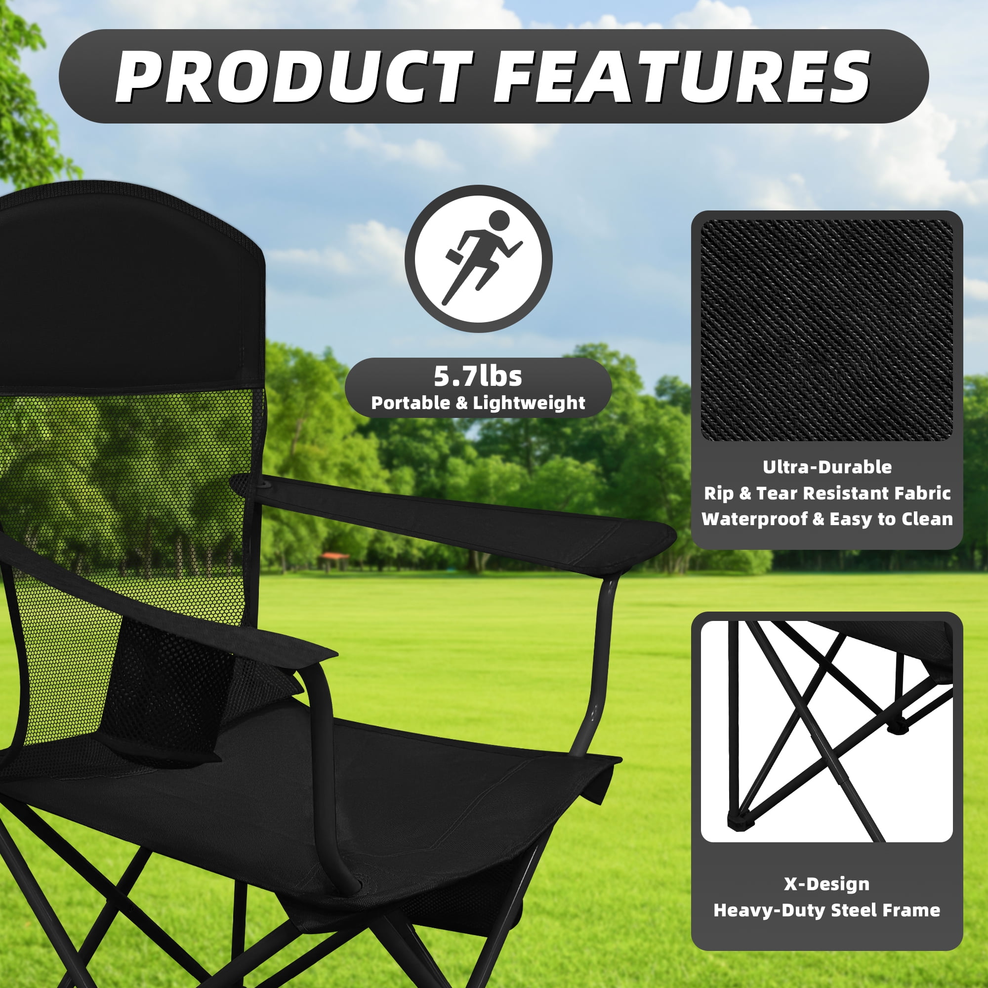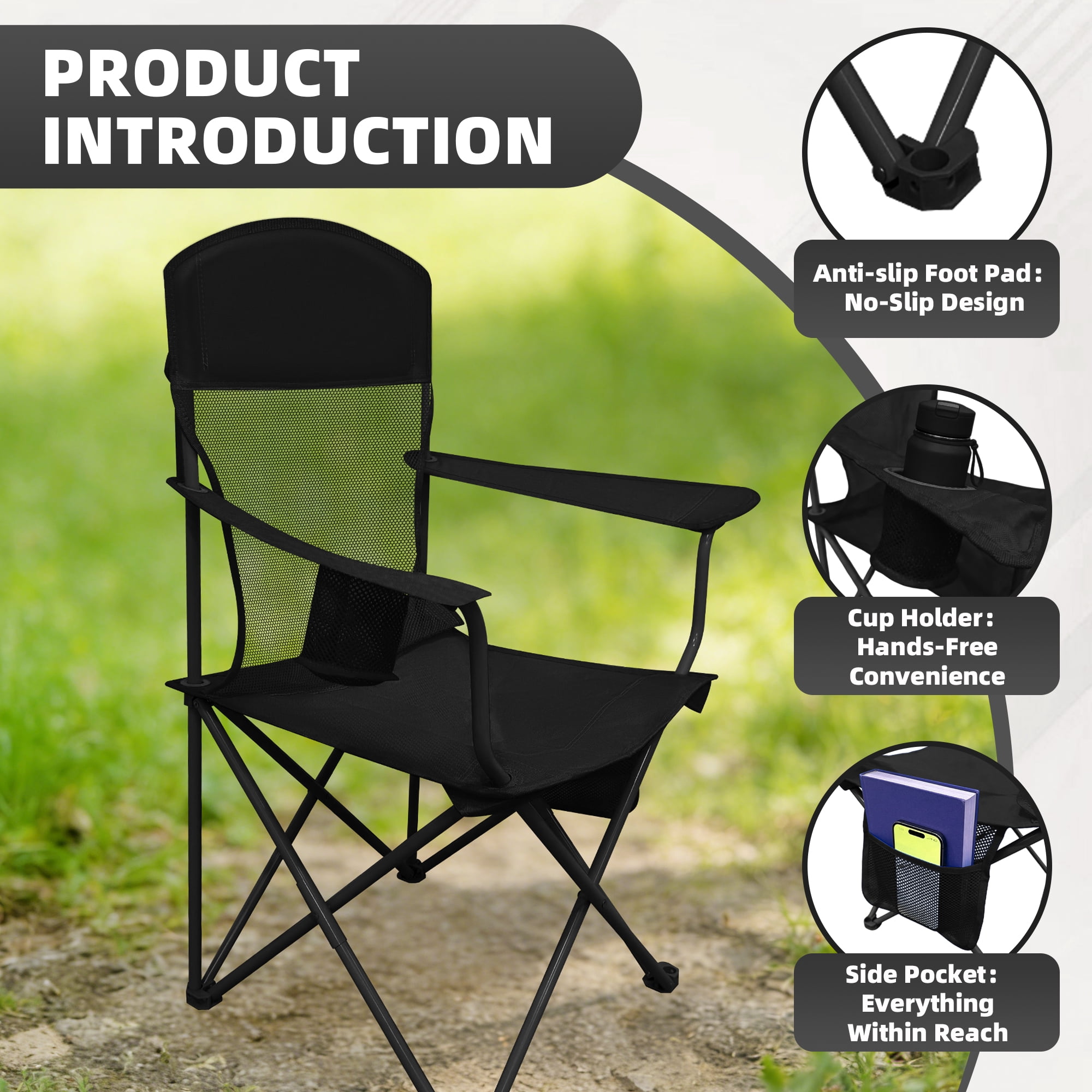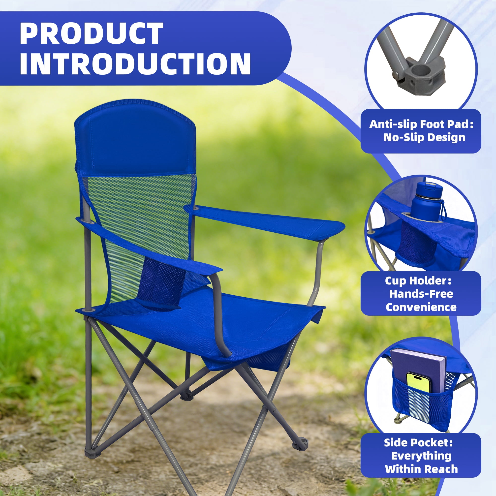- Comfort & Stability for All-Day Use:The breathable mesh backrest keeps you cool on hot days, while the anti-slip foot pads prevent wobbling on grass, sand, or dirt. Whether you’re sitting for hours at a campsite or a neighborhood party, this chair keeps you comfortable and secure.