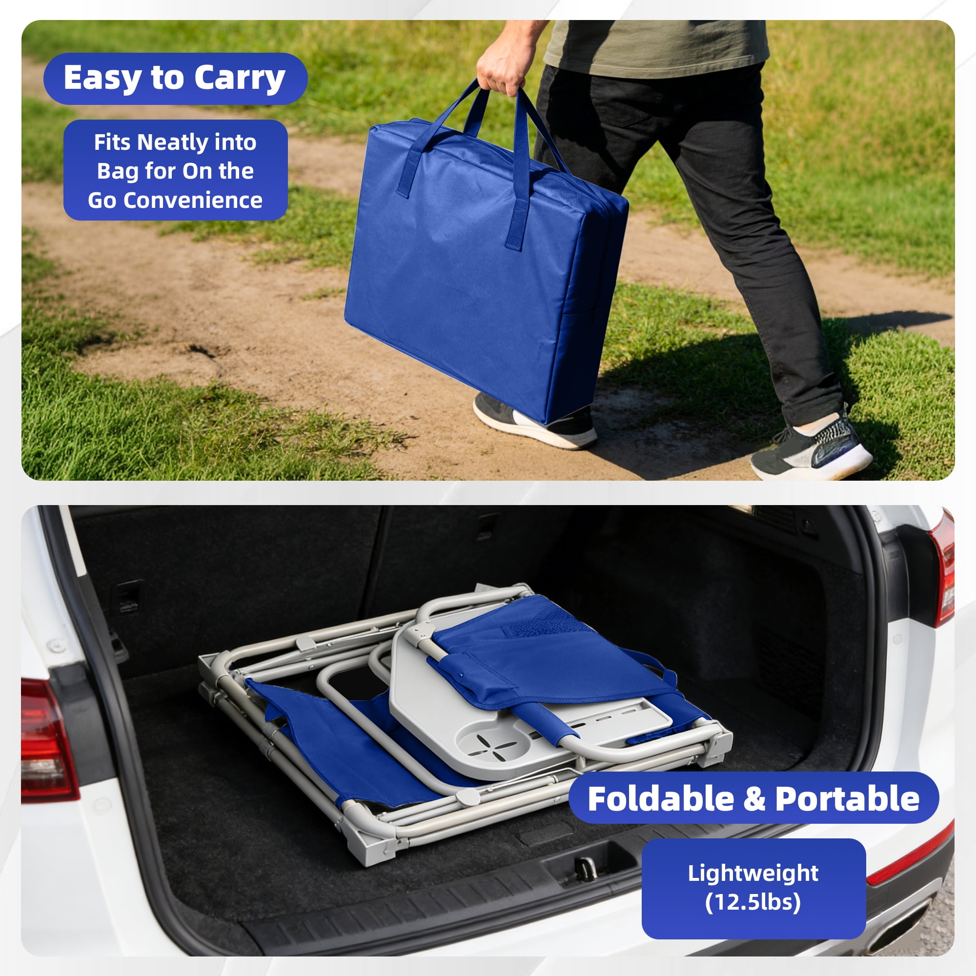 - Convenient Accessories for Hands-Free Relaxation:Stay organized with a built-in cup holder (keep drinks within reach!) and a side mesh pocket (store phones, snacks, or sunscreen). No more fumbling for essentials while enjoying your picnic, fishing trip, or kids’ sports games.