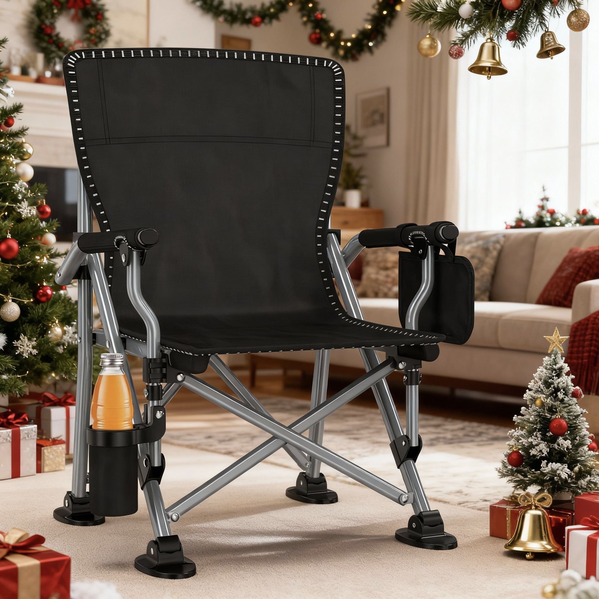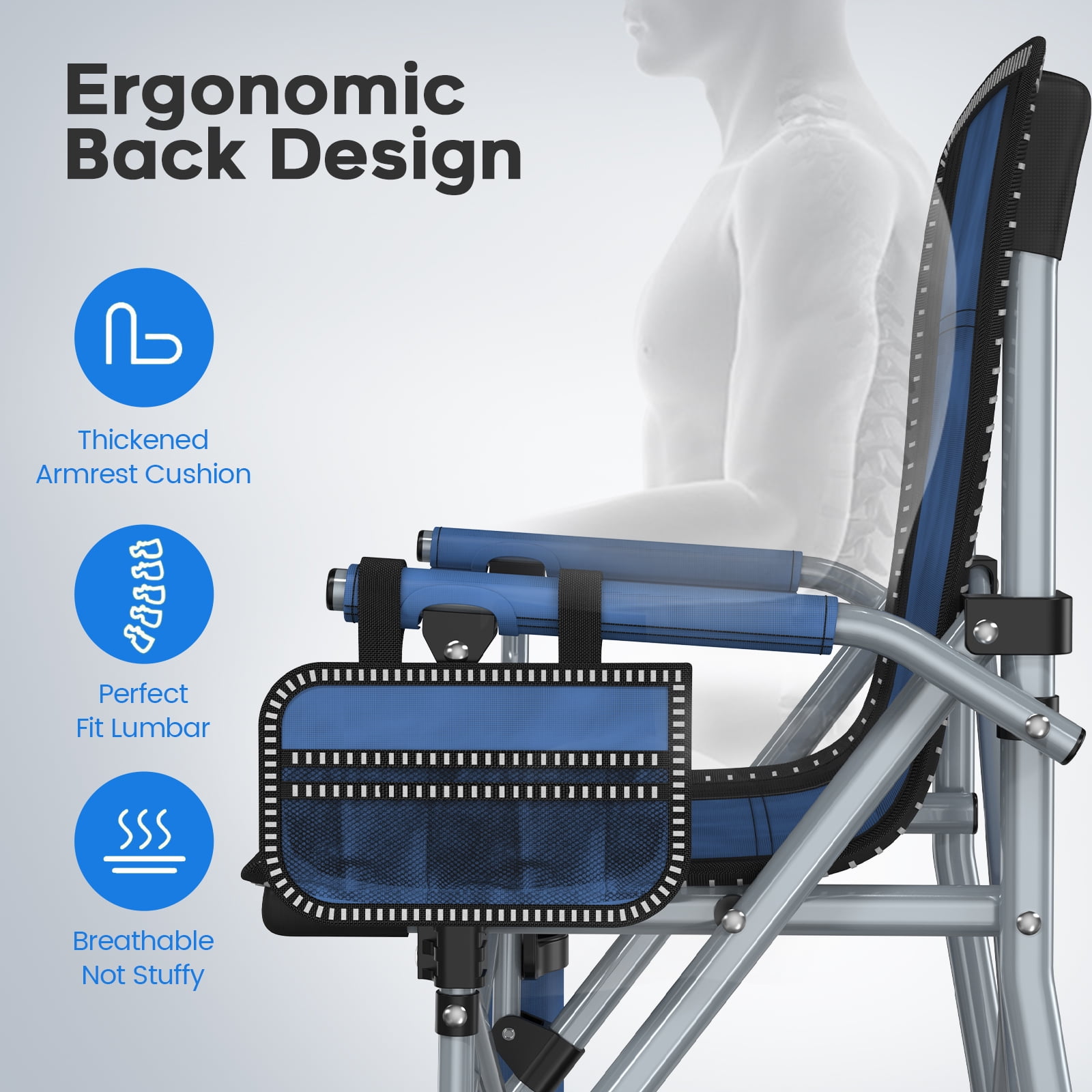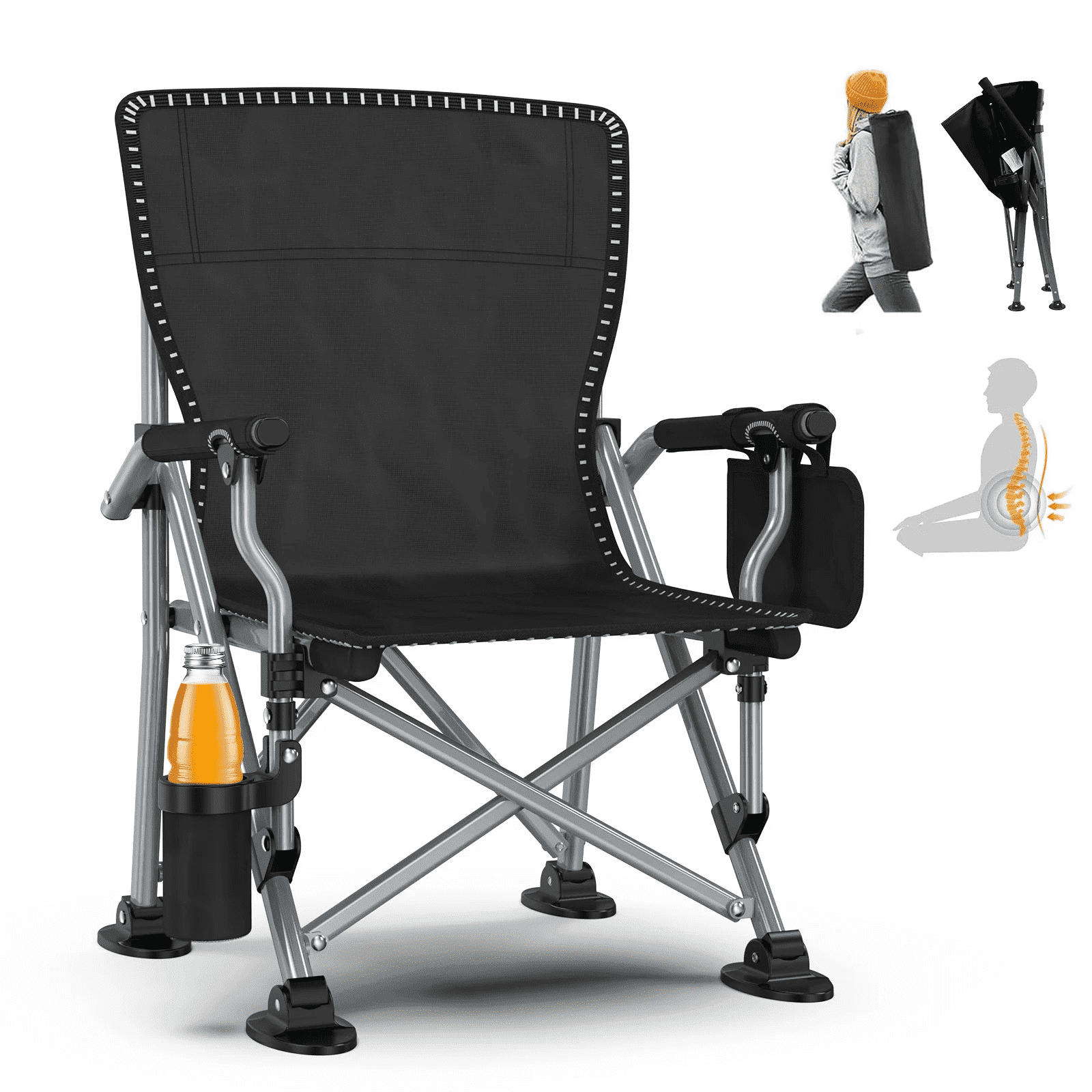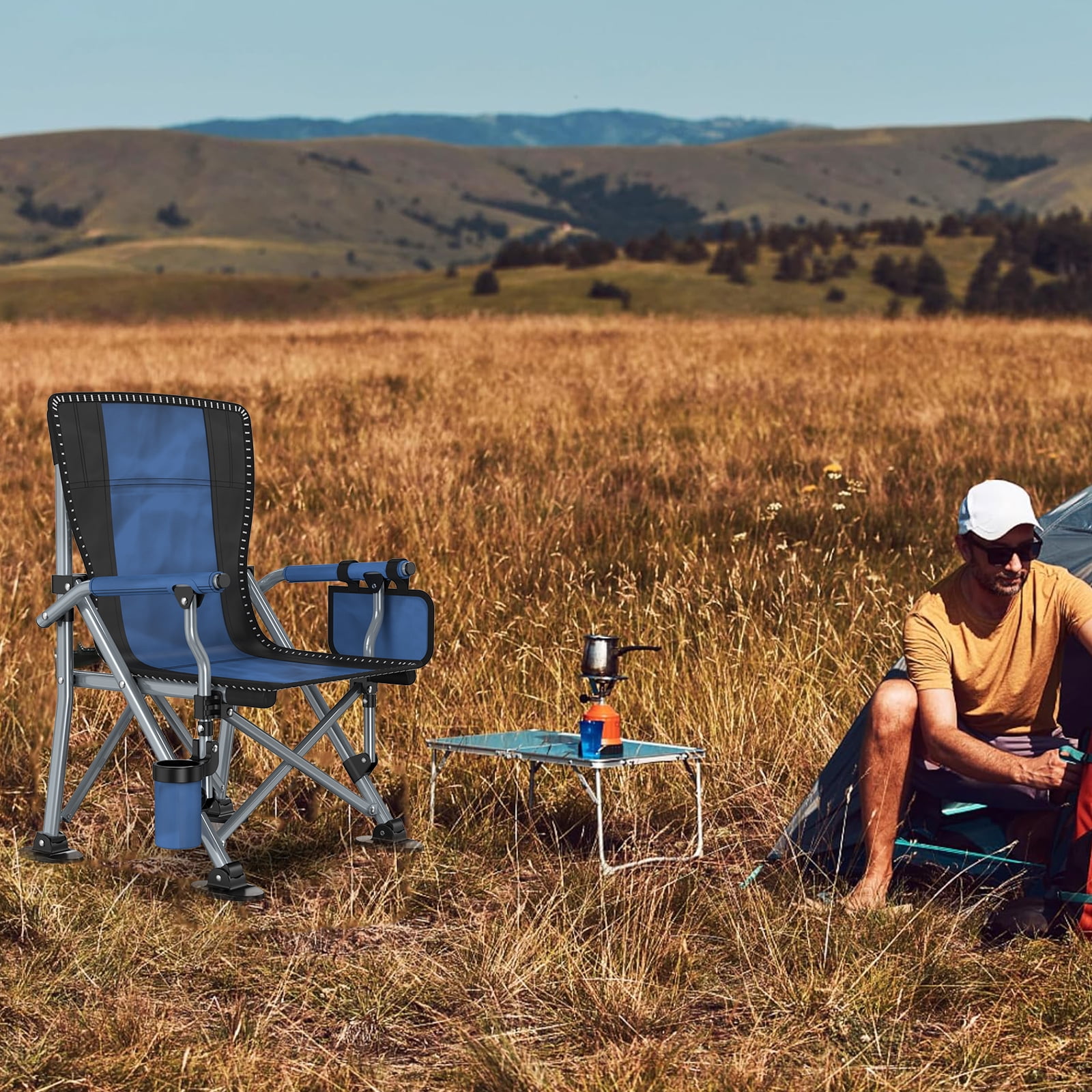 【Multifunctional Outdoor Chair】The Portable fishing camping chair comes with cup holders and multiple storage spaces. Side pockets for cell phones and other small items, cup holders for glasses/drinks to prevent spills, allowing you to enjoy leisure time with family and friends!