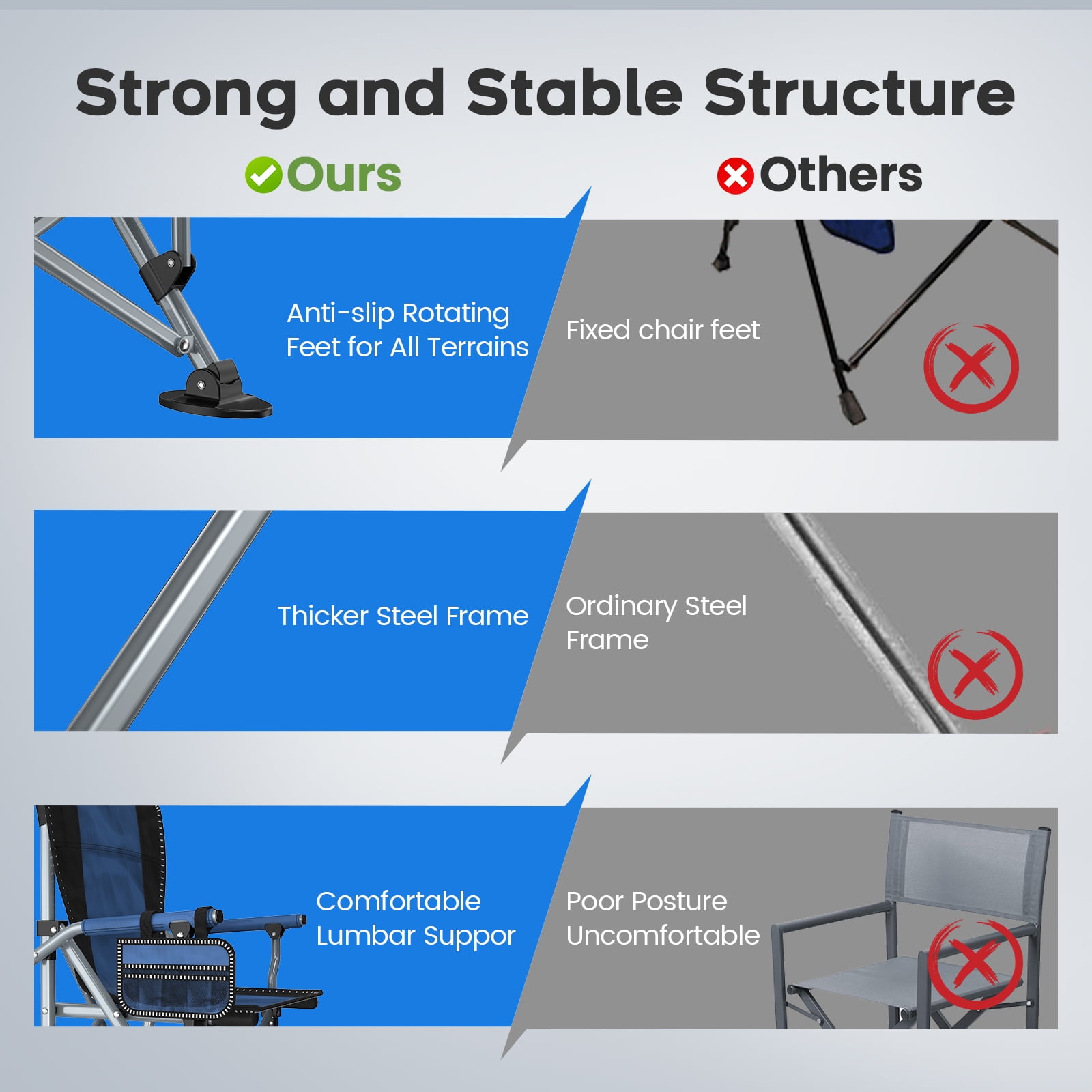 Stable Foundation: Equipped with flexible swivel feet to ensure excellent stability and balance on uneven ground.