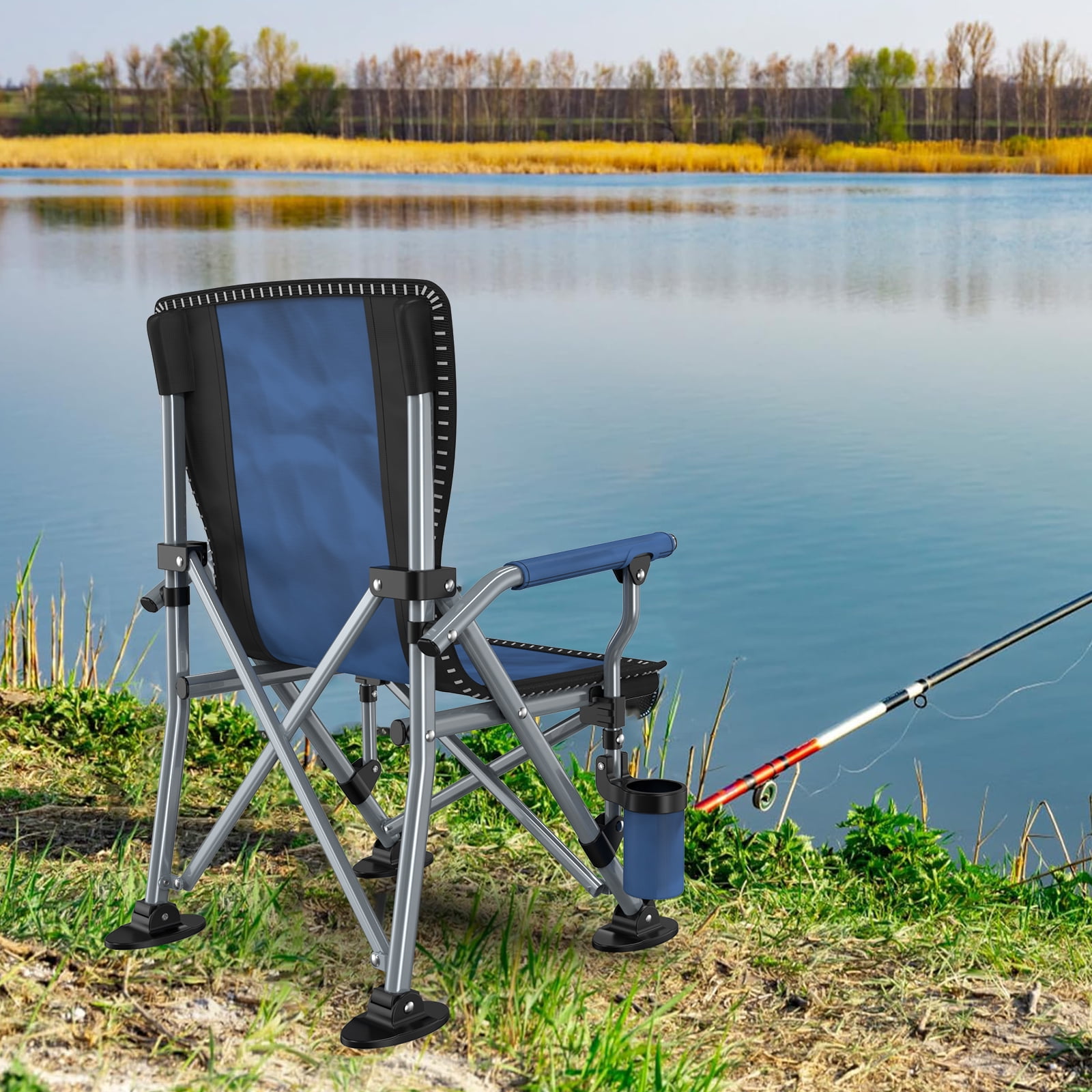 The fishing chiar both functional and durable, with a storage bag and cup holder perfect for a variety of outdoor activities such as fishing, picnics, sporting events and camping.