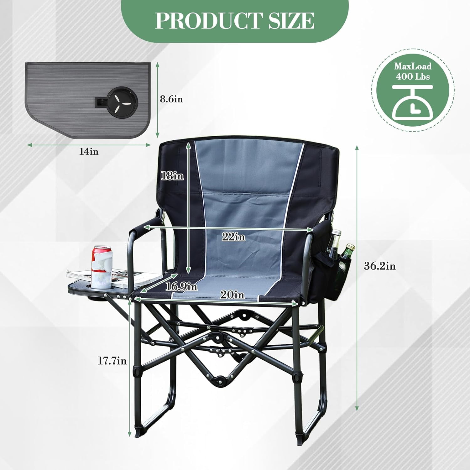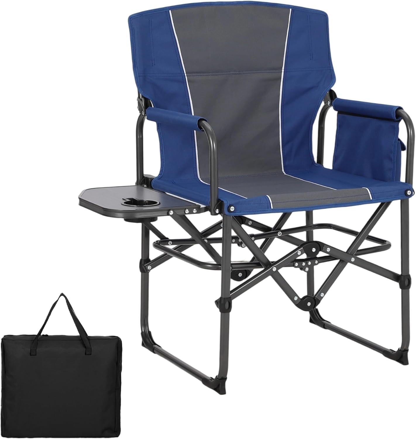 Lumiparty Director’s Chair with Side Table, Portable Folding Camping Chair for Adlut, for Beach Fishing Picnic, Blue