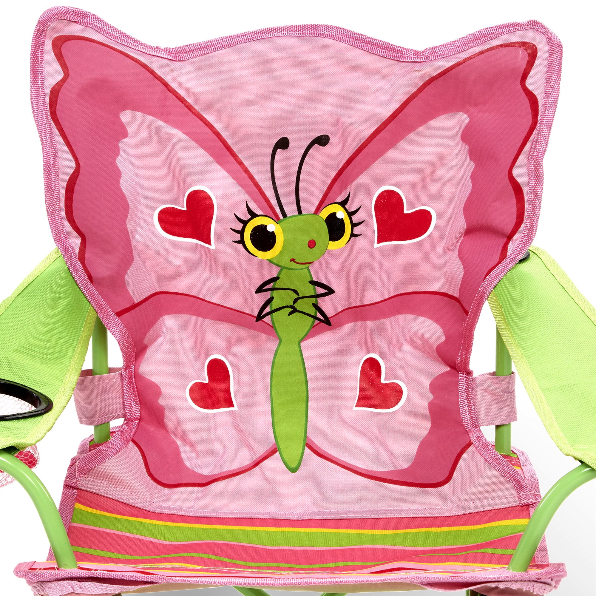 - Child-Sized Design: Child-sized folding chair with butterfly-shaped back and matching storage bag
