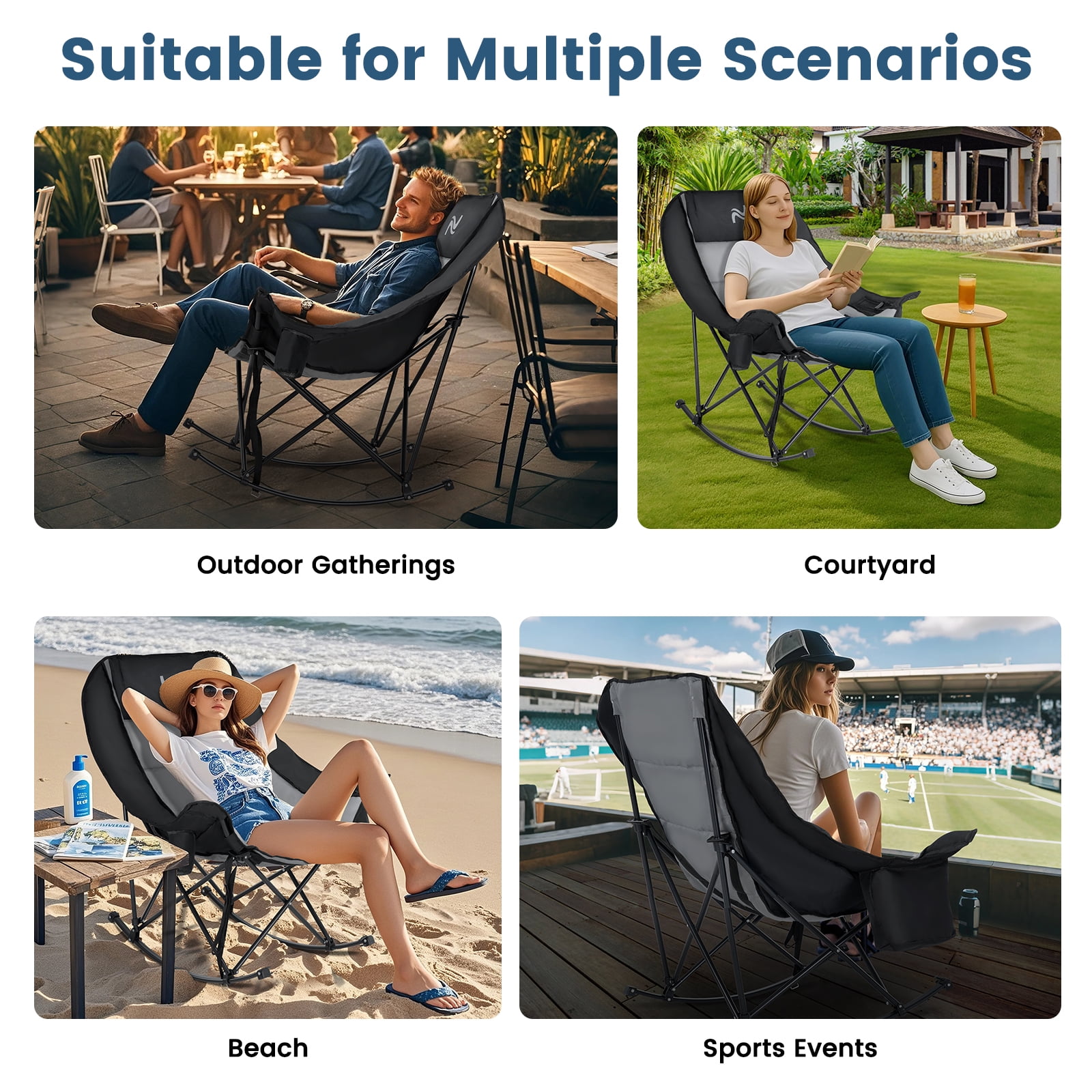 - Ergonomic Rocking: Features an ergonomic structure for safe, comfortable swaying with a thickened back and headrest, and a wider seat to accommodate larger individuals.