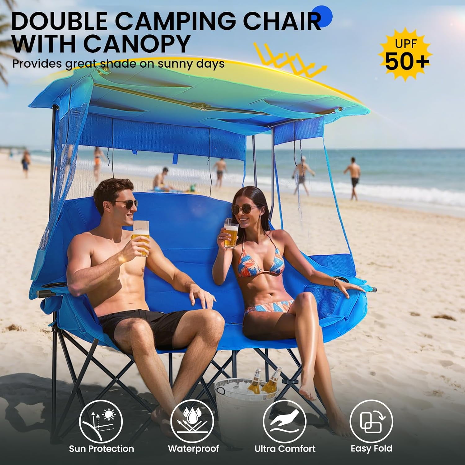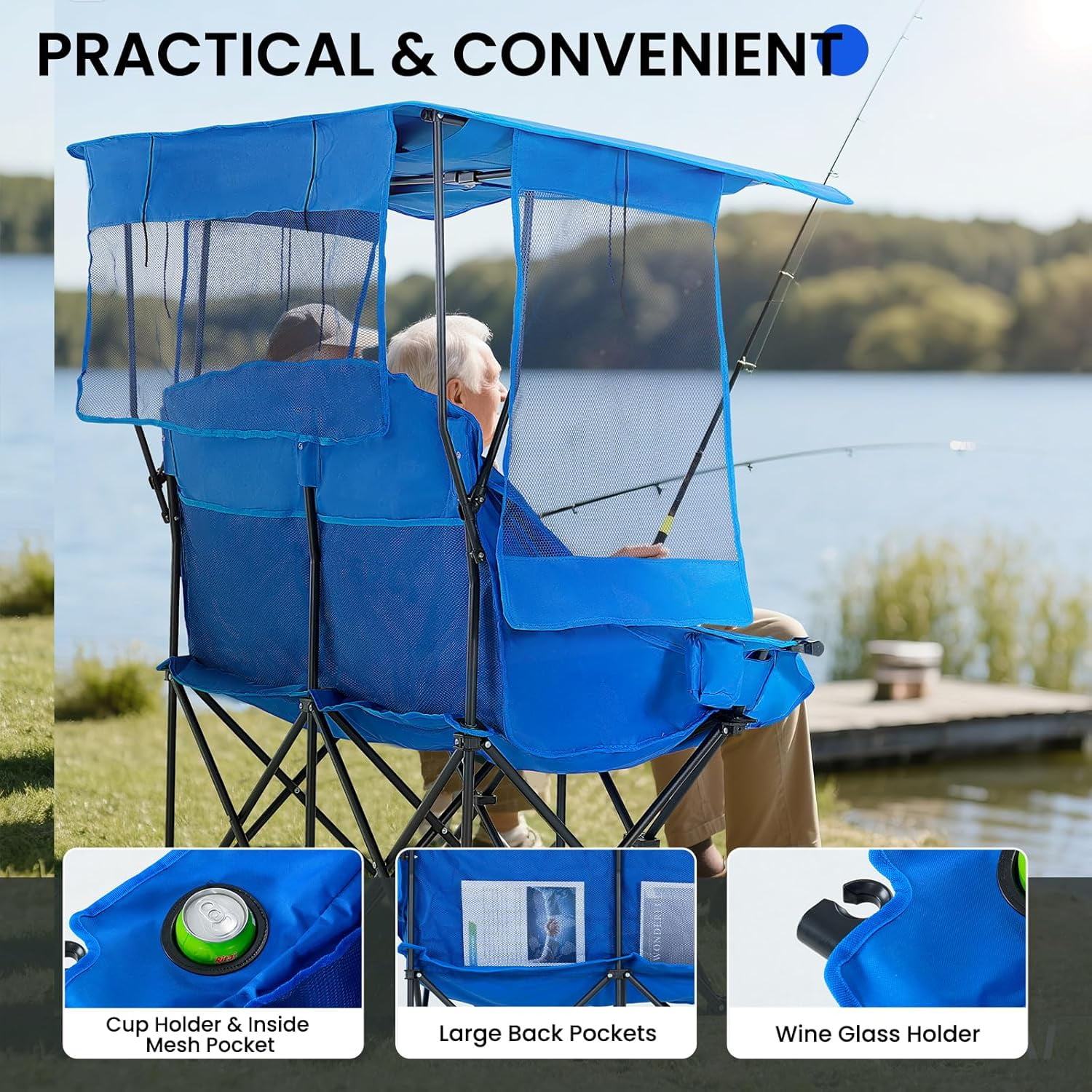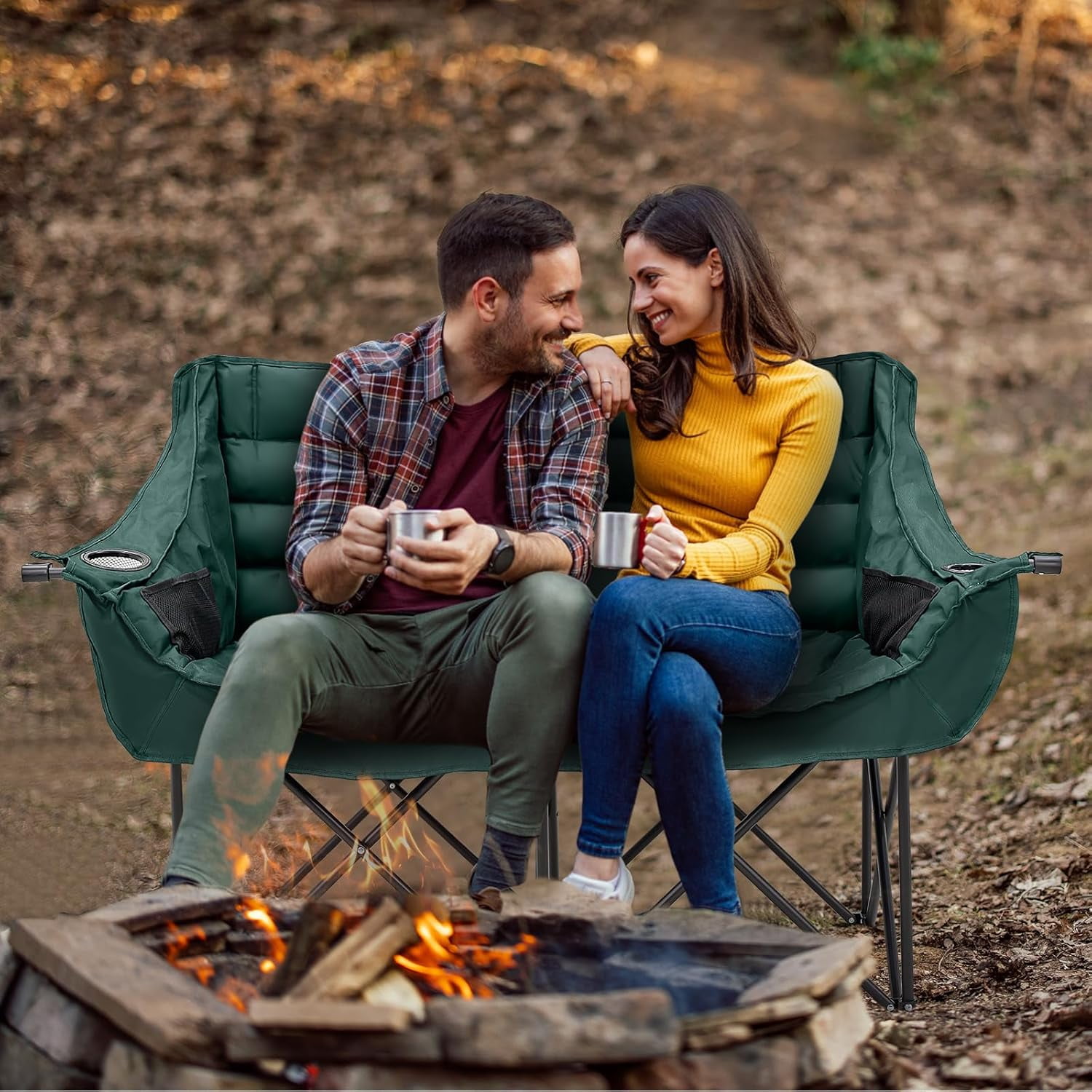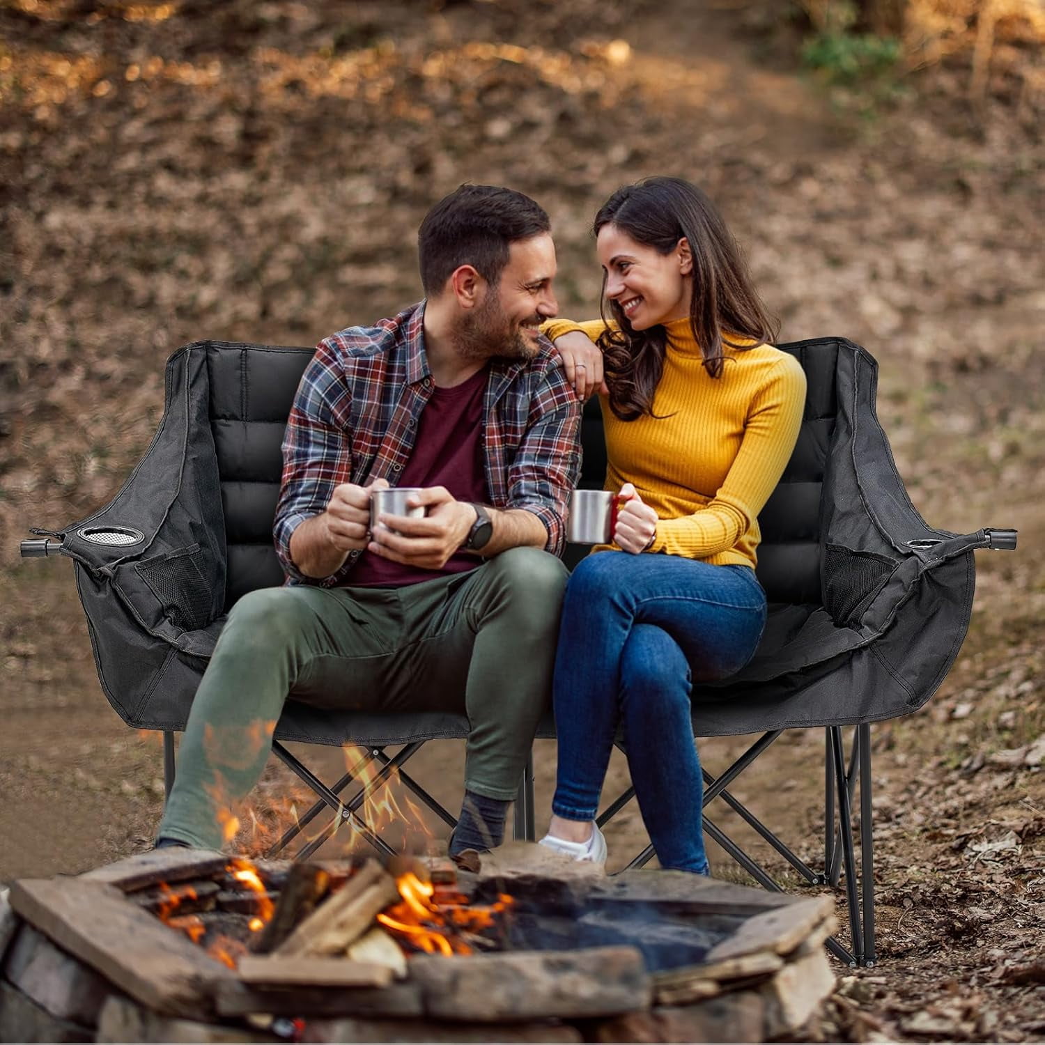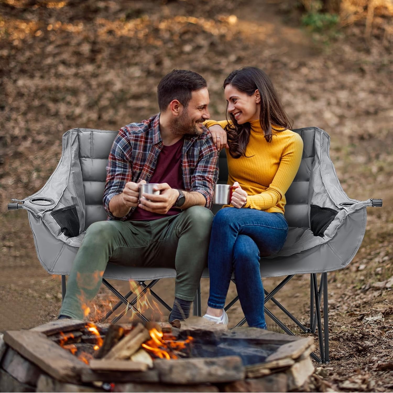 • Sturdy Construction: The Double Camping Chair features robust 600D oxford fabric, ABS tube sleeves, and reinforced stitching for enhanced durability, supporting up to 600 lbs.