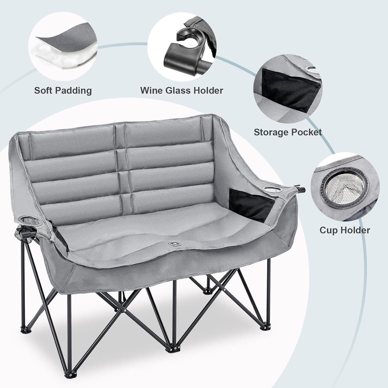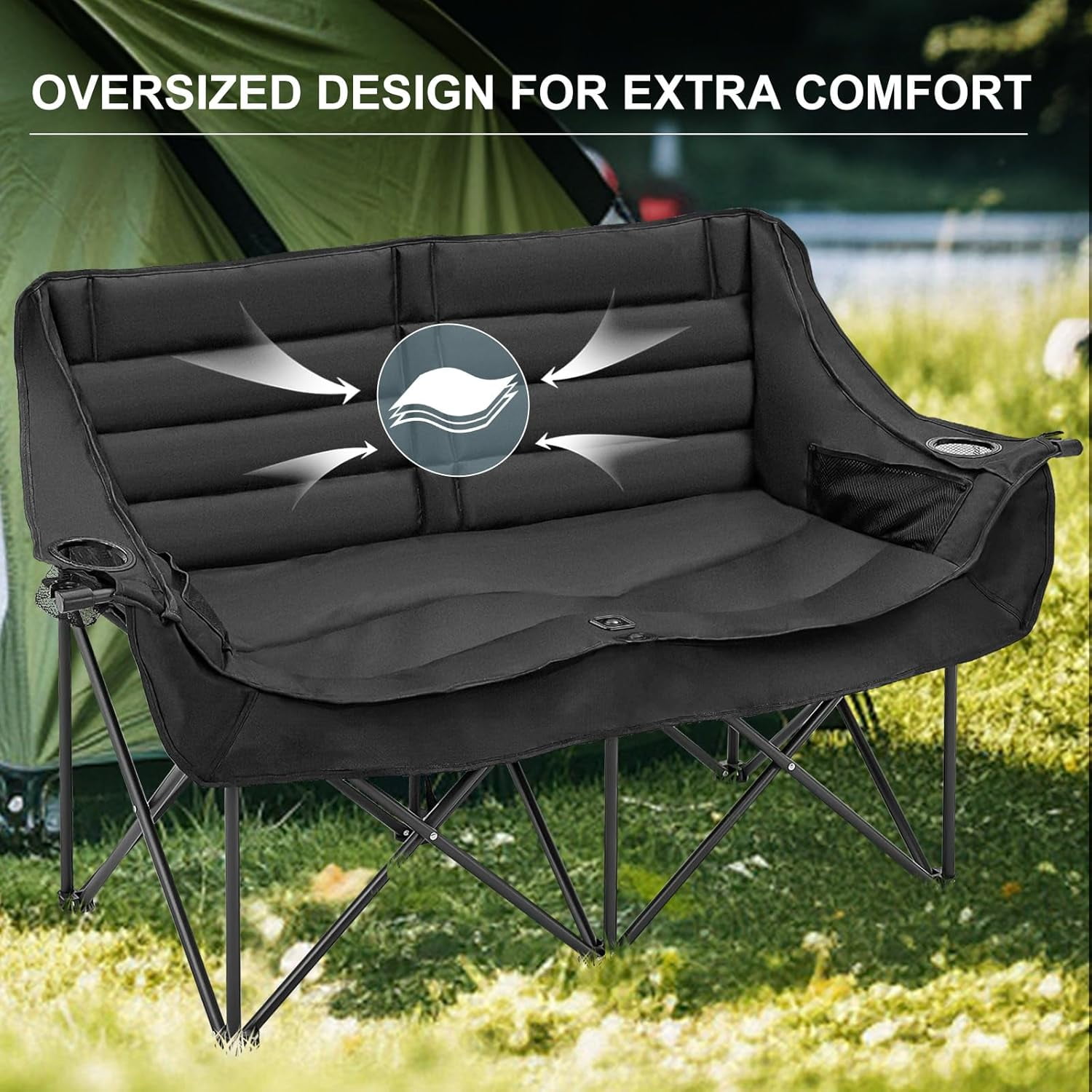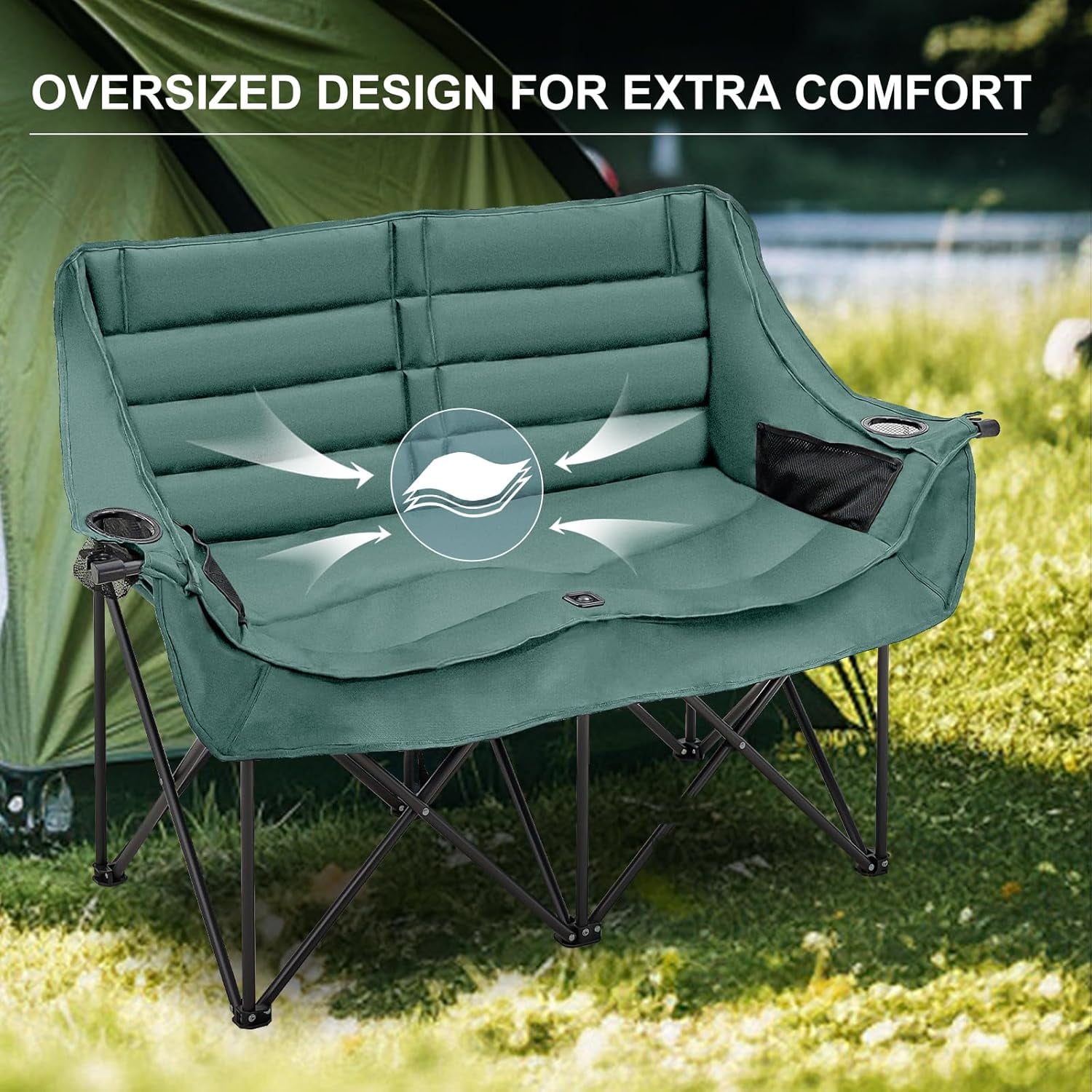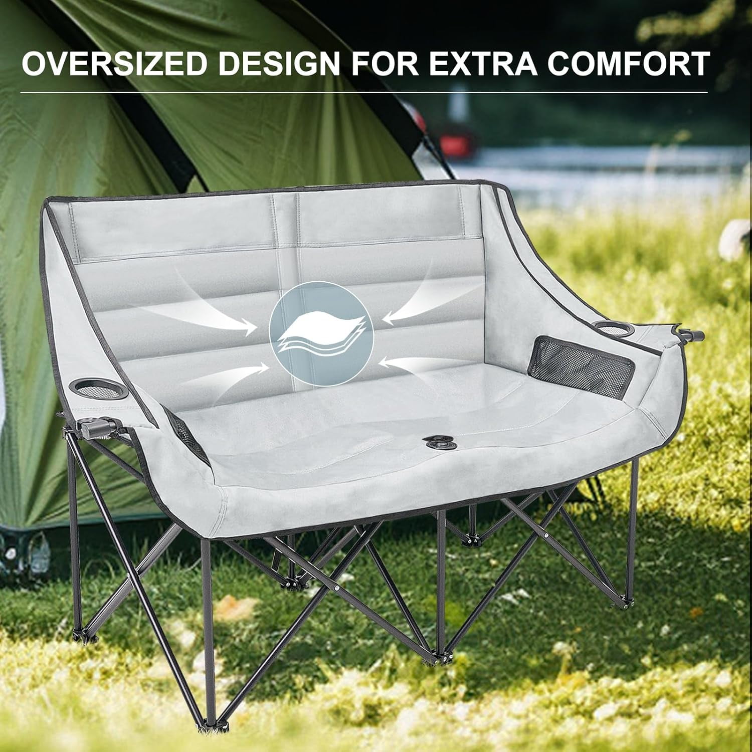 NAIZEA Double Camping Chair – Oversized Loveseat,Camping Chairs for Adults Heavy Duty,Camping Couch,Folding Chair Patio-Supports up to 600 LBS