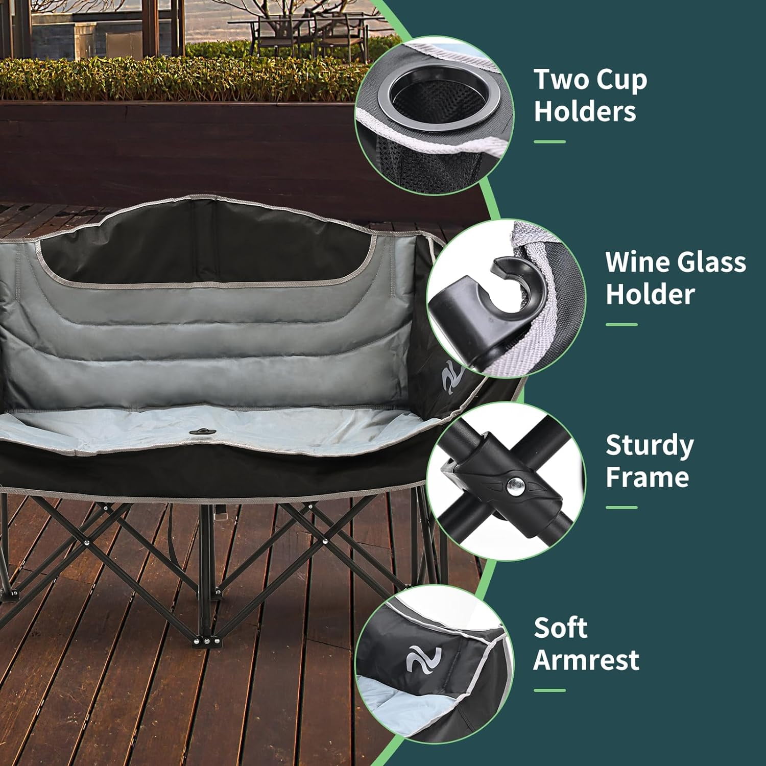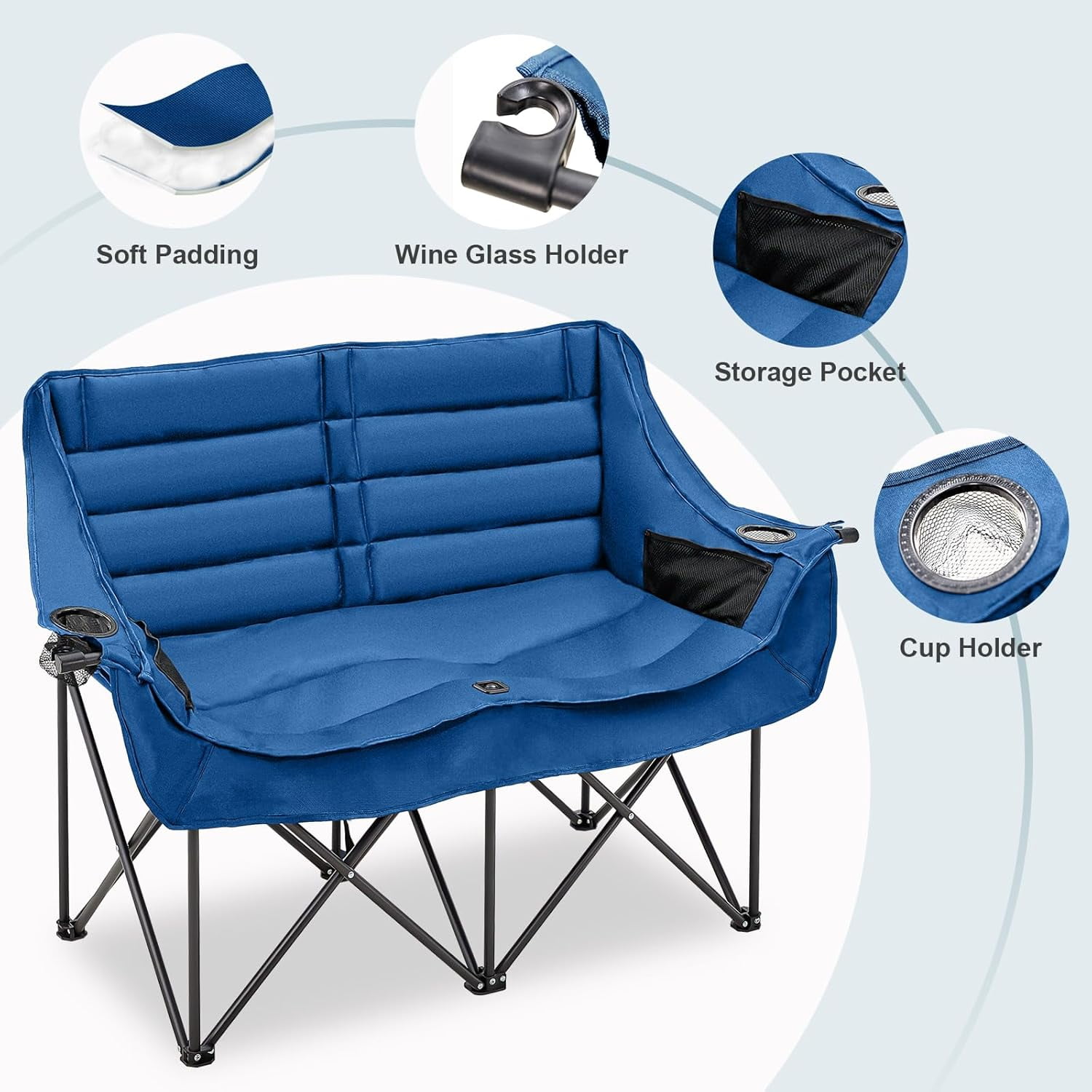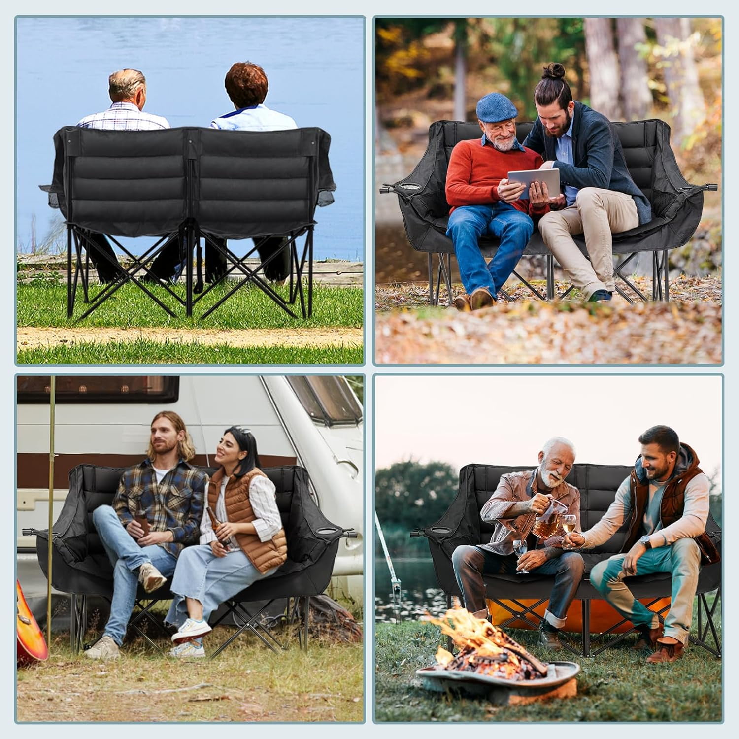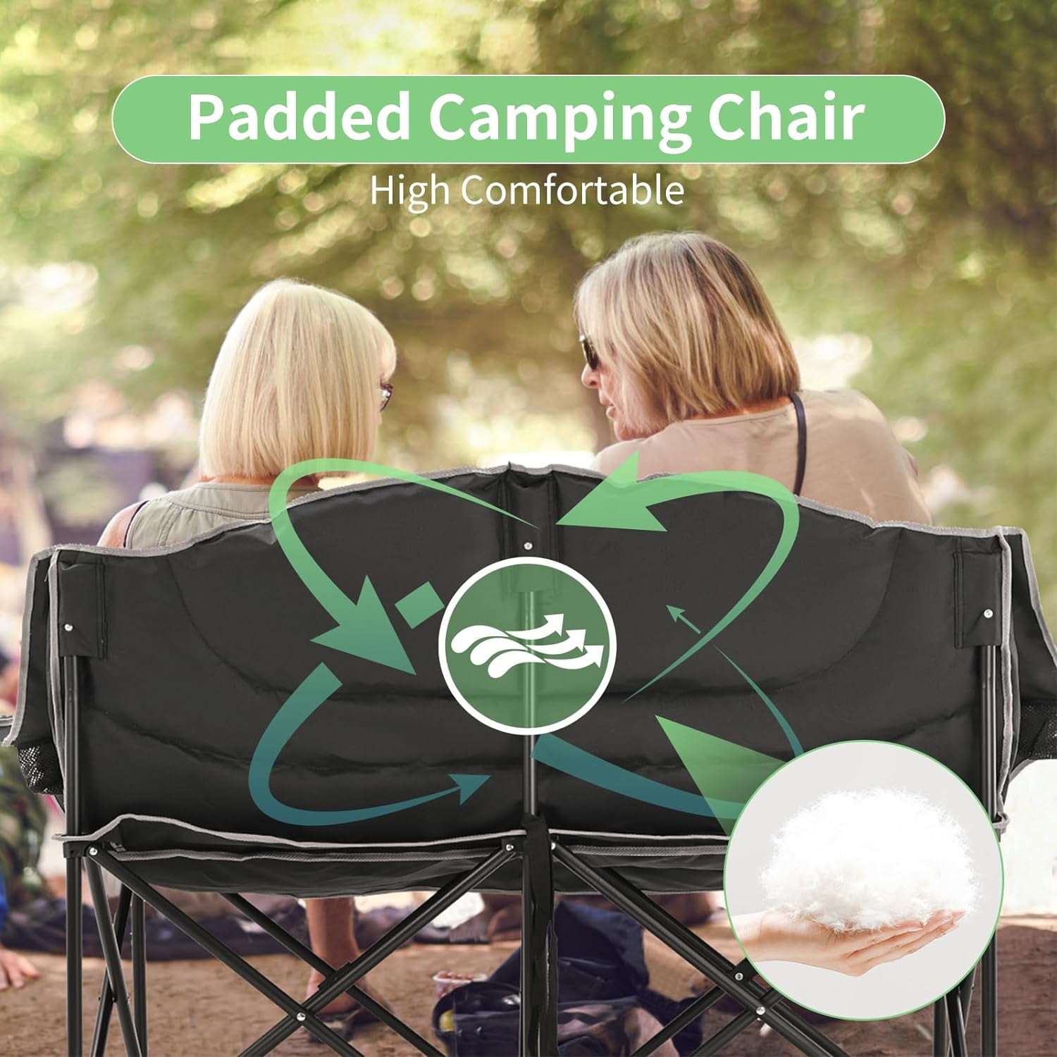 NAIZEA Double Camping Chair – Oversized Loveseat,Camping Chairs for Adults Heavy Duty,Camping Couch,Folding Chair Patio-Supports up to 600 LBS