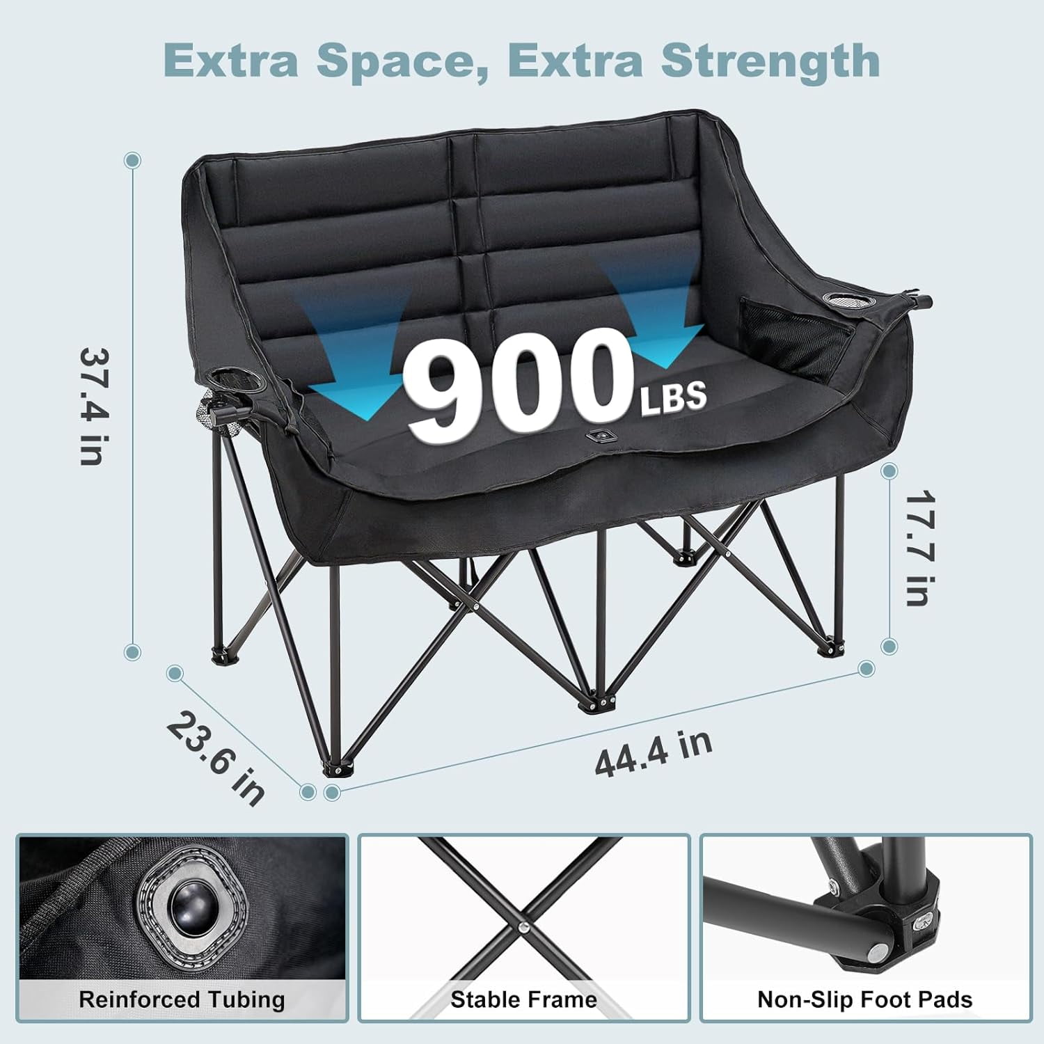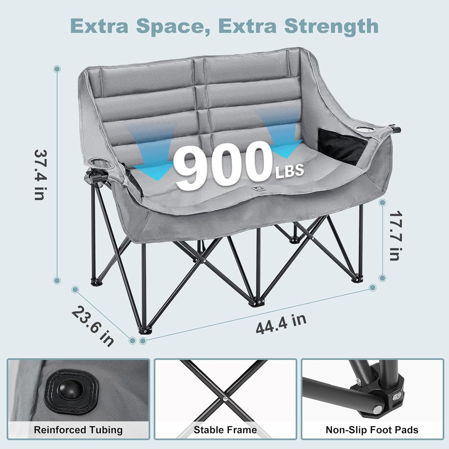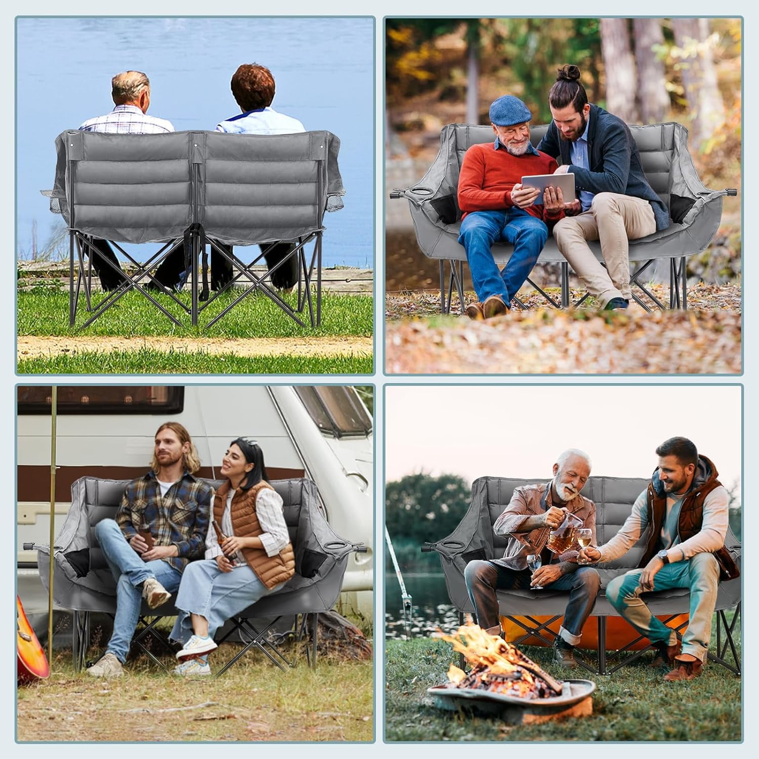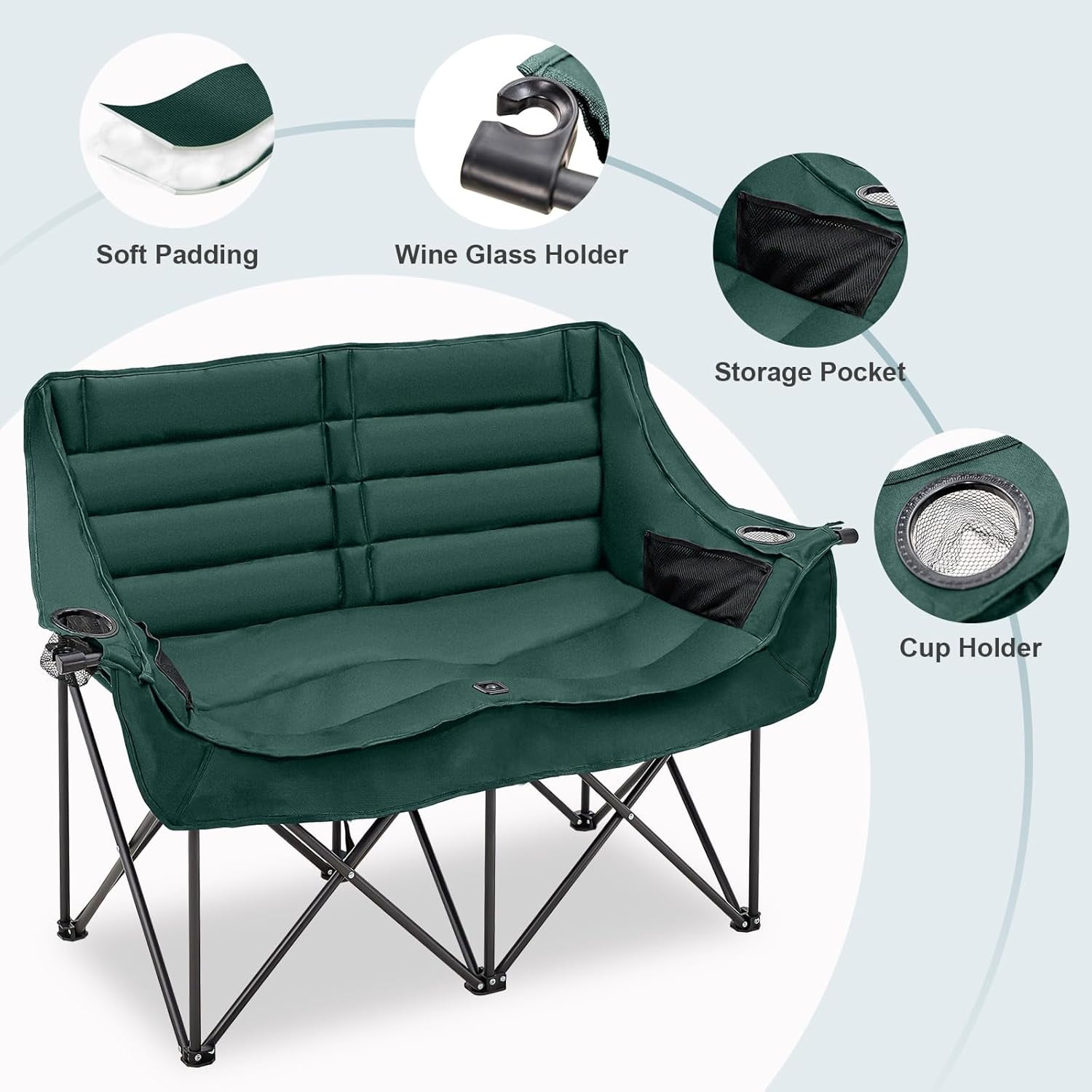 NAIZEA Double Camping Chair – Oversized Loveseat,Camping Chairs for Adults Heavy Duty,Camping Couch,Folding Chair Patio-Supports up to 600 LBS
