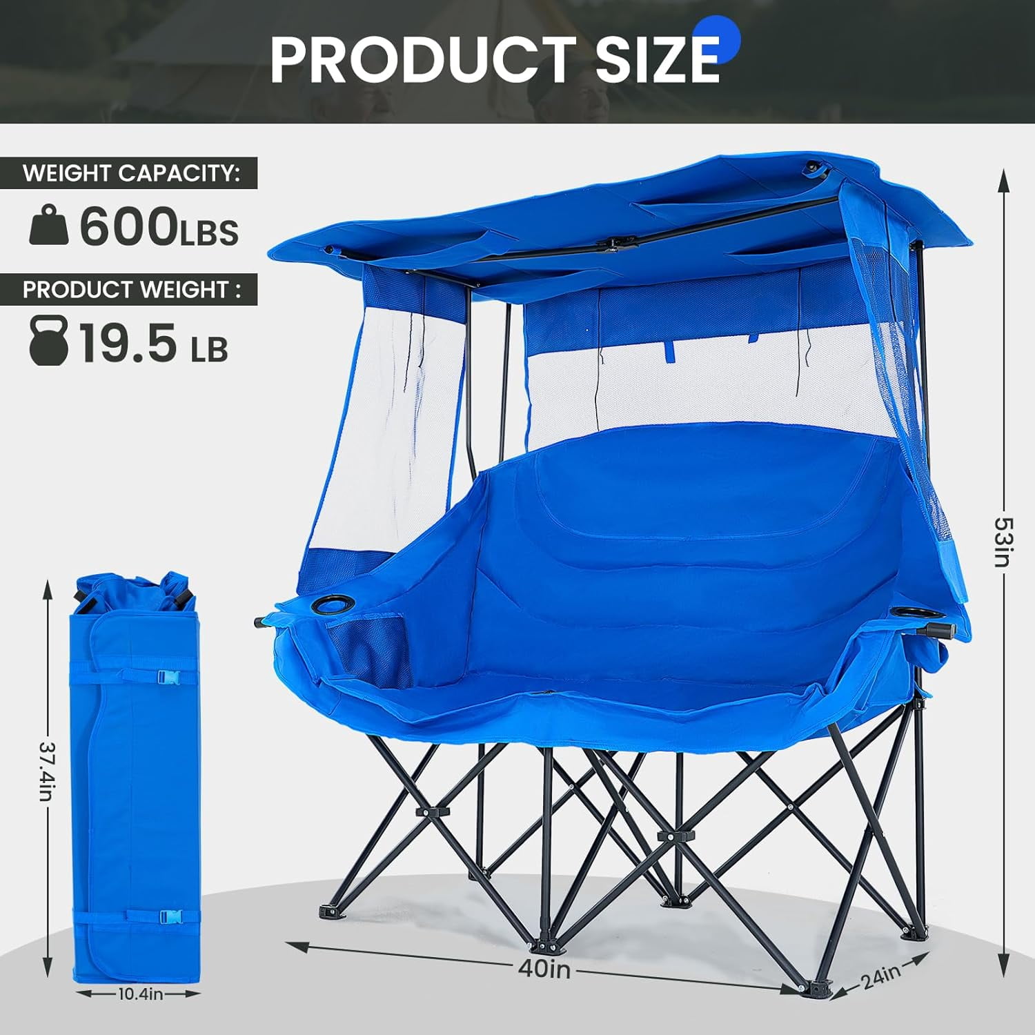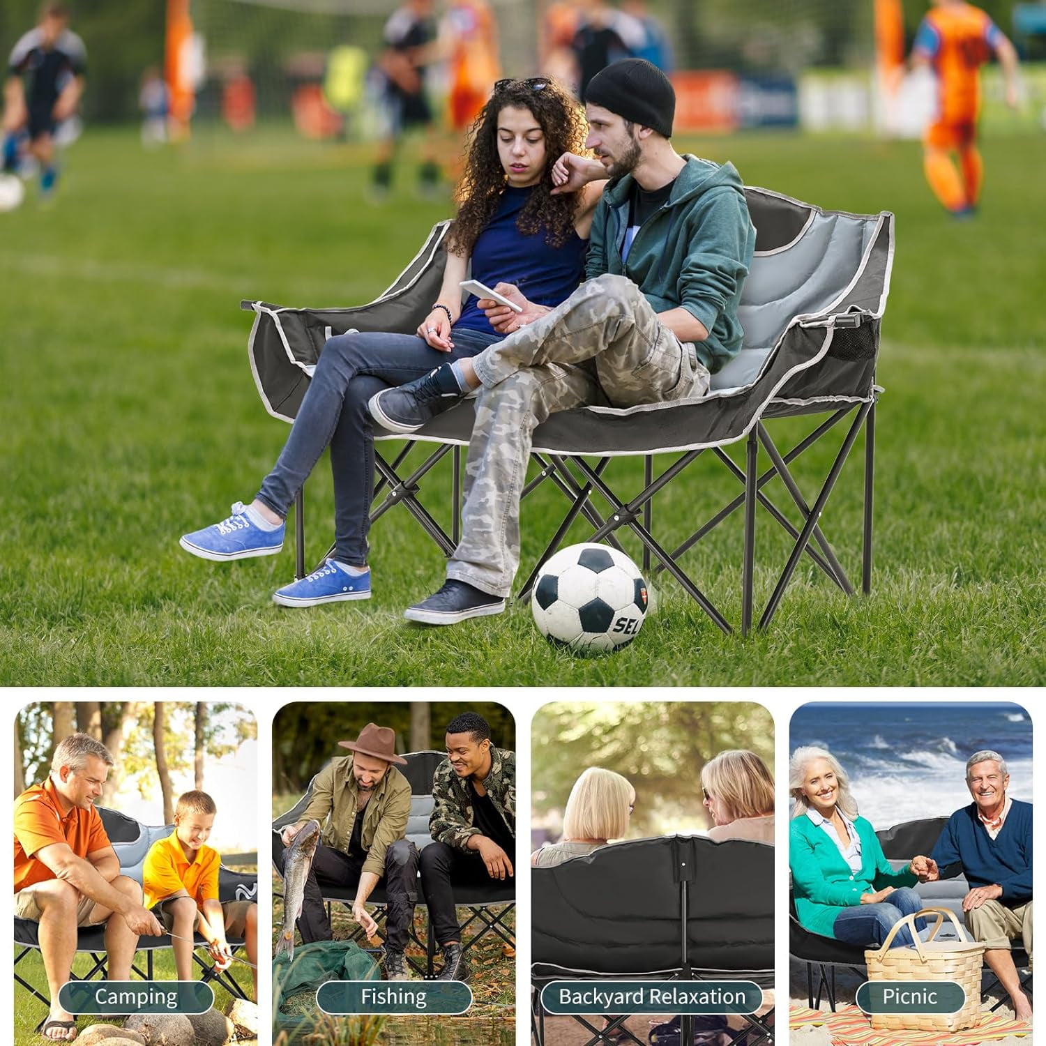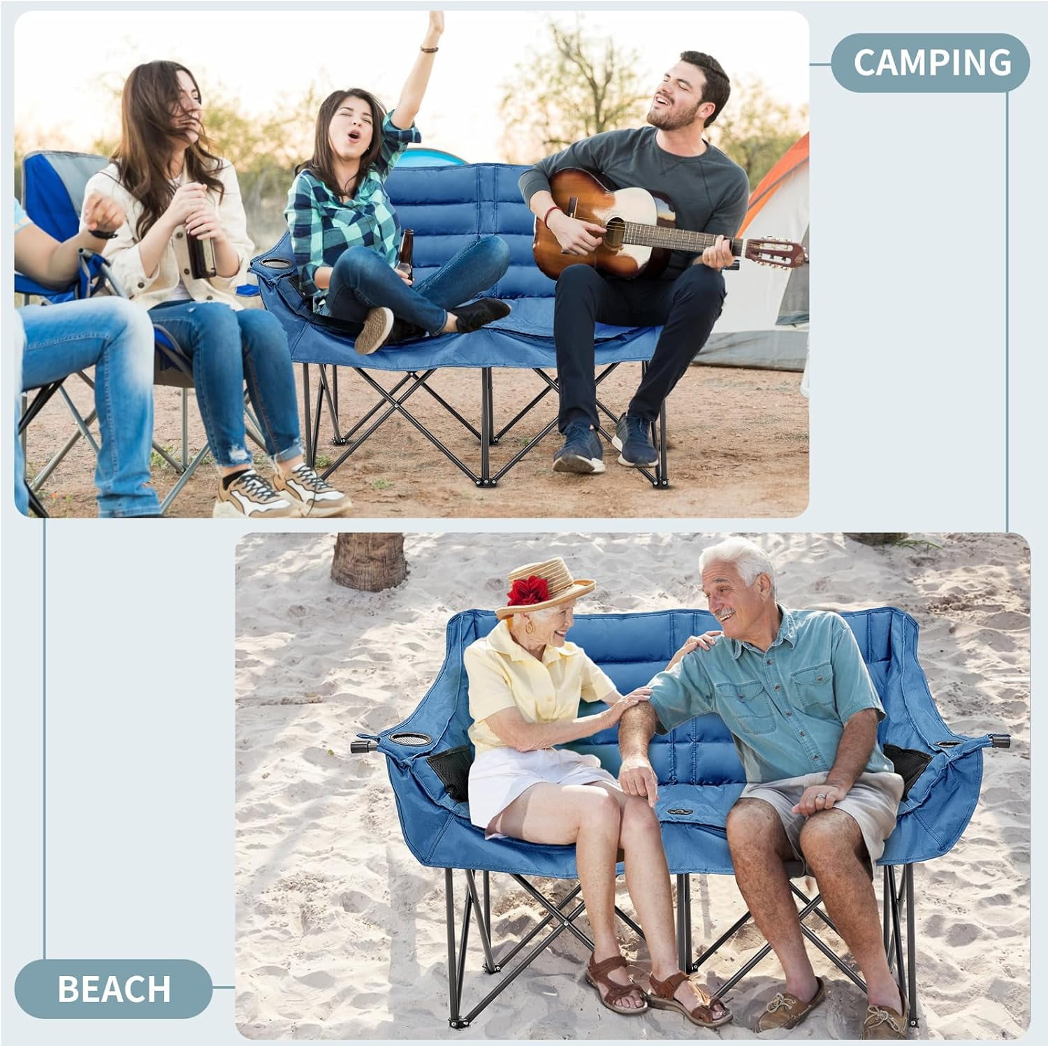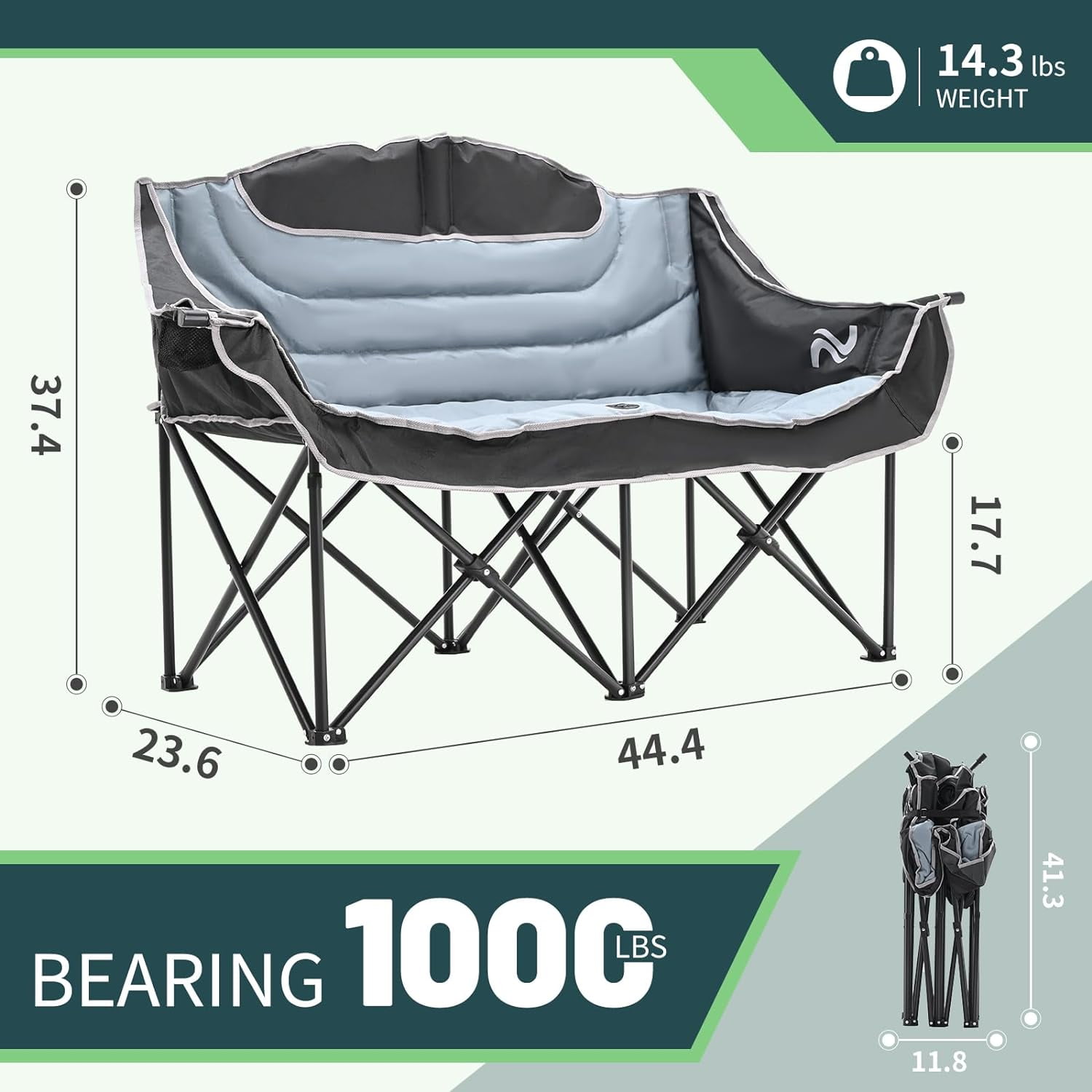 NAIZEA Double Camping Chair – Oversized Loveseat,Camping Chairs for Adults Heavy Duty,Camping Couch,Folding Chair Patio-Supports up to 600 LBS