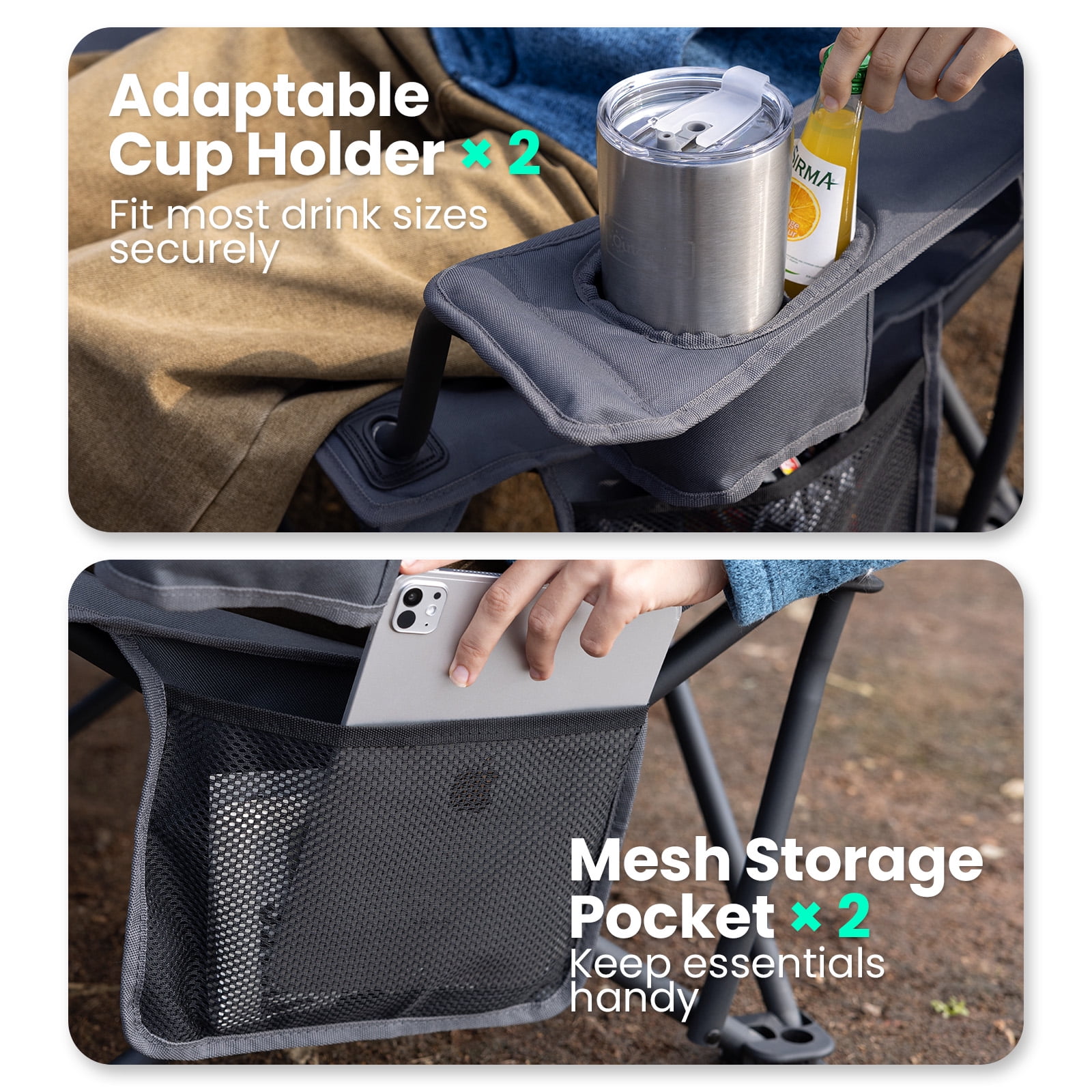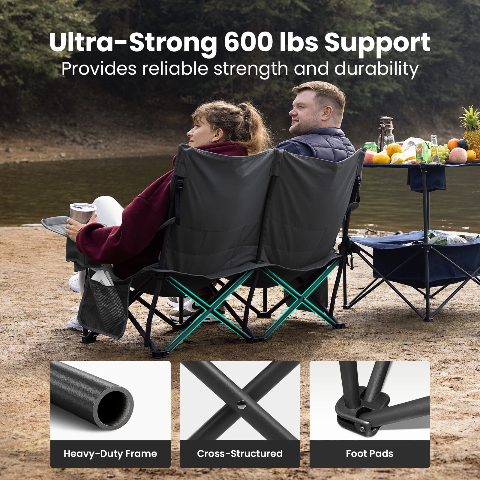 - 2-Person Double Loveseat Camping Chair for Adults: Ideal for two adults, offering ample room and a 600lbs weight capacity for a stable and comfortable outdoor experience.
