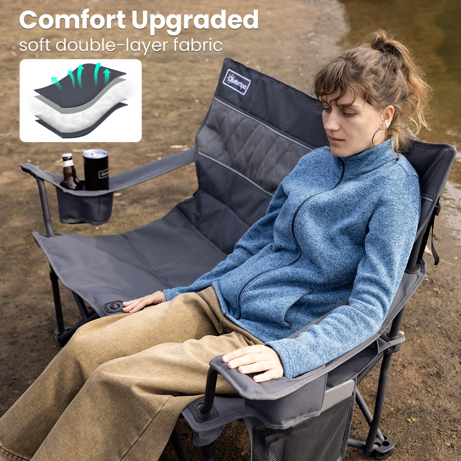 - Ultimate Comfort Camping Lounger: Features double-layer quilted padded seats and backrest, along with adjustable armrests, providing a relaxing seating experience. Its oversized design ensures there is plenty of space for two adults to sit comfortably.