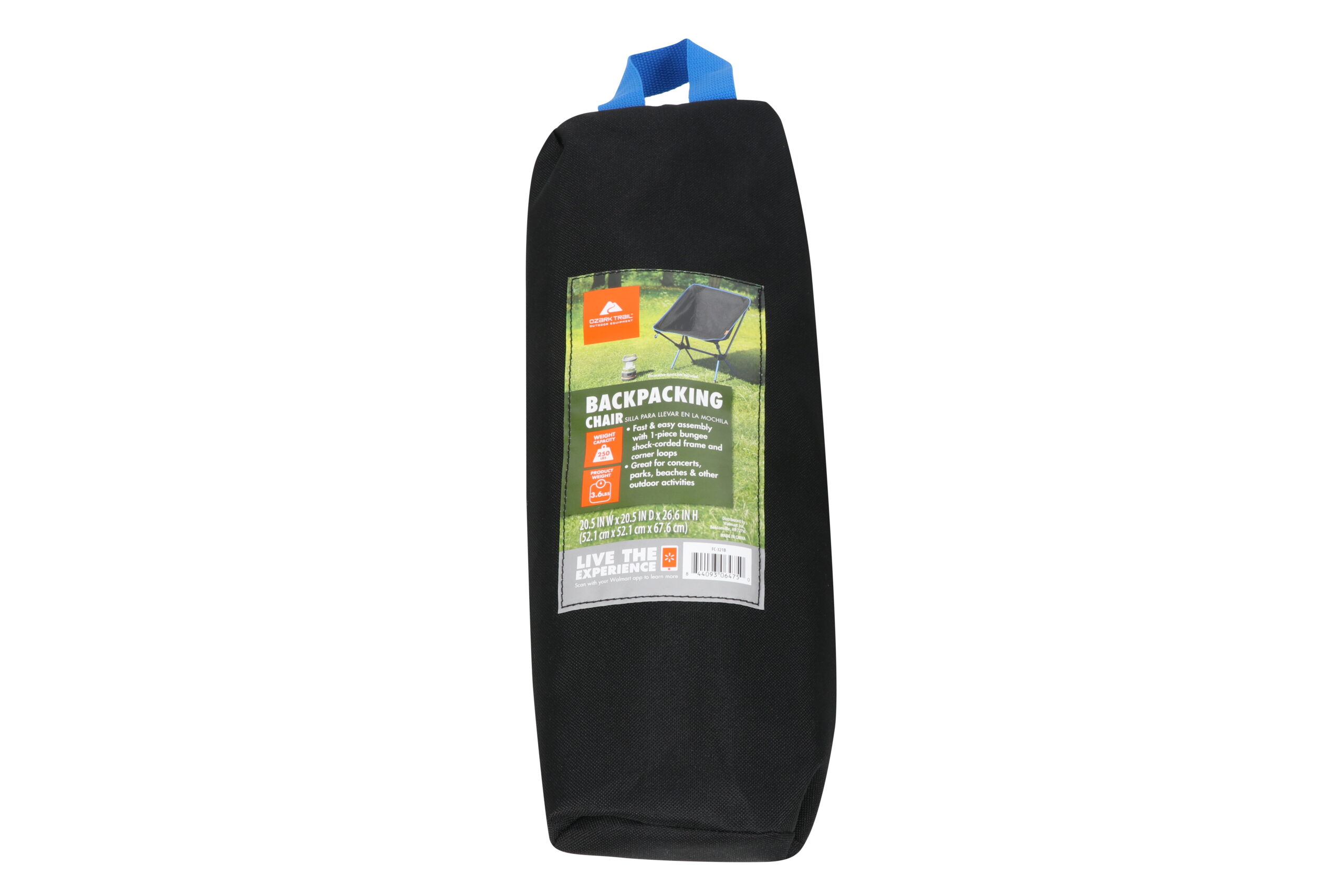 When you’re out on the trail, the Ozark Trail Compact Backpacking Chair in black can make any spot comfortable. With a blue powder-coated steel shock-corded frame, assembling and folding are simple. The backpacking chair comes with the minimized risk of lost parts. It is compact and lightweight, yet durable enough for your weekend nature hike, holding up to 250lbs and weighing in at just 2.2 lbs. This chair also comes with a carry bag for easy storage and toting. Stay comfortable while on your adventures with the Ozark Trail Compact Backpacking Chair. Adult, Black chair