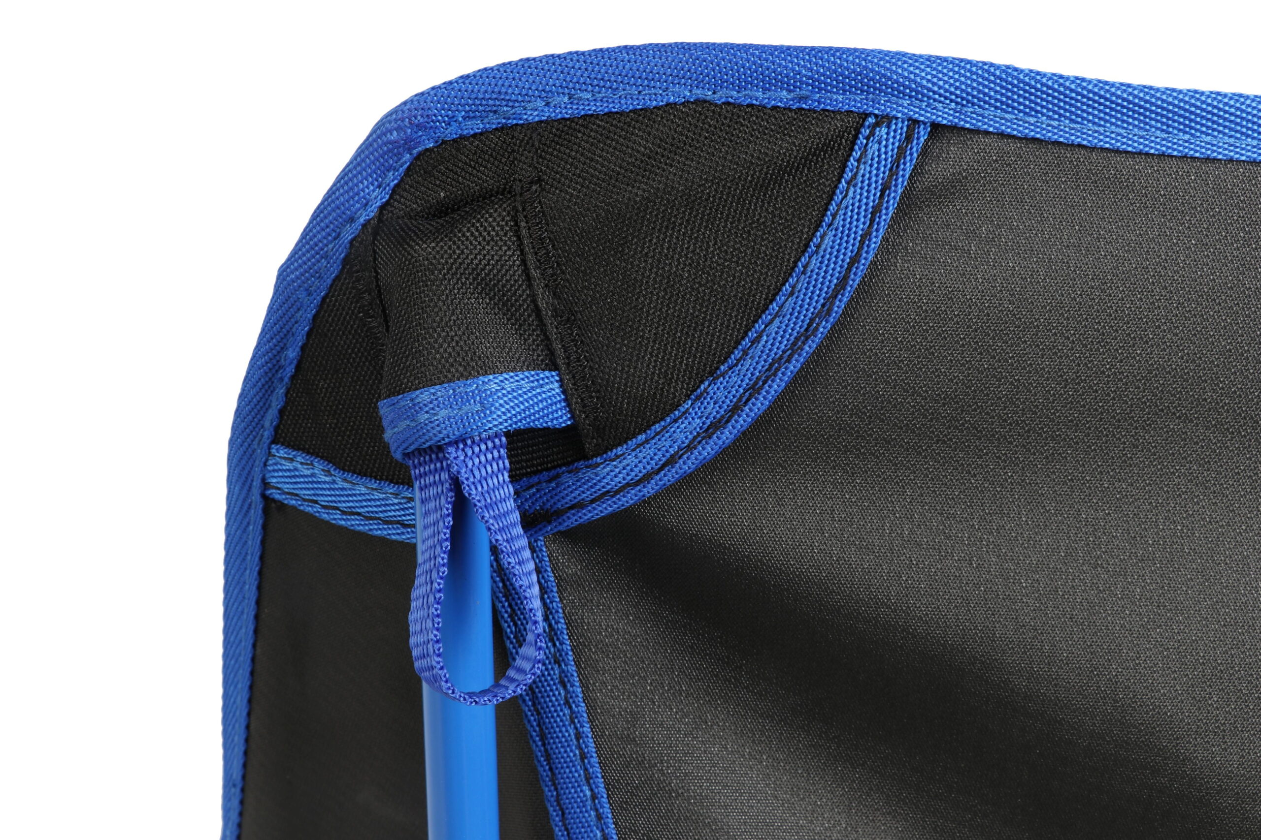 Stylish Appearance: Black chair with blue trim and blue frame for a sleek look.
