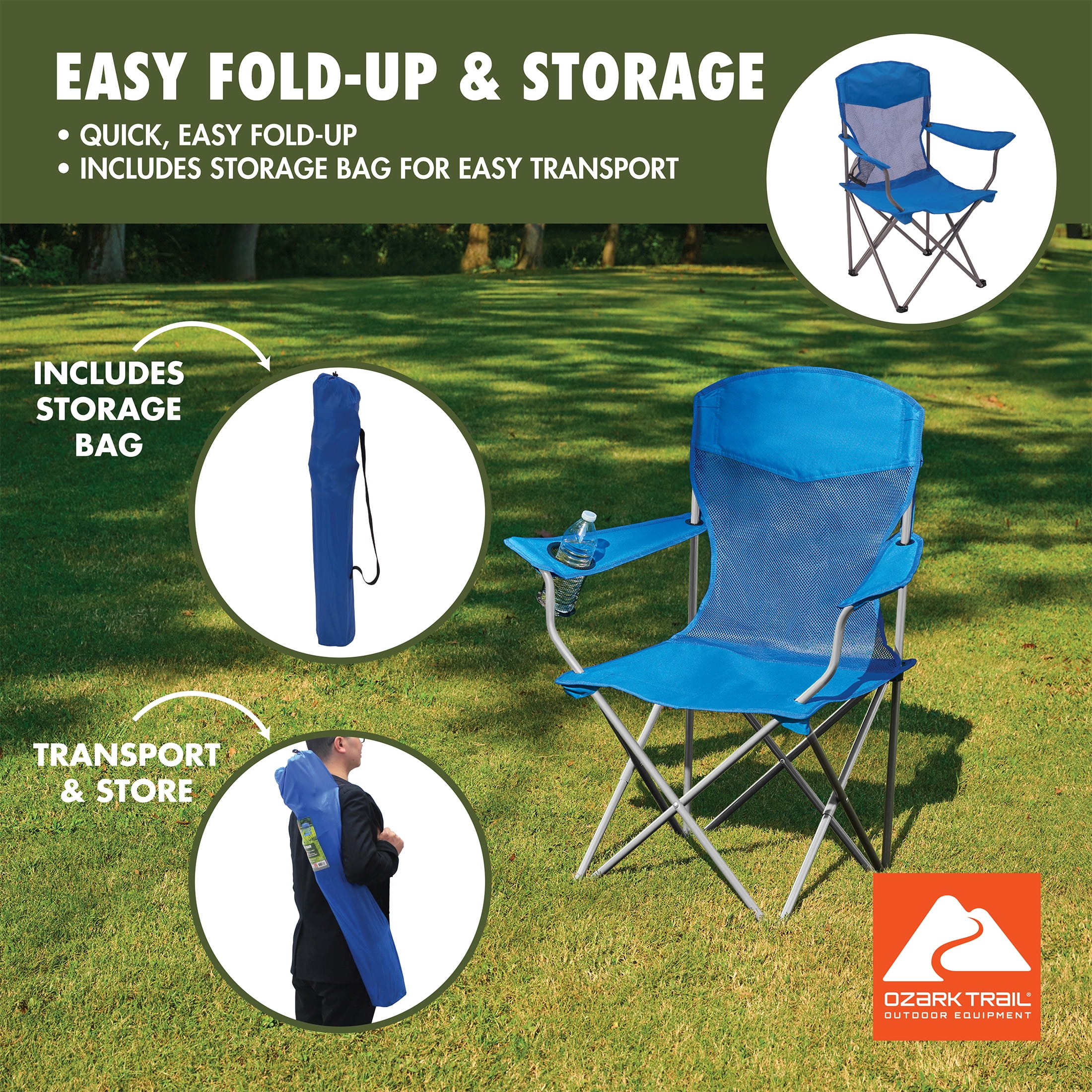 Durable yet Lightweight – Our Ozark Trail Blue Mesh Chair only weighs 5.5lbs but can support most adults for a comfortable sitting experience.