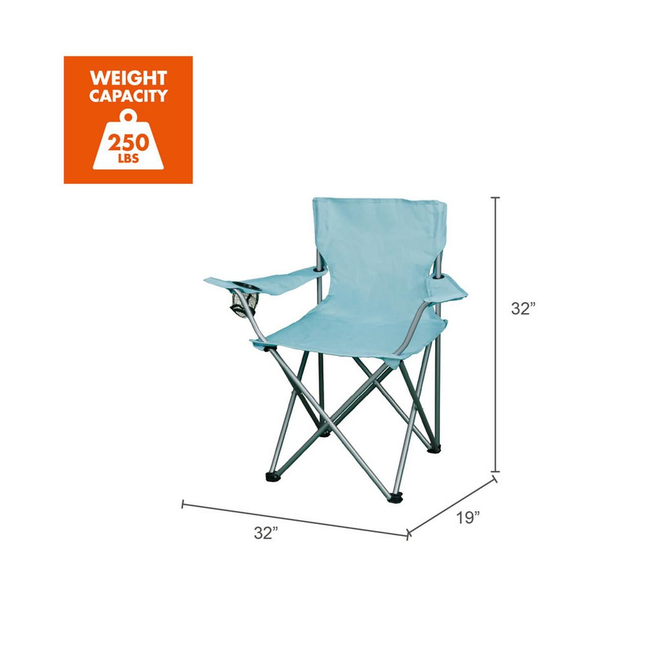If you are looking for easy-to-use, versatile seating, choose the Ozark Trail Basic Quad Folding Outdoor Camp Chair, Blue. This chair is perfect for use at the campsite, while tailgating, on the sidelines at your children’s game or anywhere else you need a seat. This quad folding chair features steel frame construction for durability and boasts a weight capacity of 225 pounds. And thanks to the durable 600D polyester fabric with PE coating you can count on this chair for long-lasting comfort. It is also designed with a built-in mesh cup holder to keep your drink or other important items close at hand. With this chair’s quad-folding design, it does not take up much space when folded and comes with a polyester carry bag for easy transportation. Whether you are planning your next camping trip or just hanging out in the backyard, if you need comfortable and reliable seating, choose the Ozark Trail Basic Quad Folding Outdoor Camp Chair.
