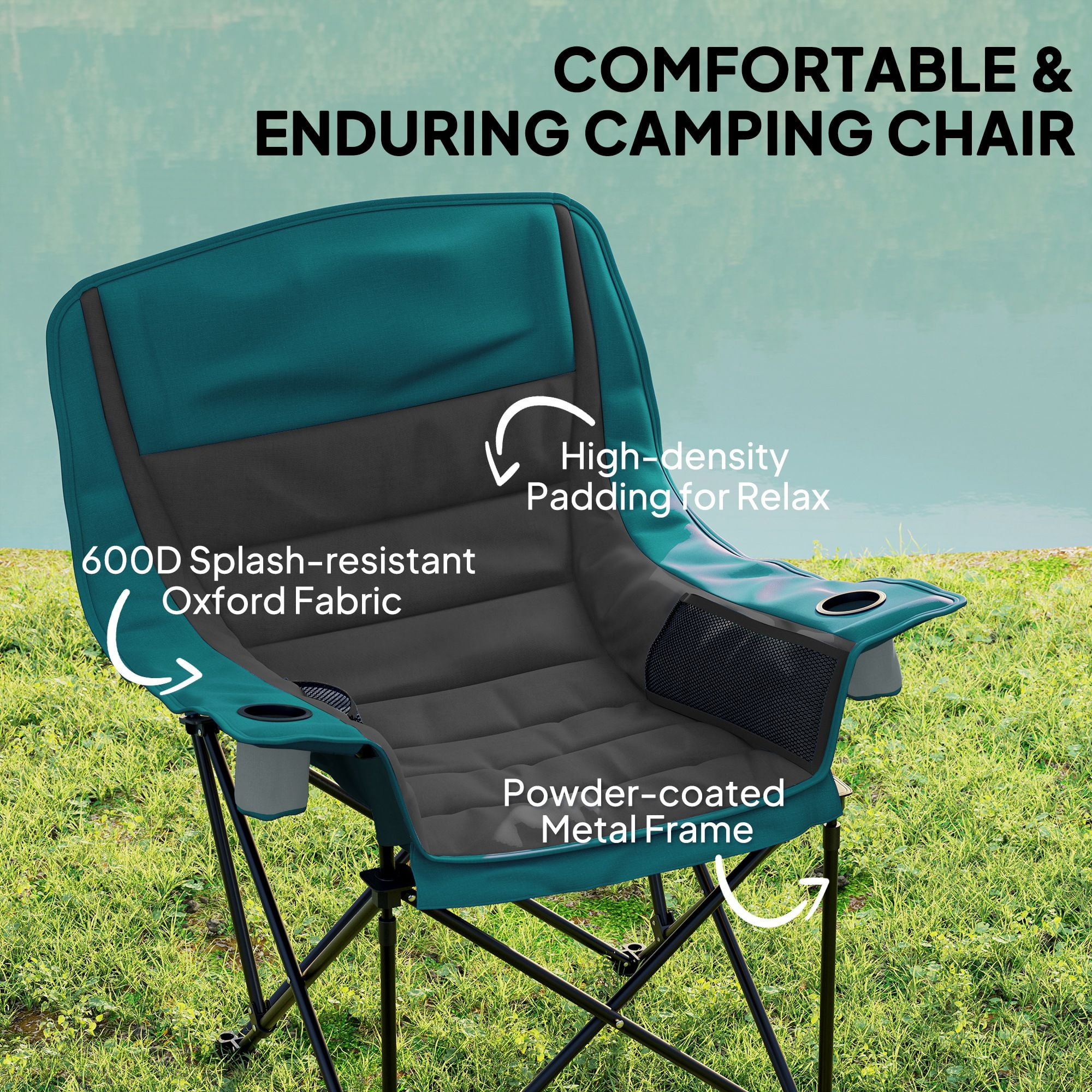 • – Weather-Resistant: Crafted with a metal frame and 600D Oxford fabric, this fishing chair is splash-resistant and prevents corrosion and fading, and has a maximum weight capacity of 265lbs