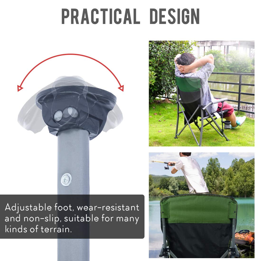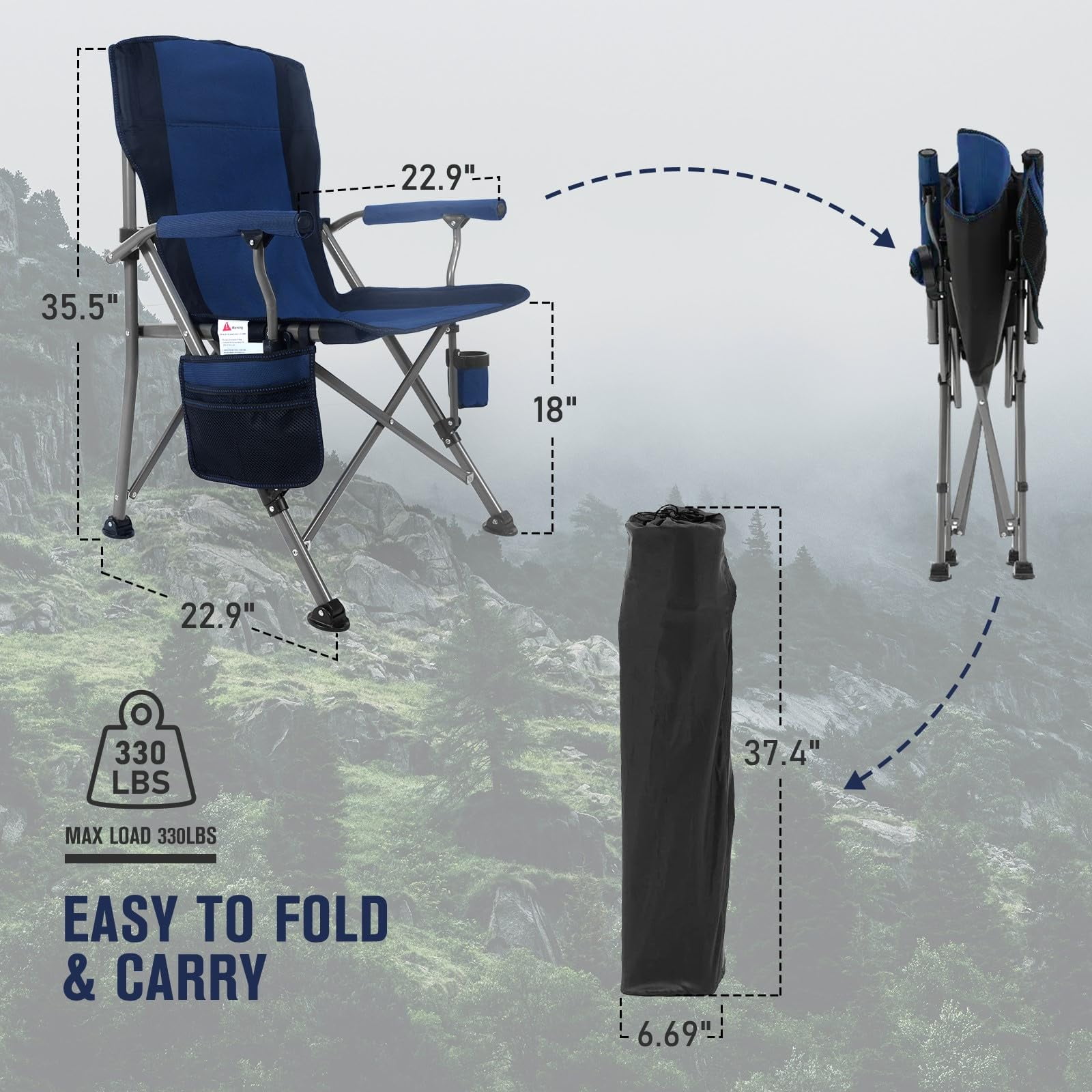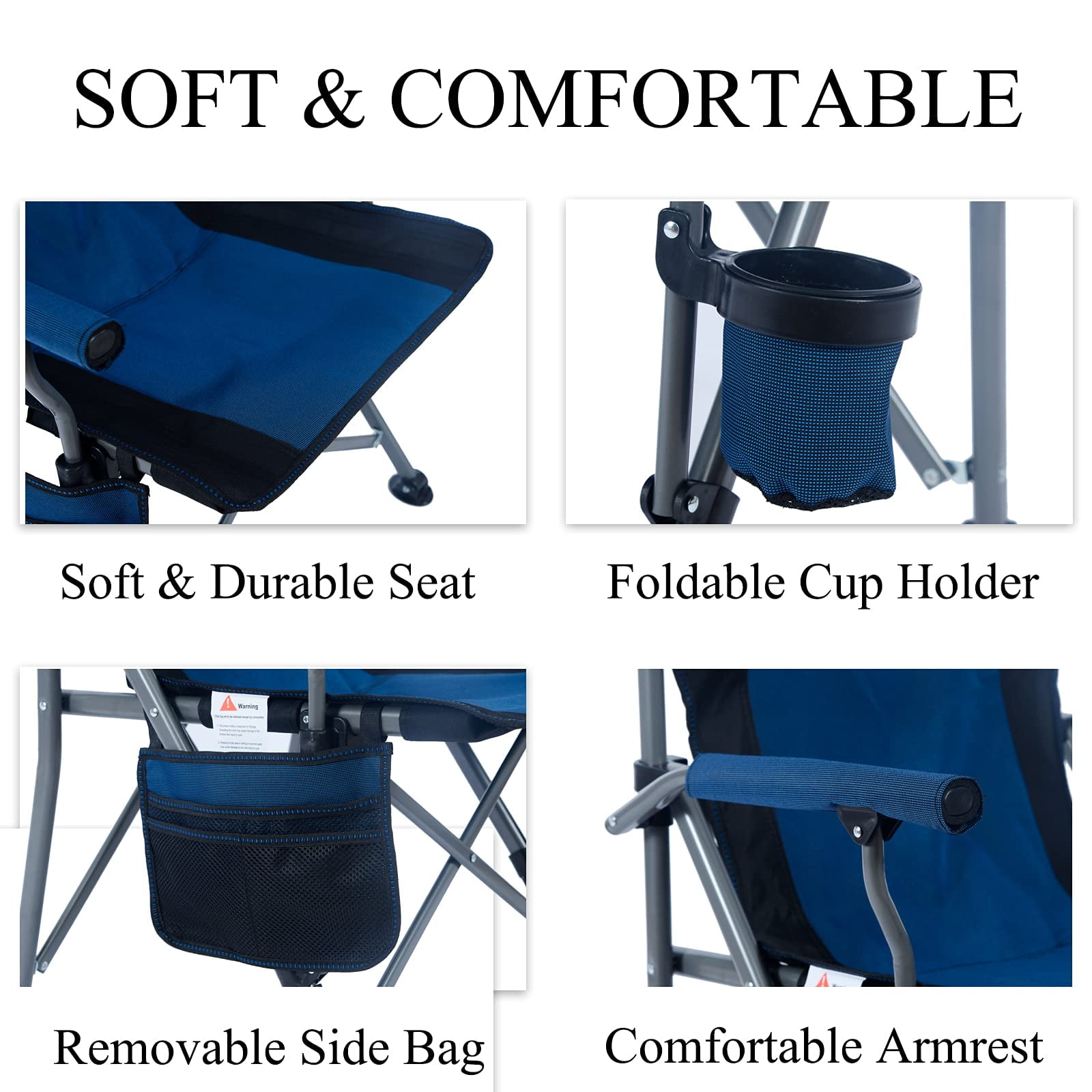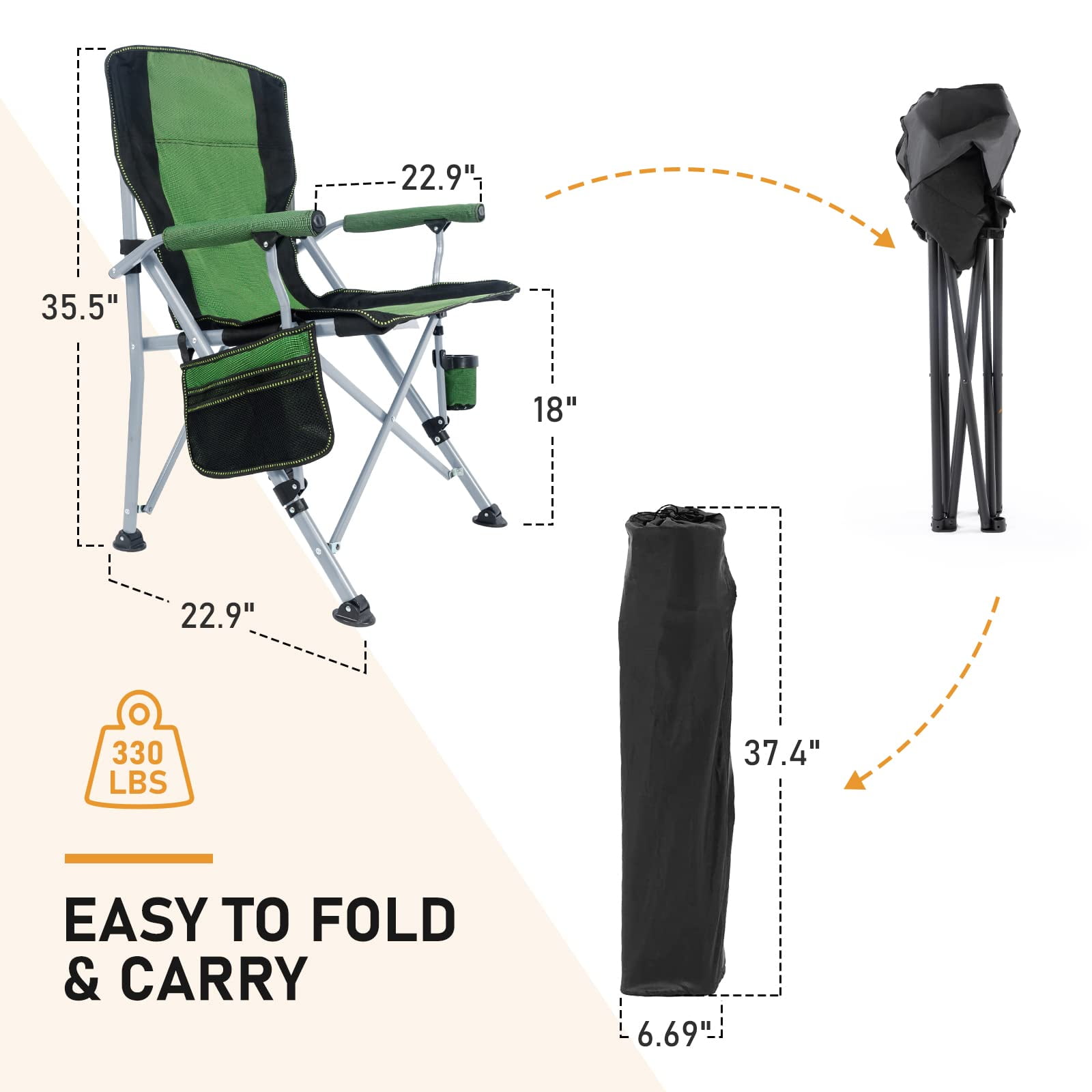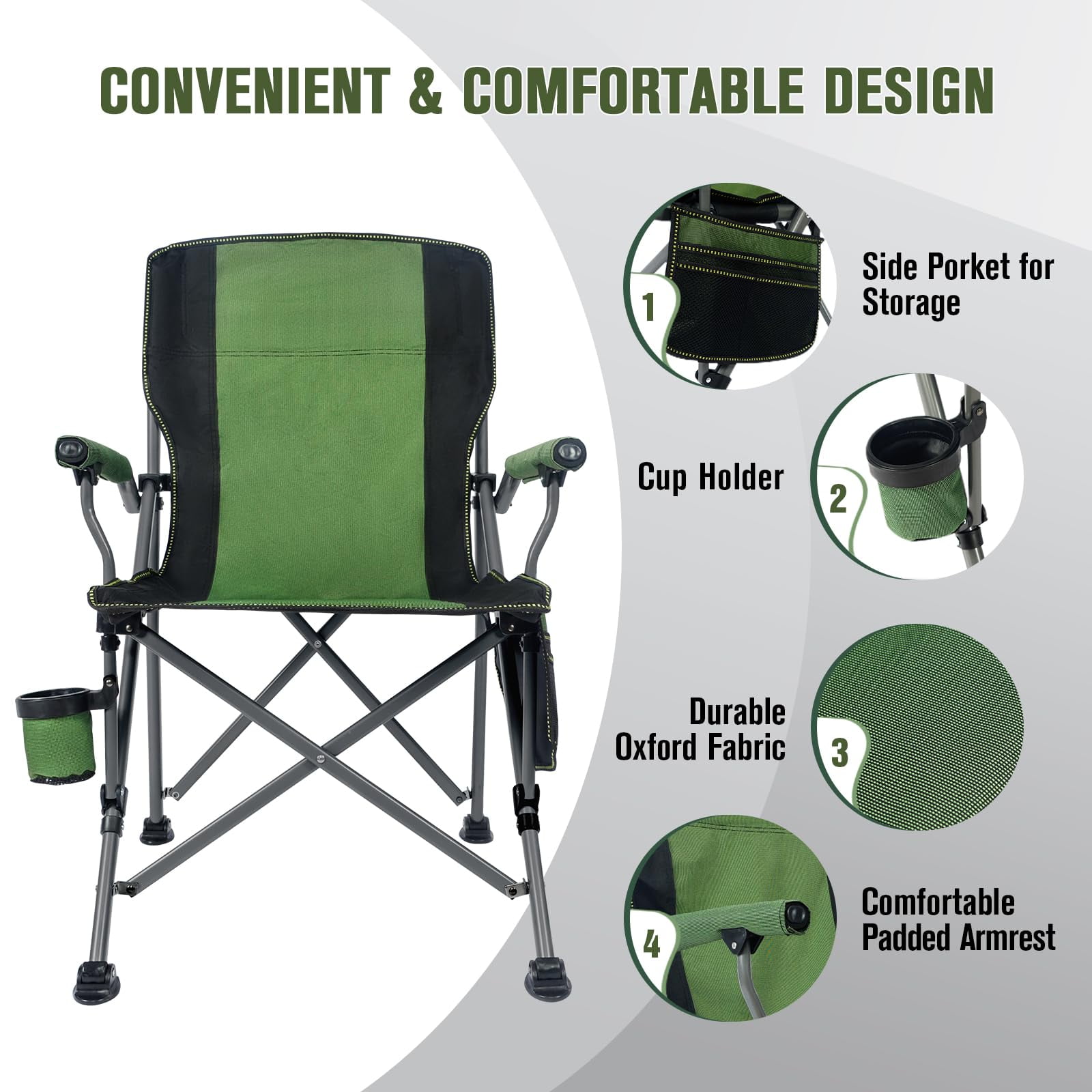 • Portable Design: This camping chair features a foldable design for easy setup and quick folding, facilitating convenient transport and storage with an included carrying bag and shoulder strap.