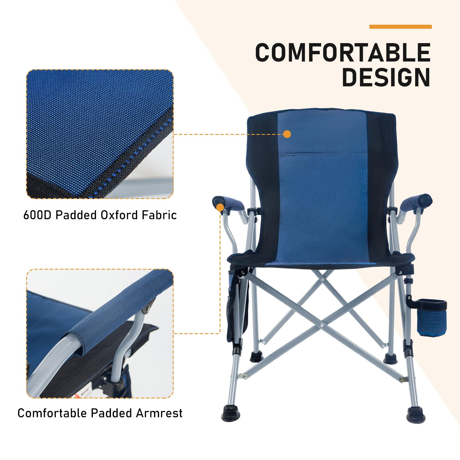 • Robust Construction: Built with a sturdy stainless steel X-shape frame and double-layer 600D padded oxford fabric, it offers heavy-duty strength and reliable stability.